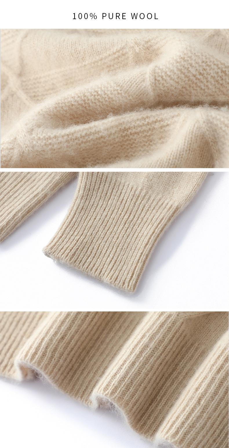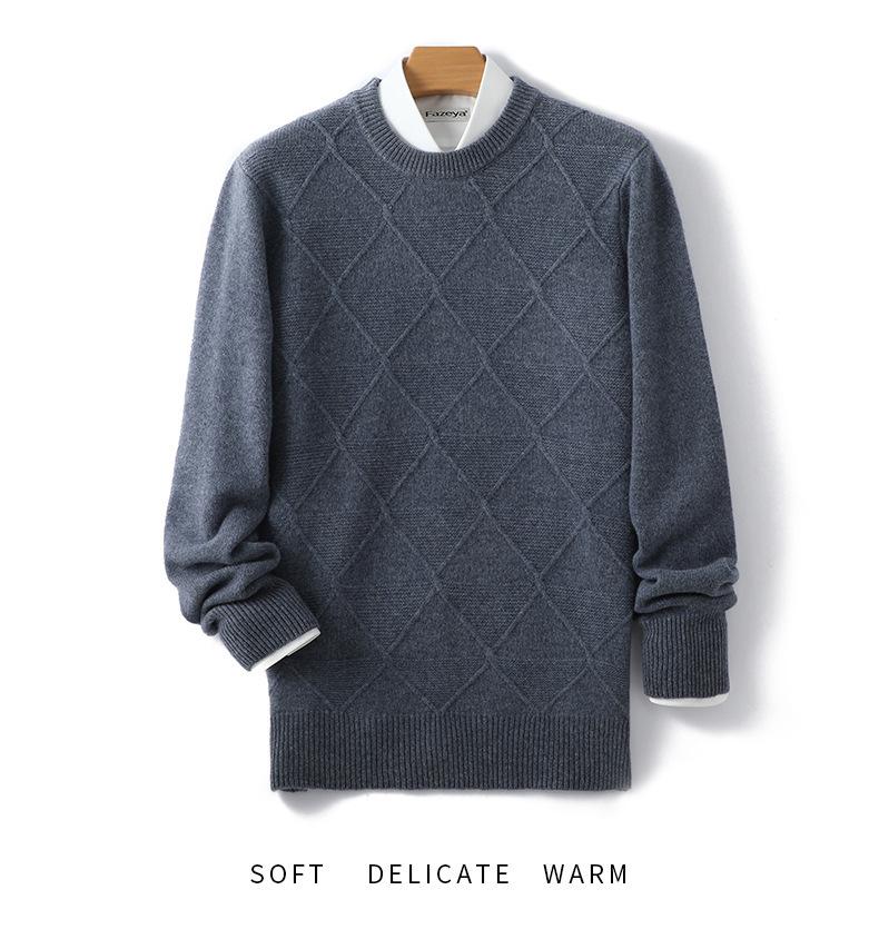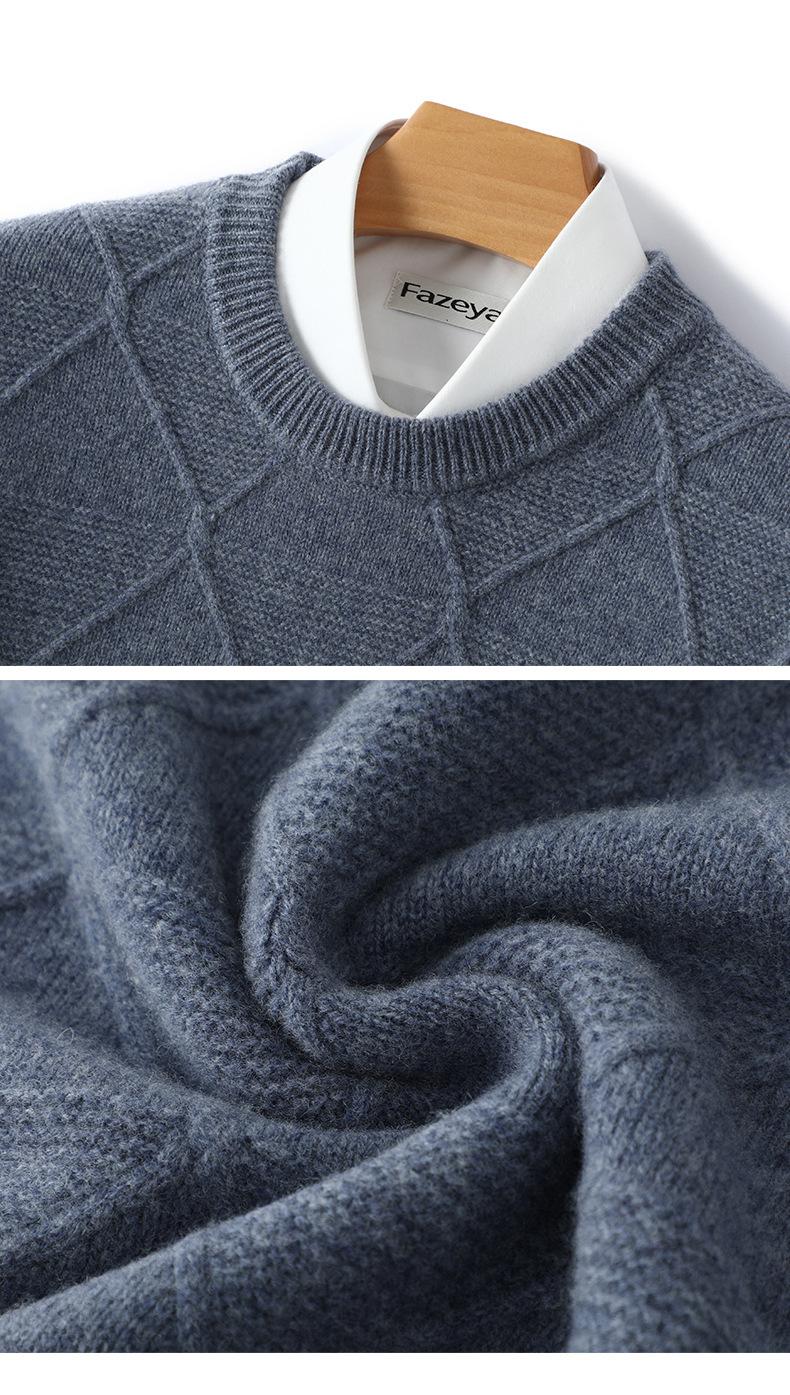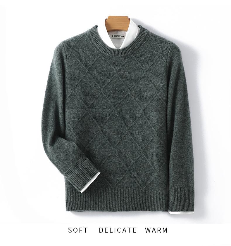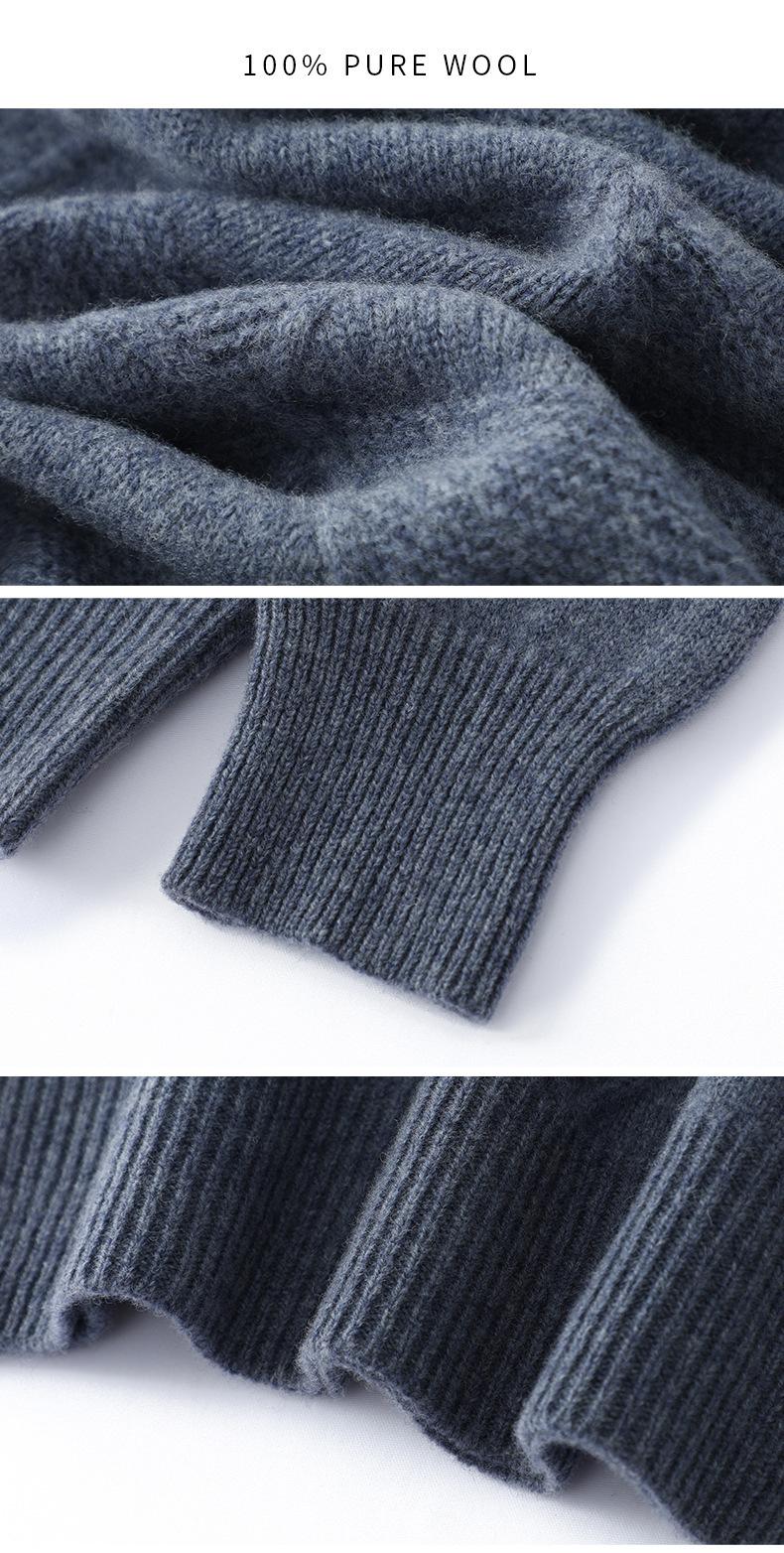 Suéter de lana pura de invierno para hombre, suéter de jacquard grueso con cuello redondo, suéter holgado informal de lana, suéter básico