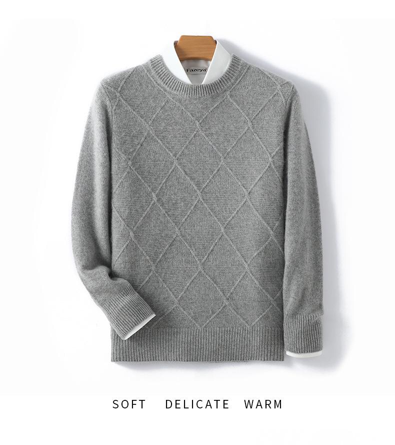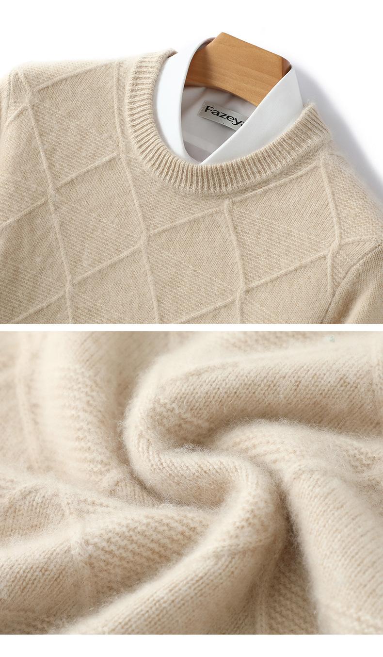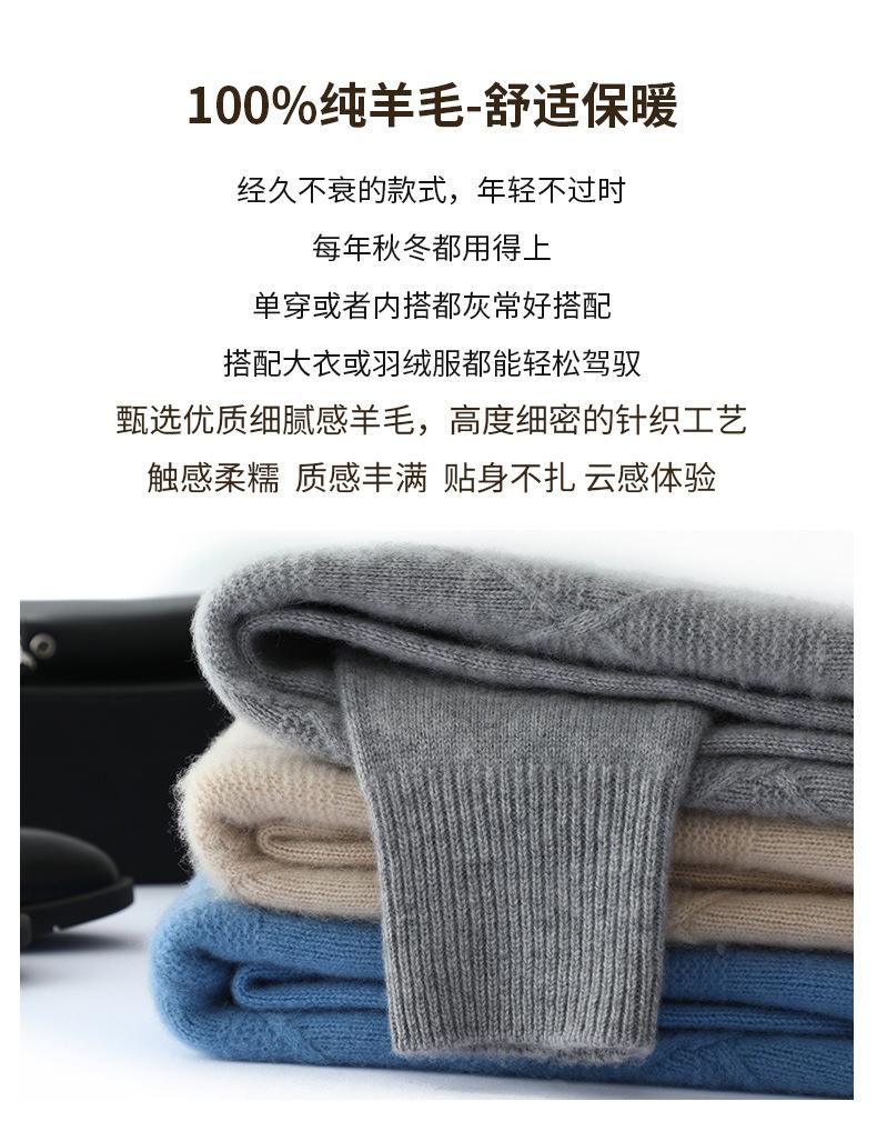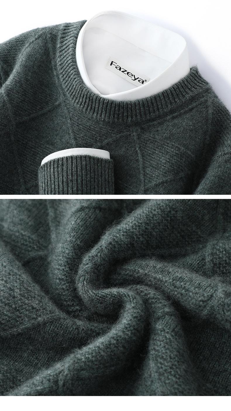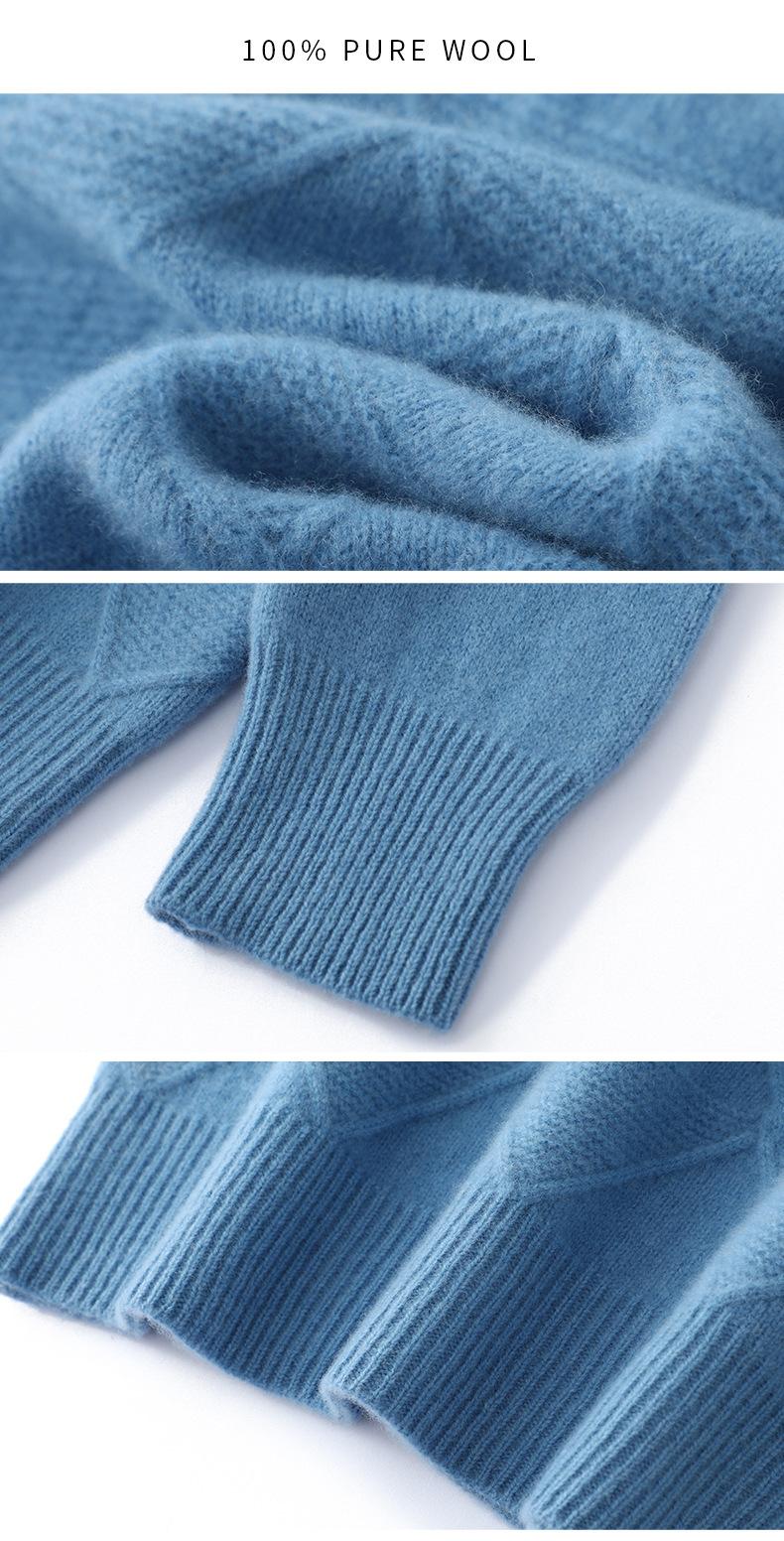 Suéter de lana pura de invierno para hombre, suéter de jacquard grueso con cuello redondo, suéter holgado informal de lana, suéter básico