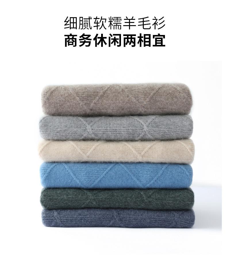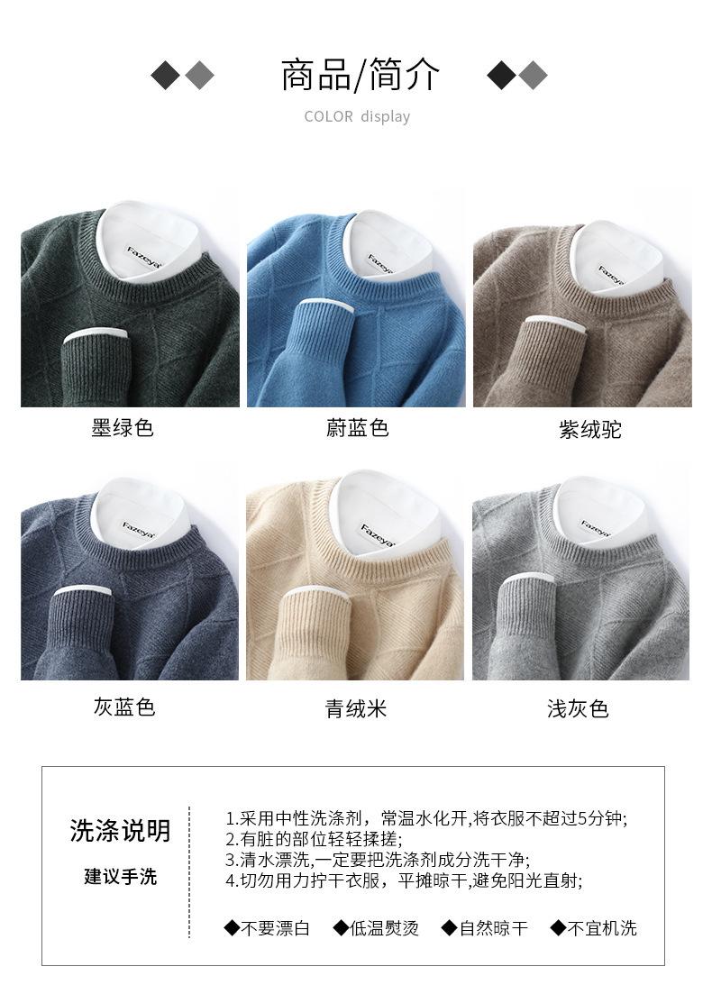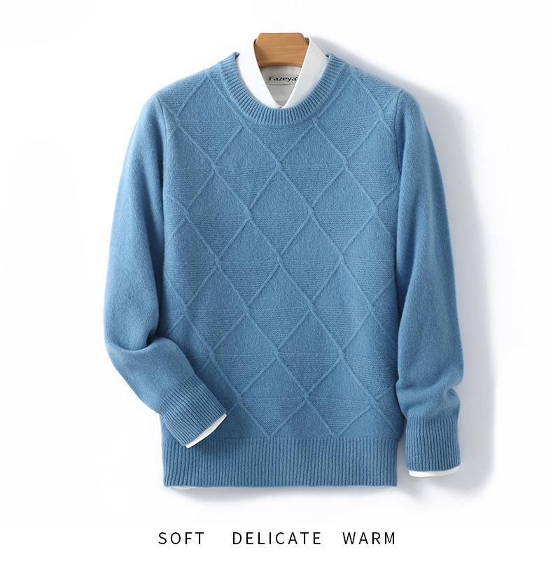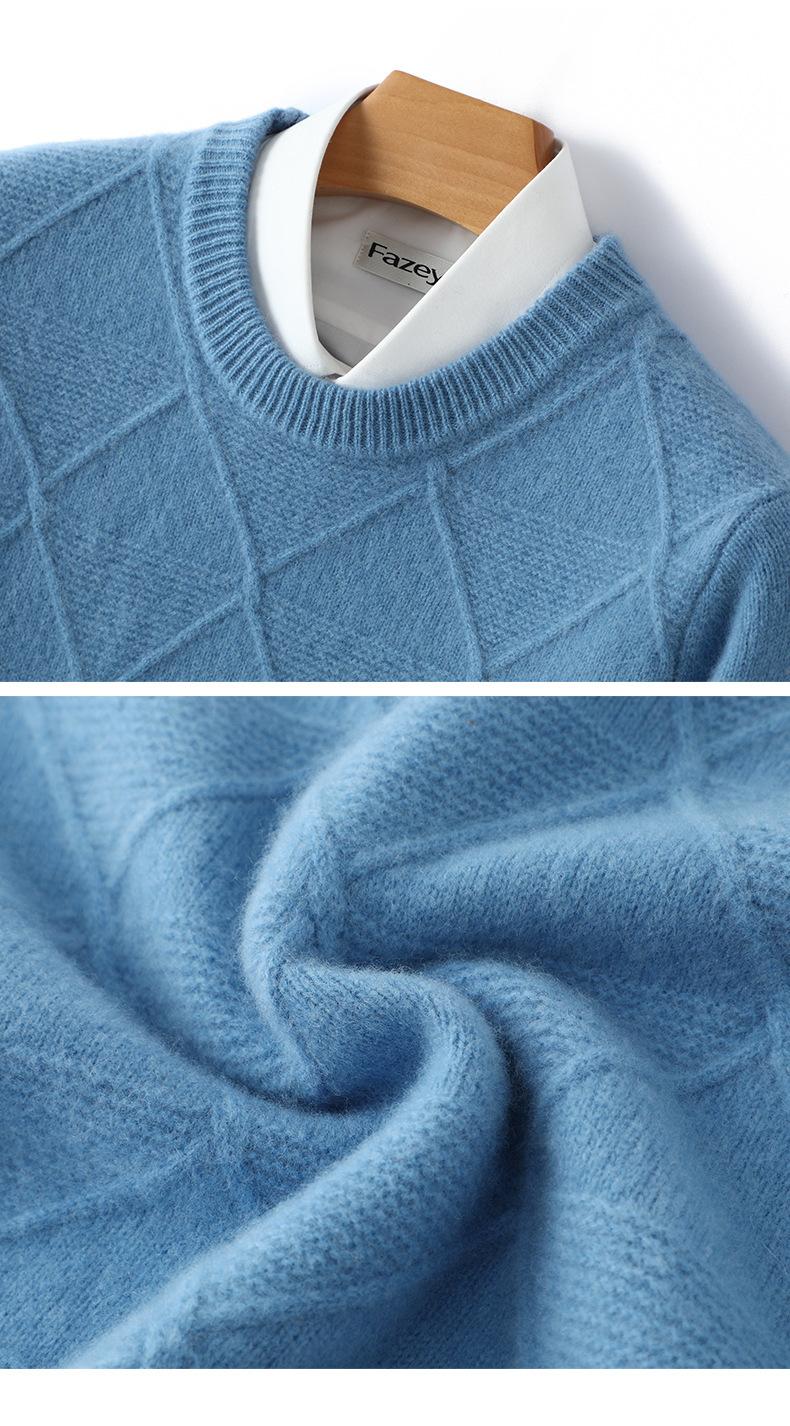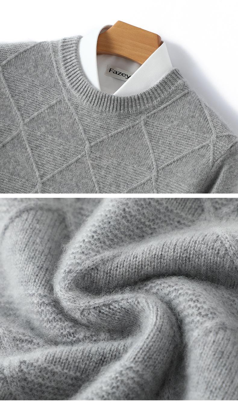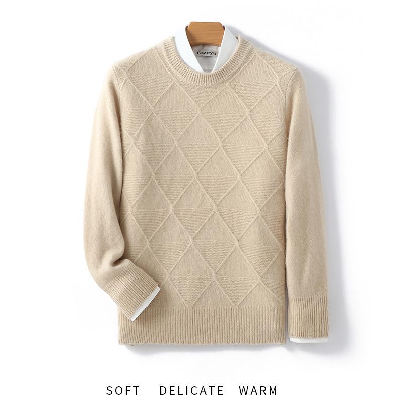 Suéter de lana pura de invierno para hombre, suéter de jacquard grueso con cuello redondo, suéter holgado informal de lana, suéter básico