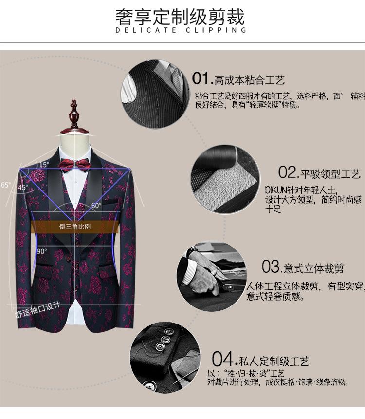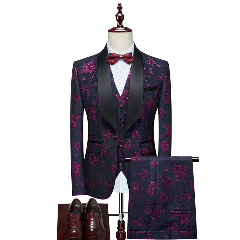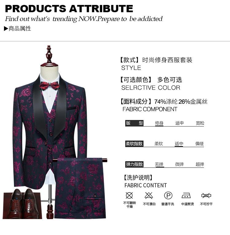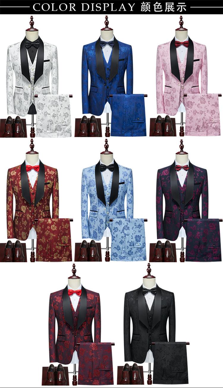Nuevos productos transfronterizos Vestido de novia de anfitrión y novio Traje de talla grande Traje de cuello sombreado Traje de tres piezas Venta individual