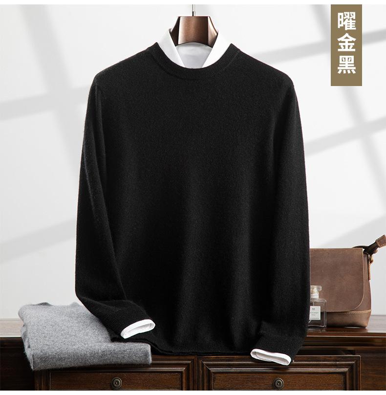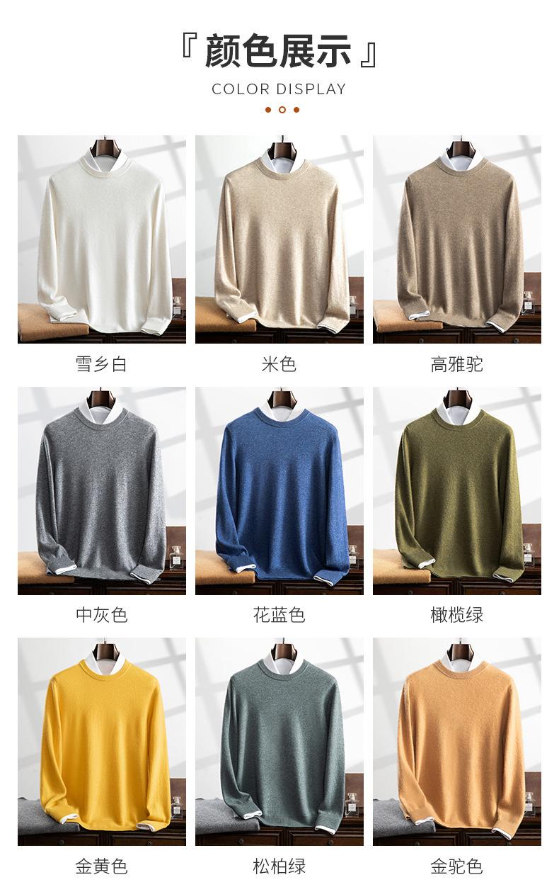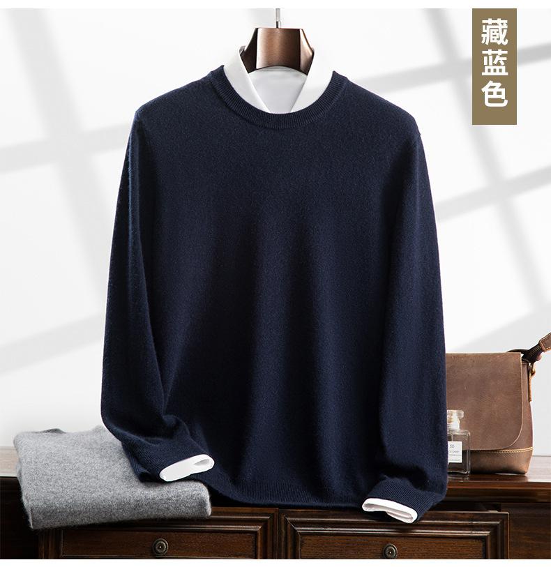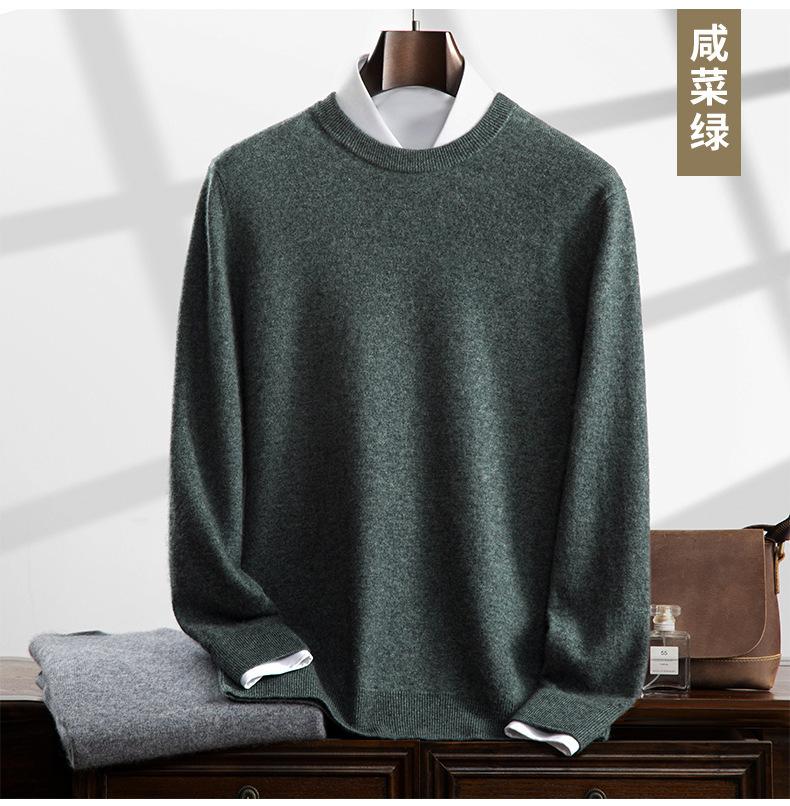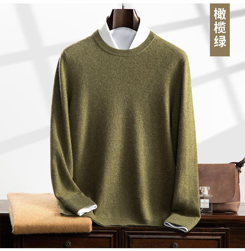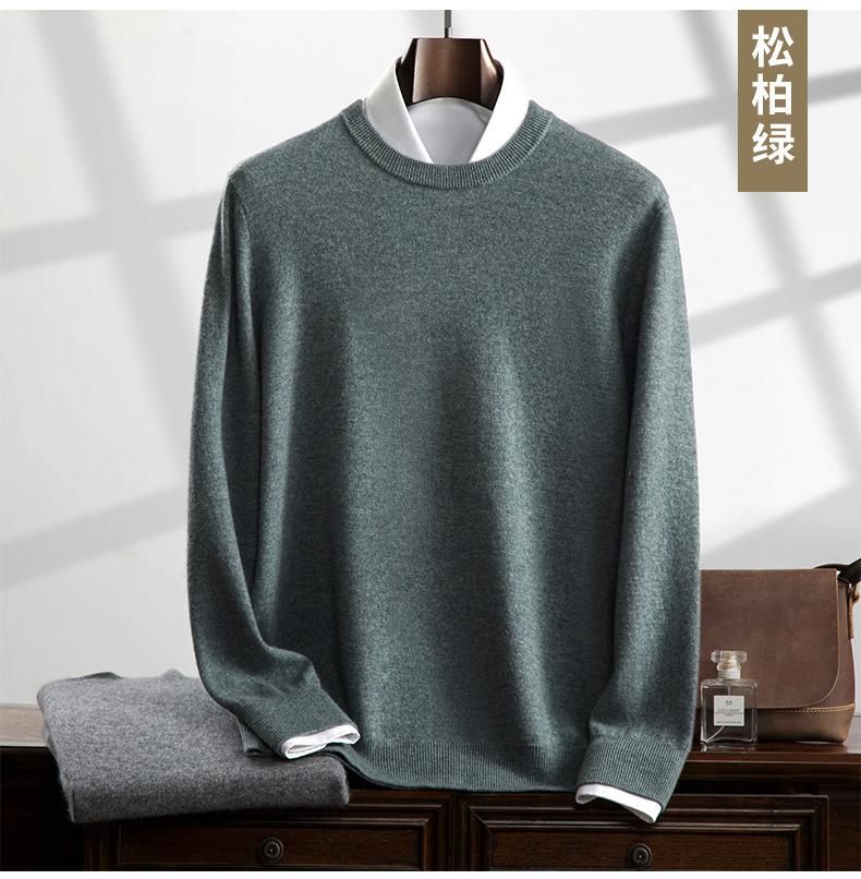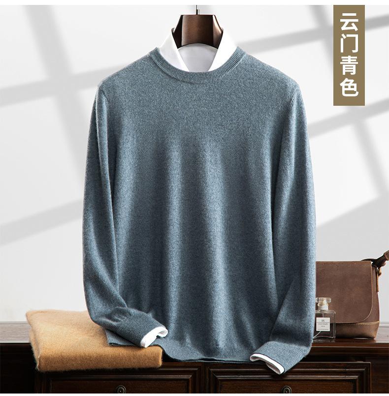 Suéter holgado de cachemira con cuello redondo y plano para hombre, jersey de manga larga de color liso, informal, combinable con todo, para otoño e invierno.
