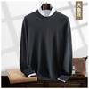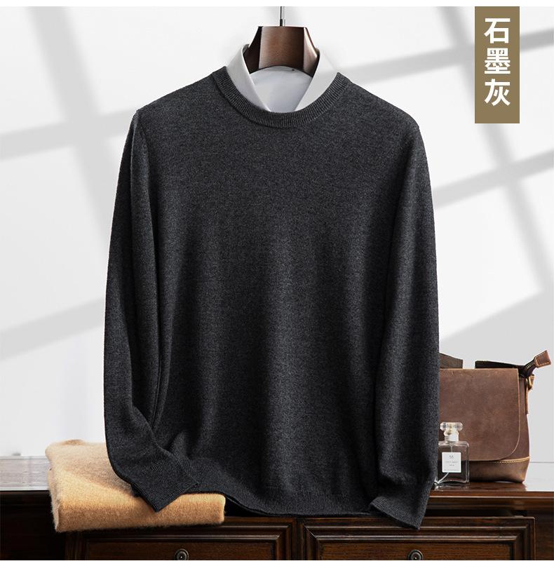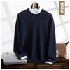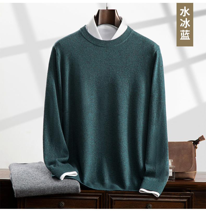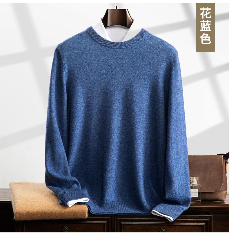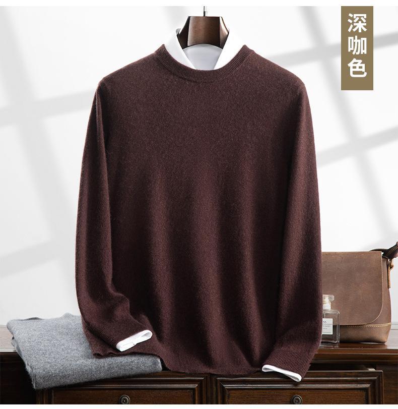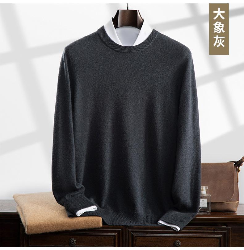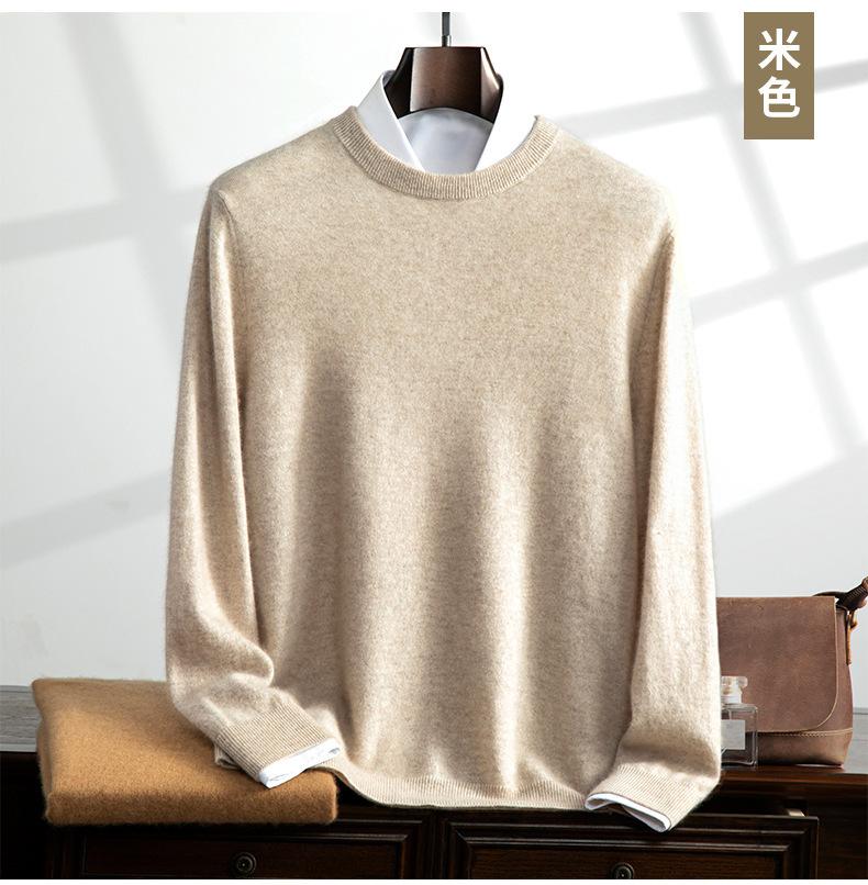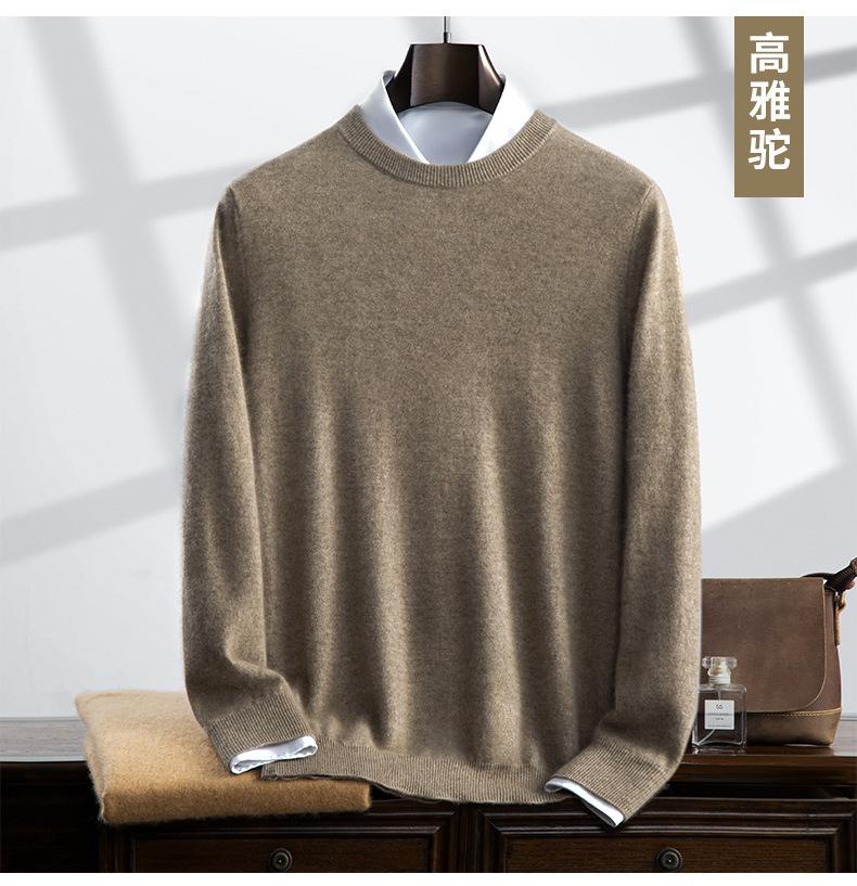 Suéter holgado de cachemira con cuello redondo y plano para hombre, jersey de manga larga de color liso, informal, combinable con todo, para otoño e invierno.