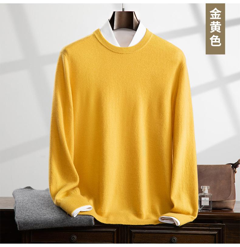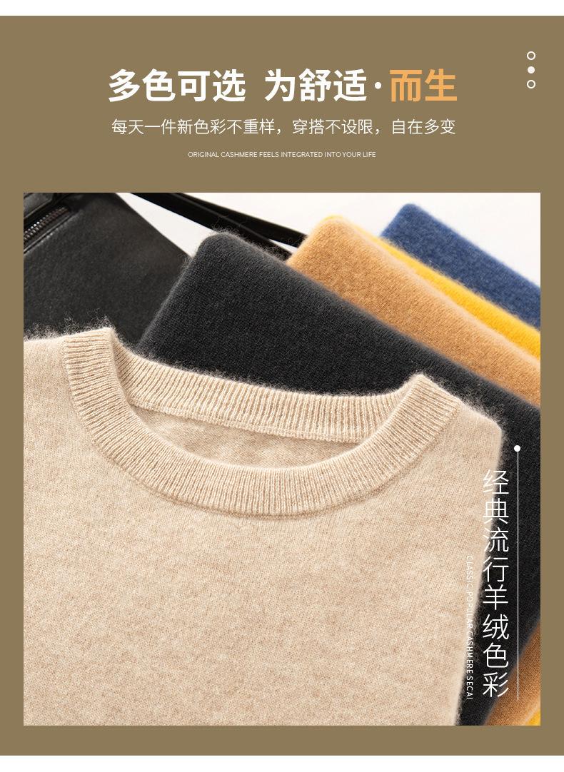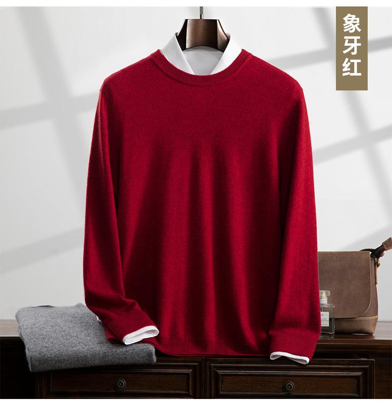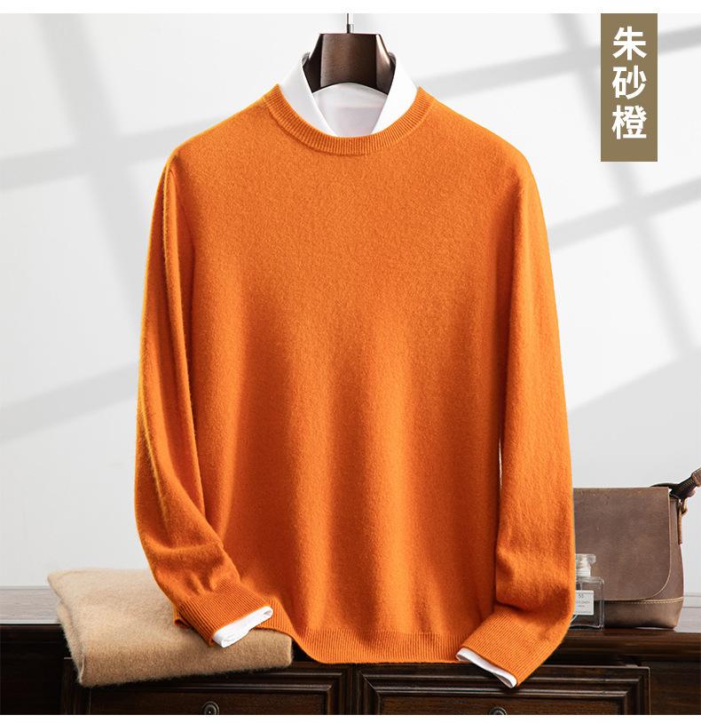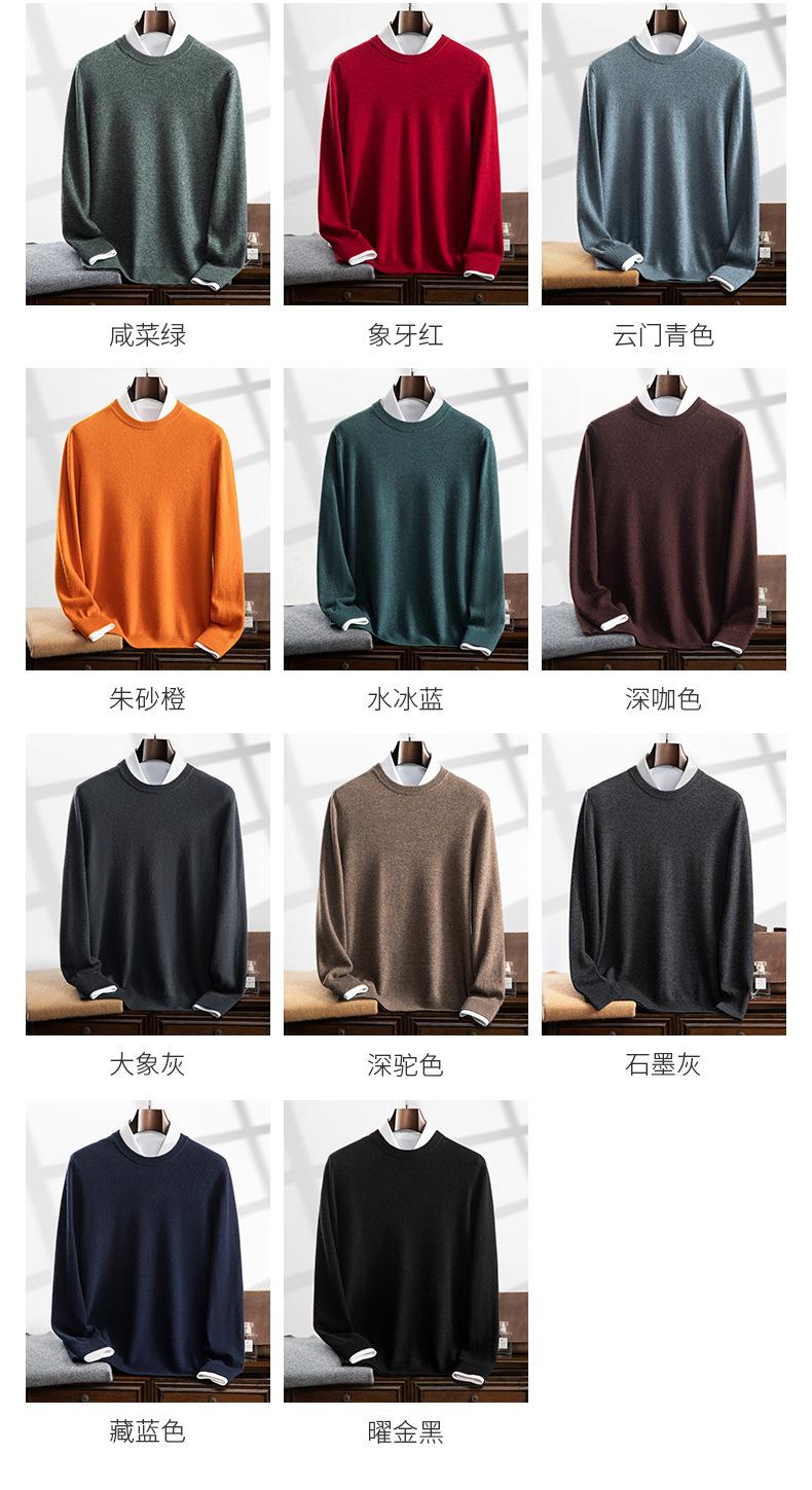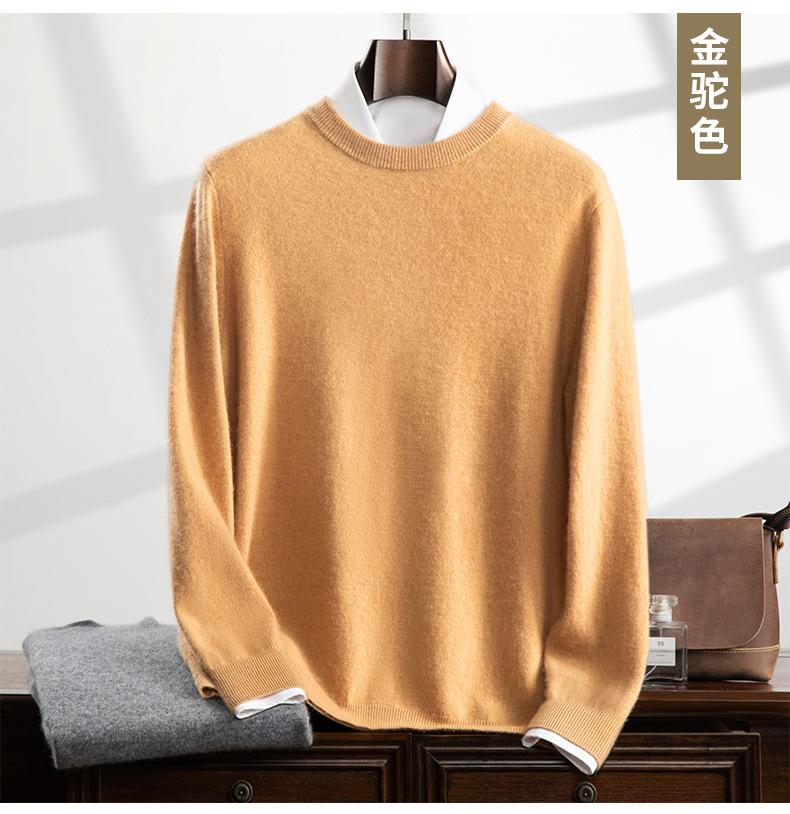 Suéter holgado de cachemira con cuello redondo y plano para hombre, jersey de manga larga de color liso, informal, combinable con todo, para otoño e invierno.