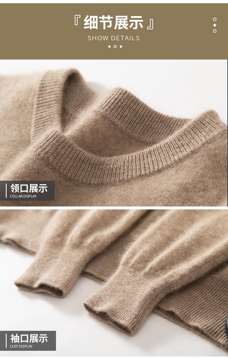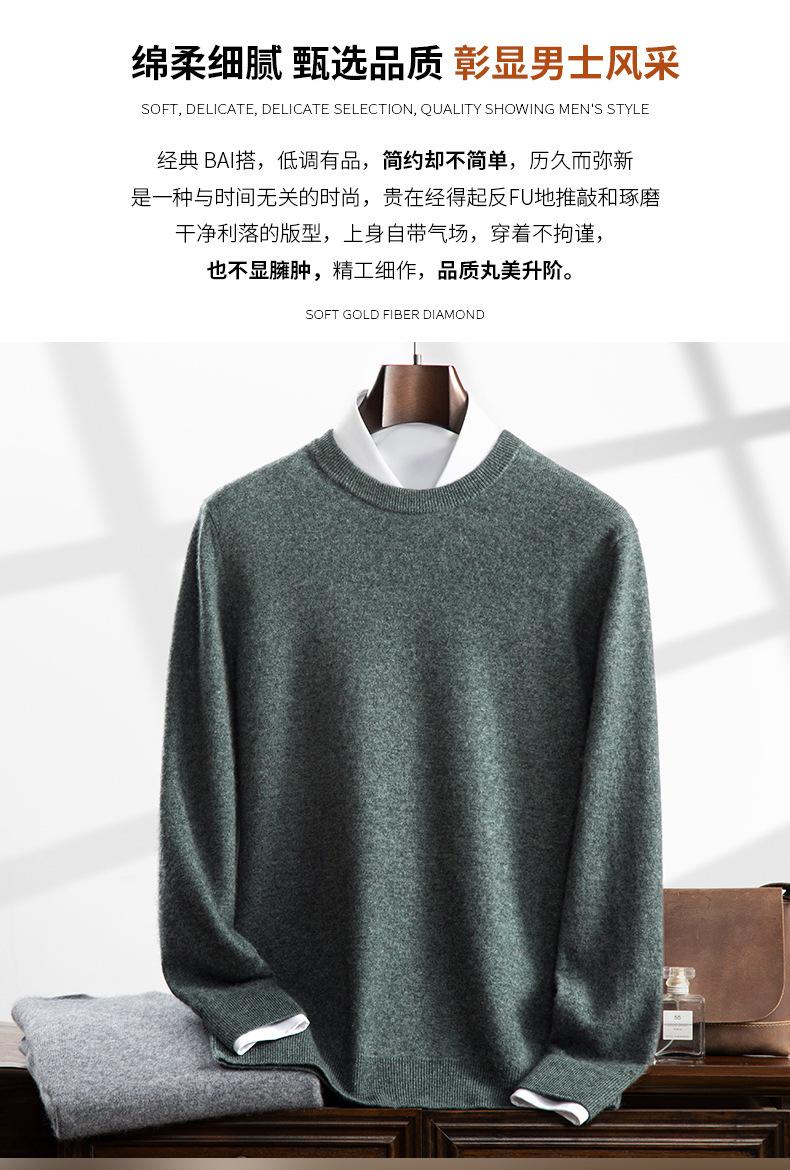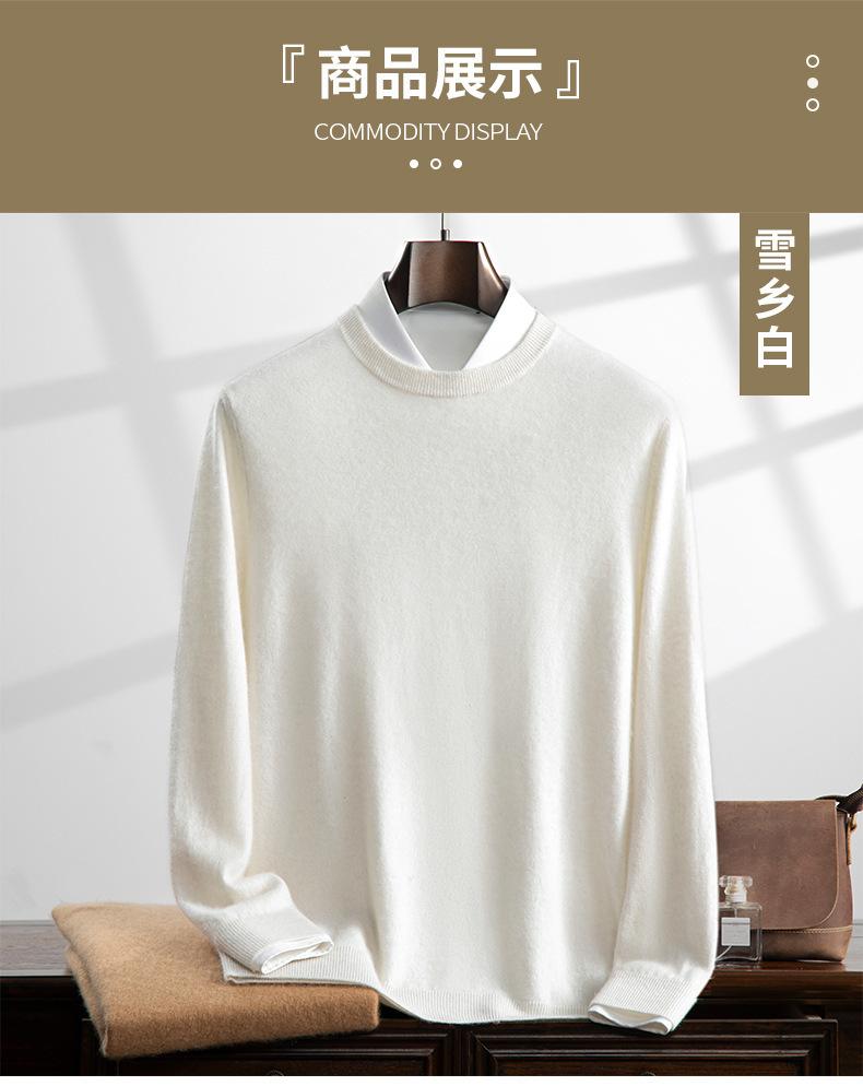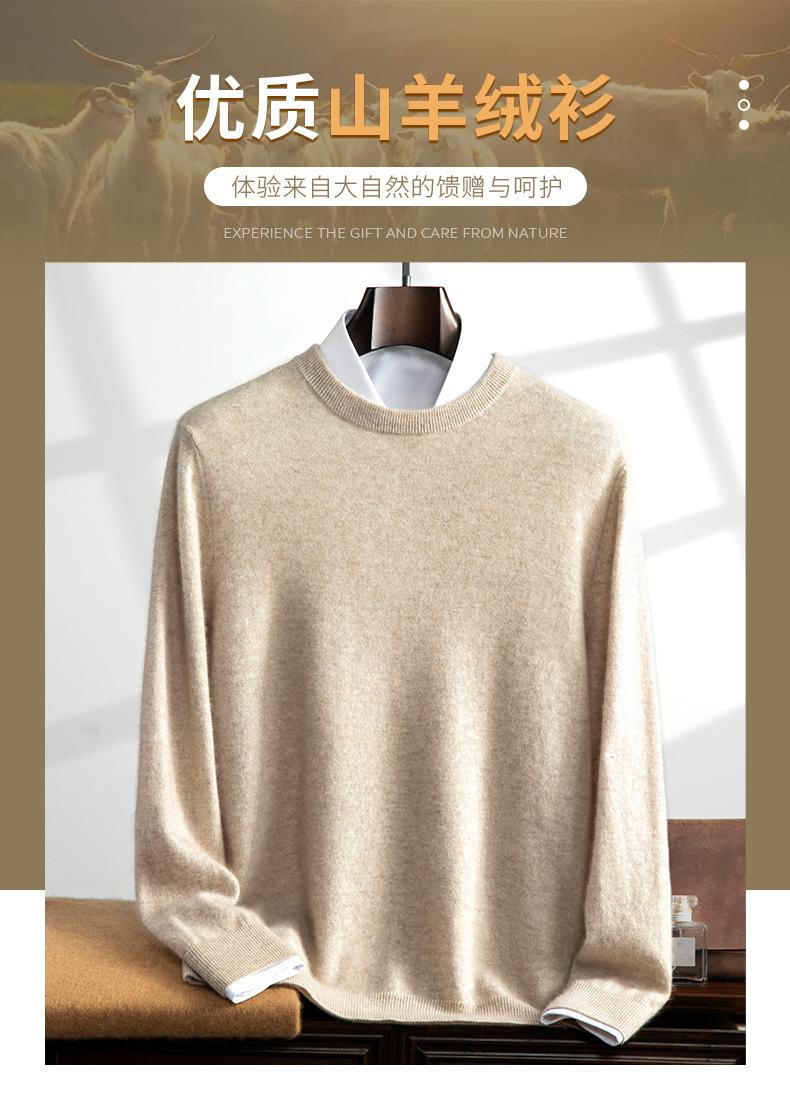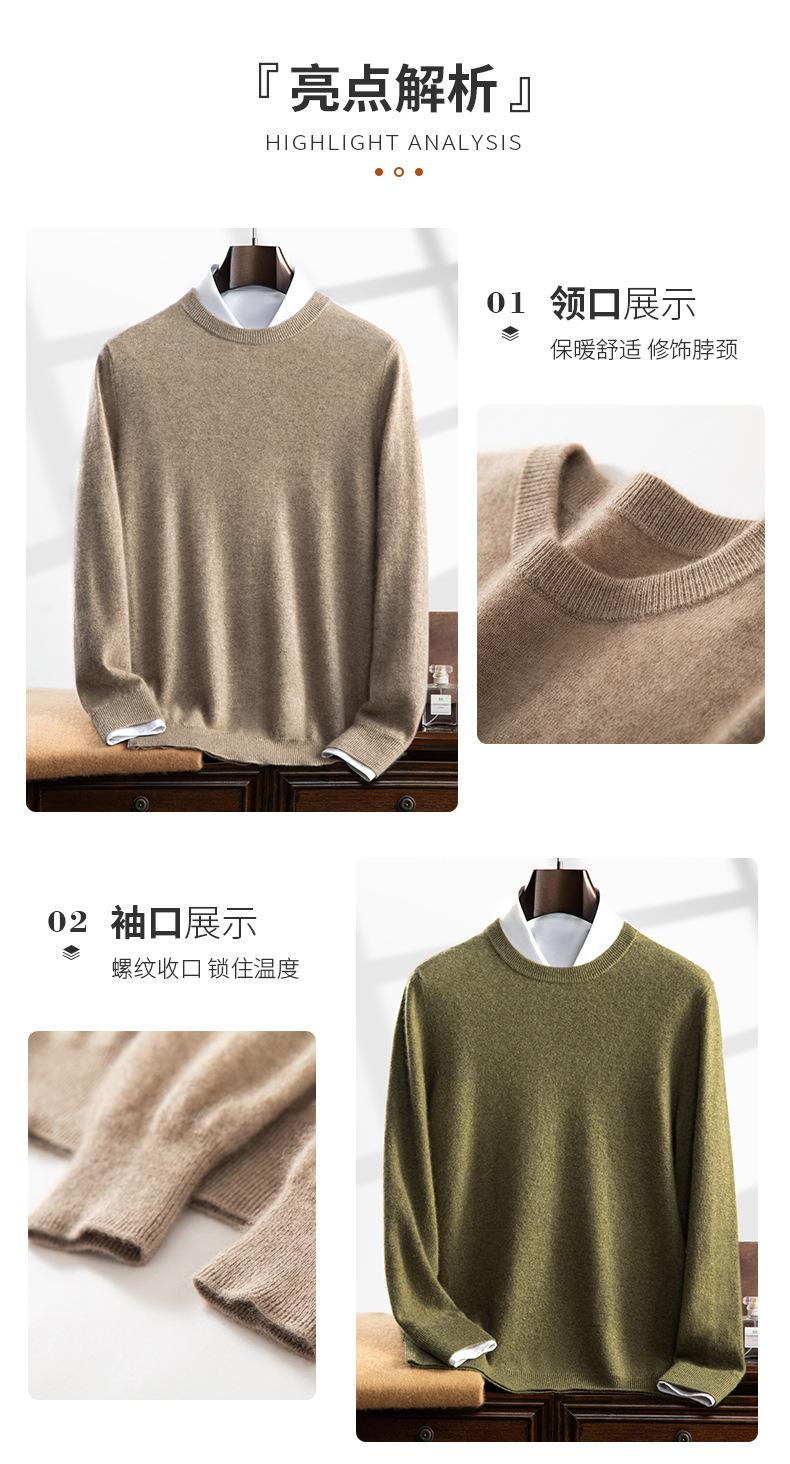 Suéter holgado de cachemira con cuello redondo y plano para hombre, jersey de manga larga de color liso, informal, combinable con todo, para otoño e invierno.