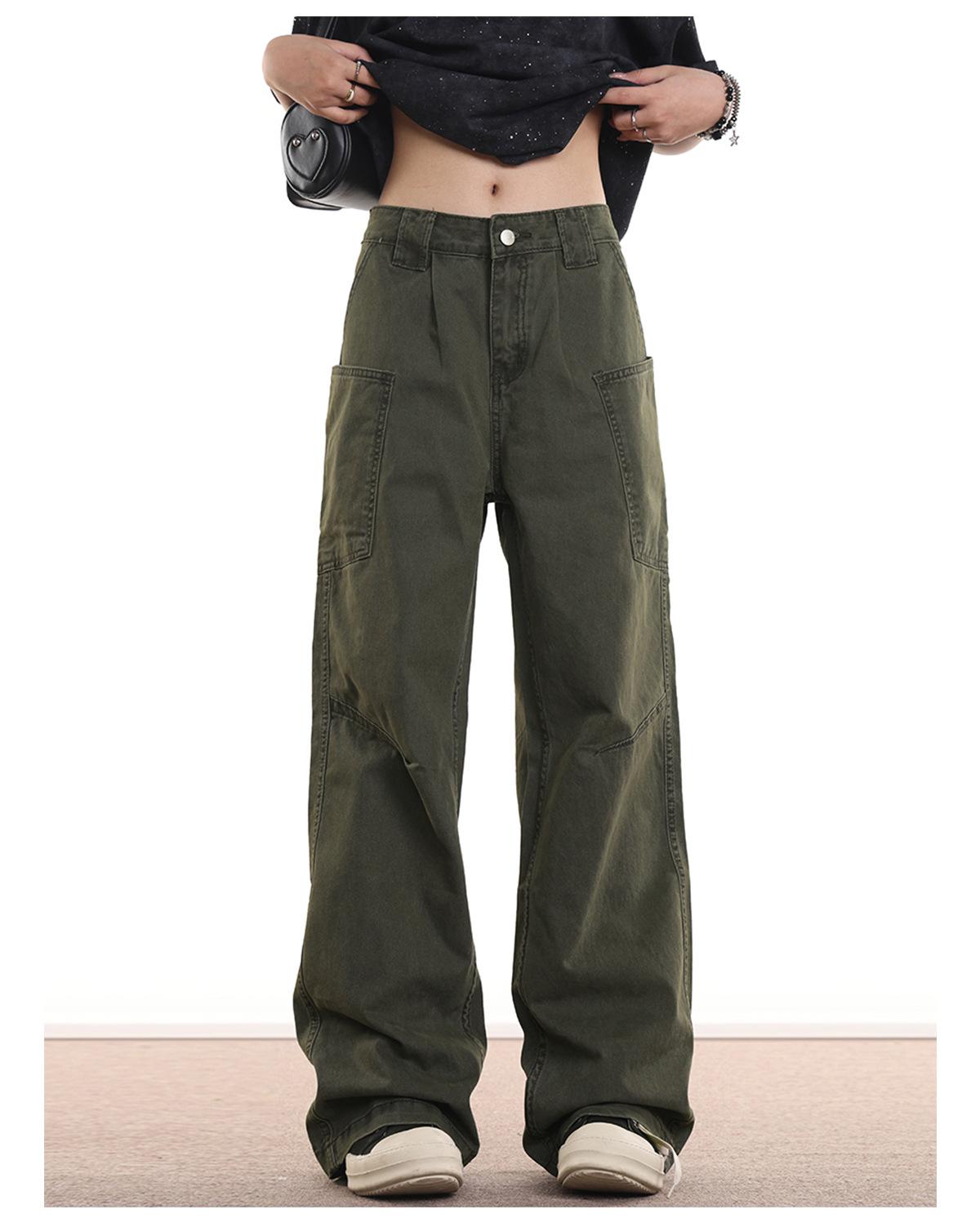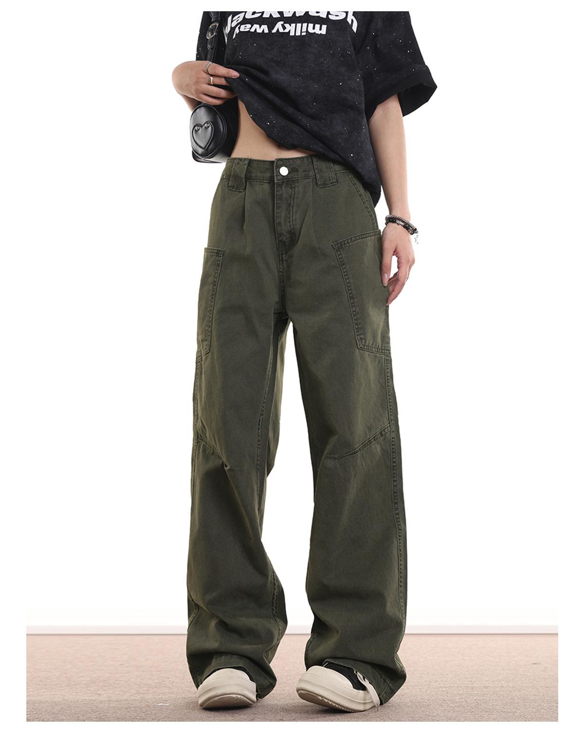 Estilo Americano Retro High Street cleanfit Jeans Unisex Multibolsillos Sueltos Rectos Para Todo Pantalones Casuales