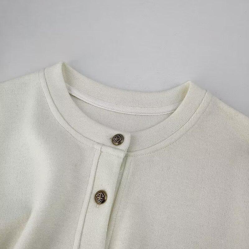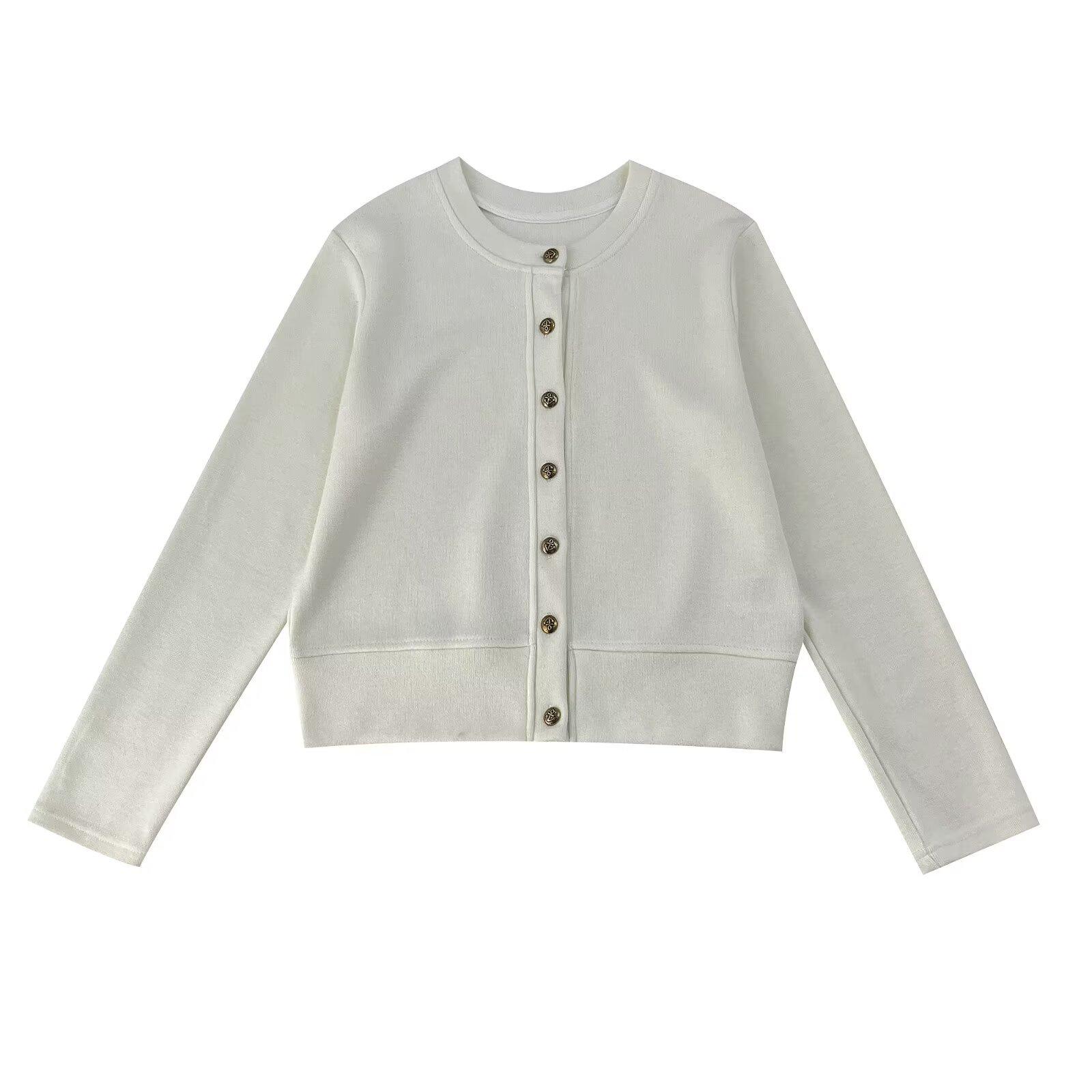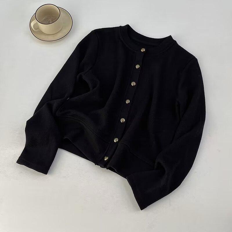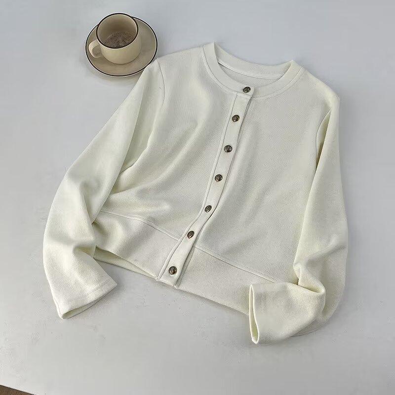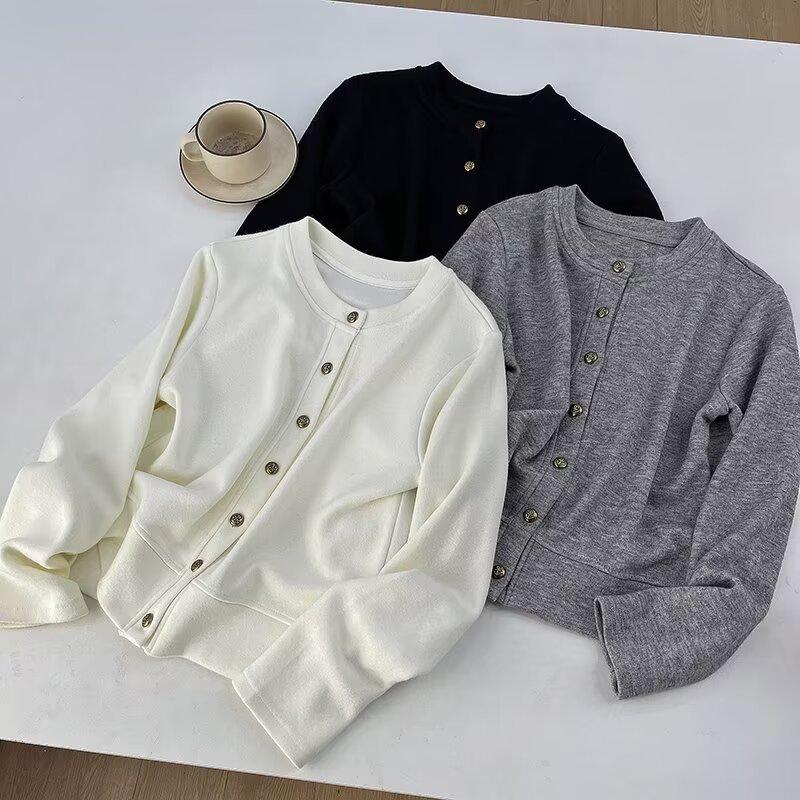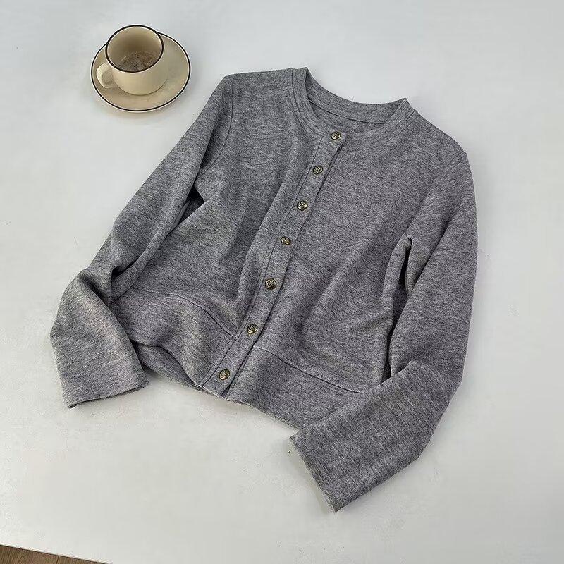 Compra Chaqueta cárdigan corta de cachemira holgada informal de color liso con cuello redondo para mujer de comercio exterior, primavera 2024 al por mayor en Joom.pro