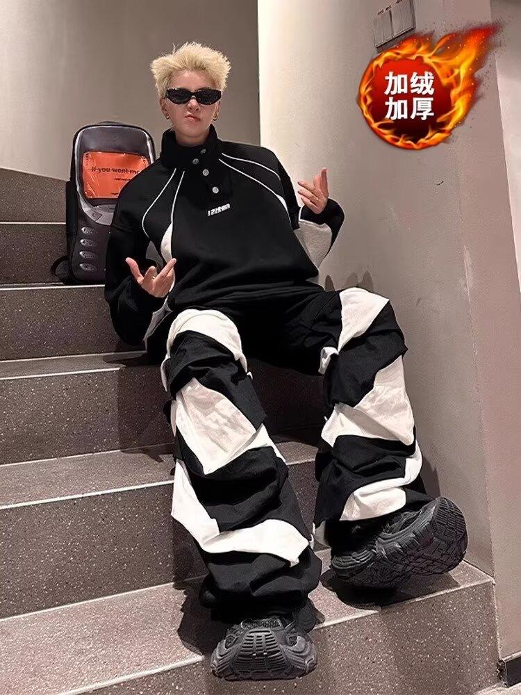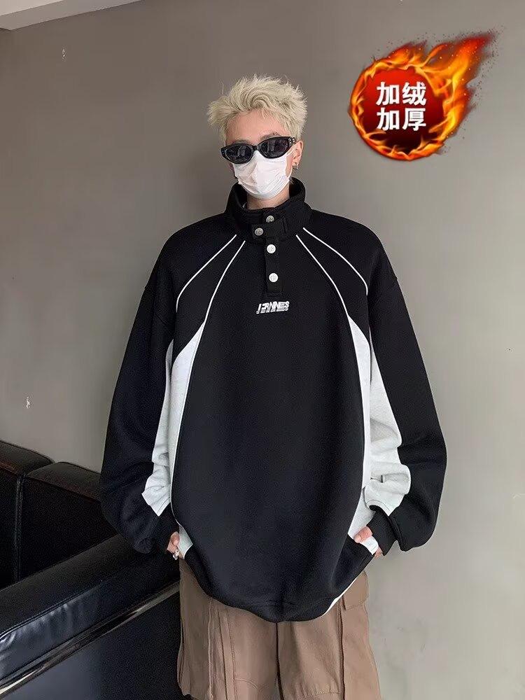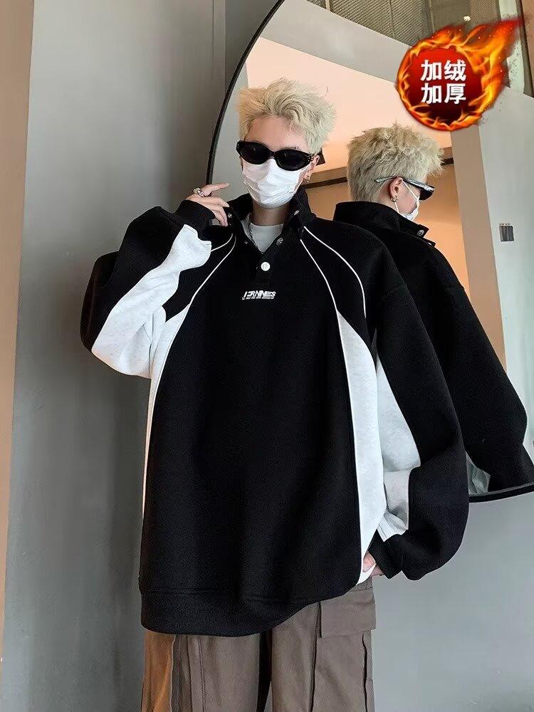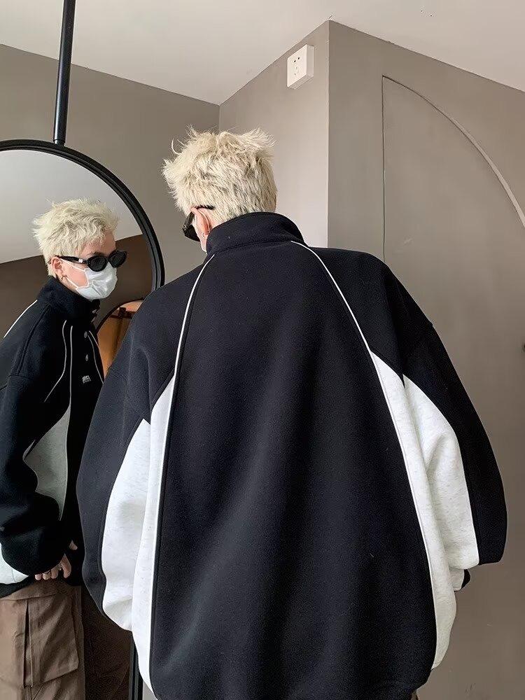 Suéter para hombre, primavera y otoño 2024, nuevo, sencillo, estilo americano, marca de moda urbana, costuras retro, color contrastante, chaqueta informal holgada