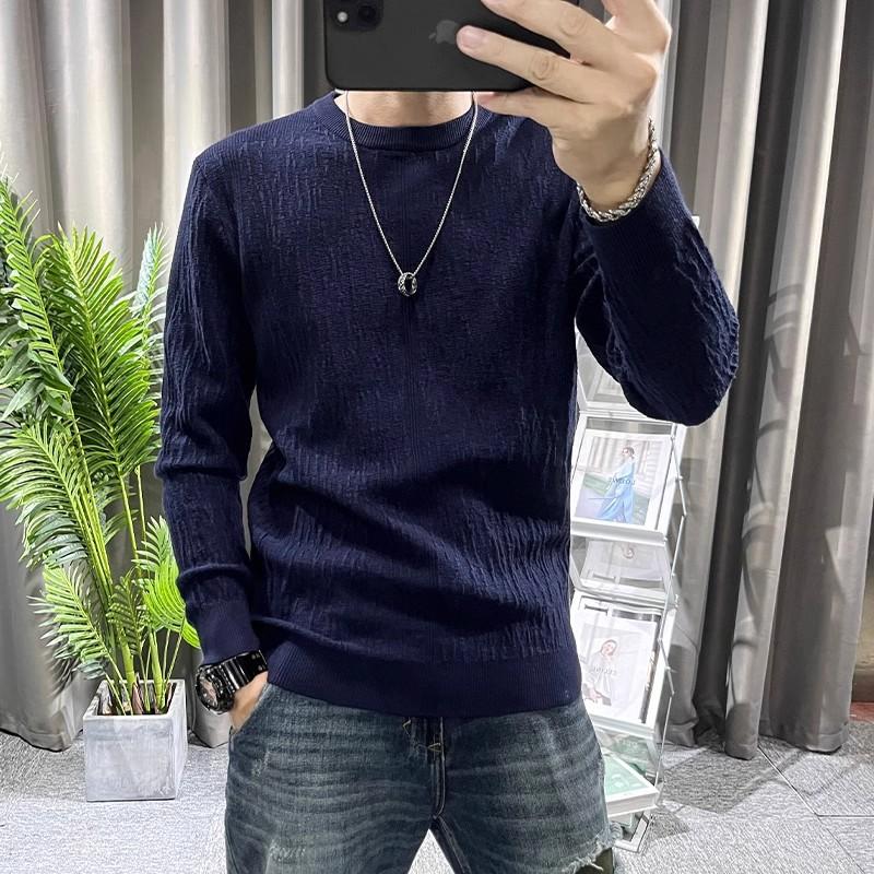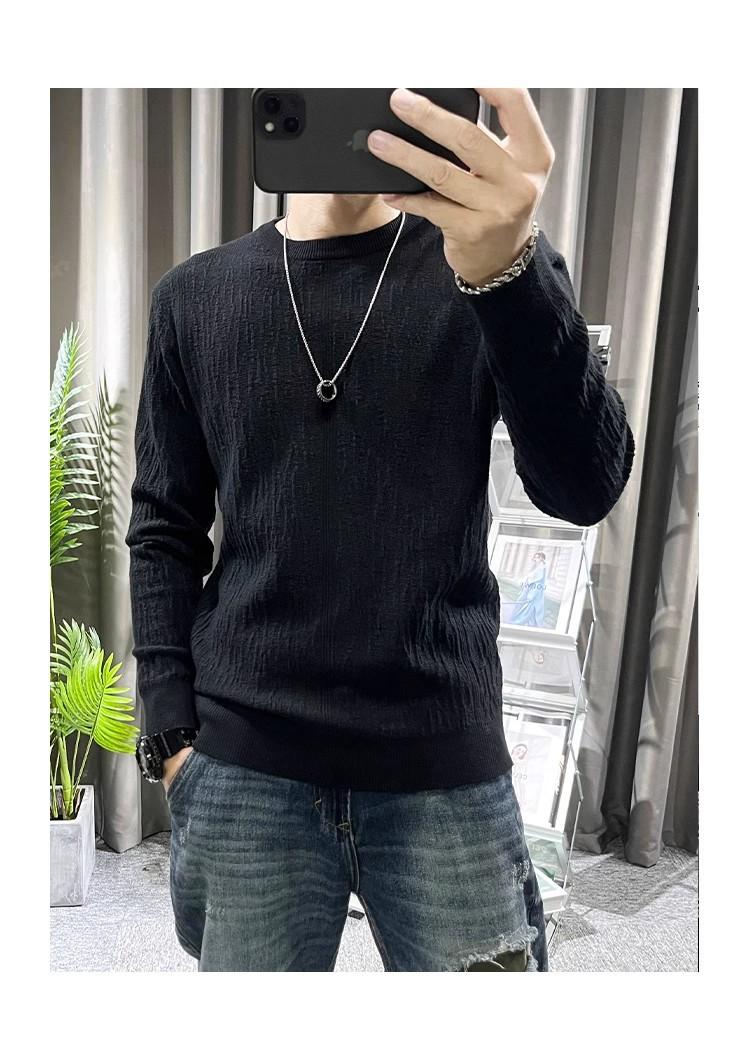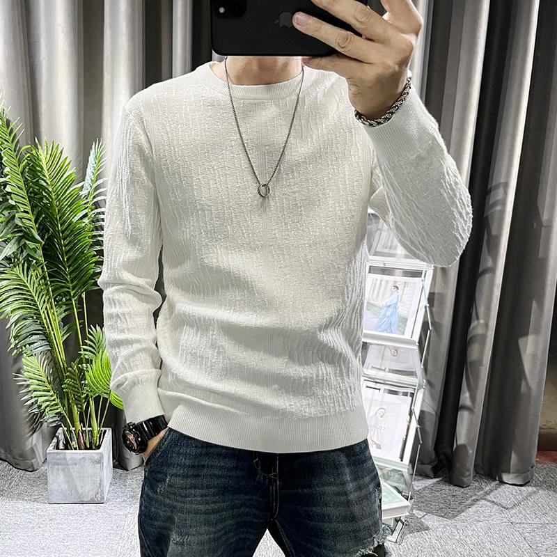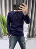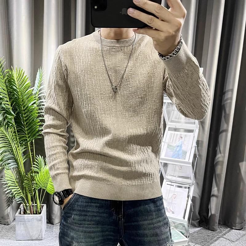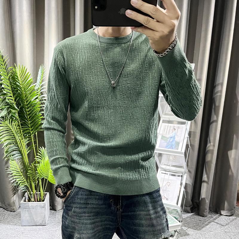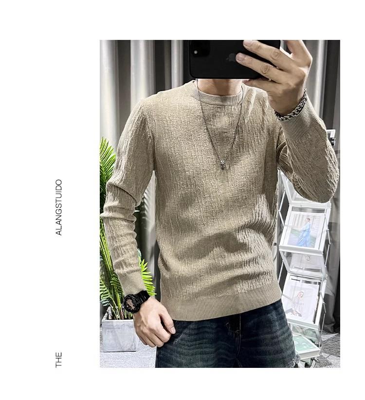 Suéter de hombre de color liso, otoño e invierno, nuevo, ajustado, cuello redondo, moderno, sencillo, popular, juvenil, de manga larga.