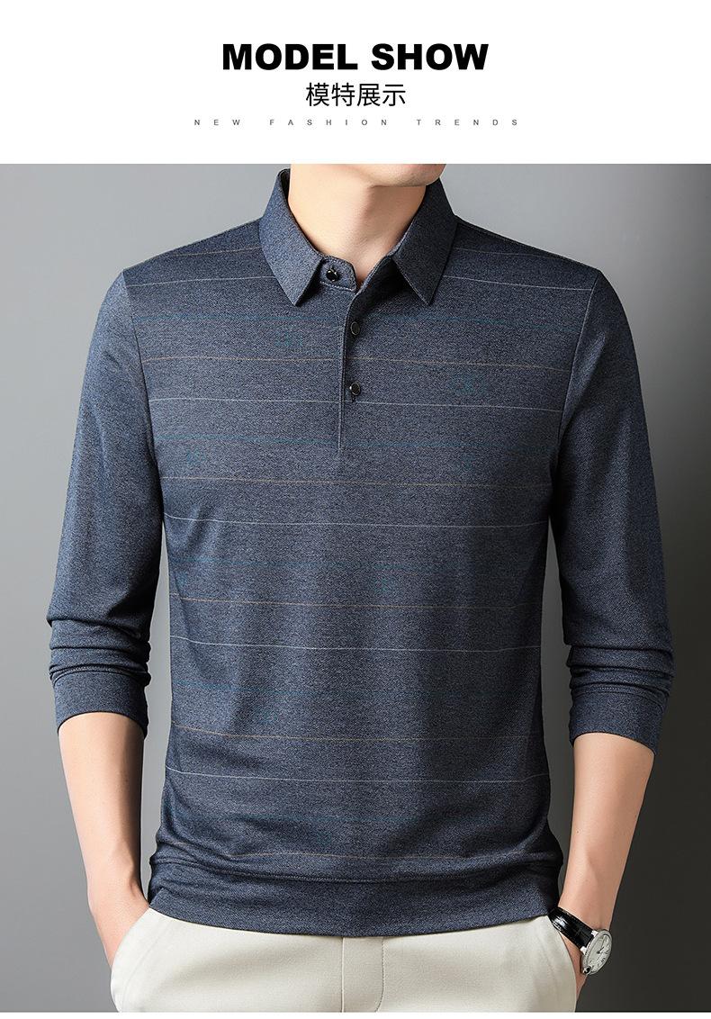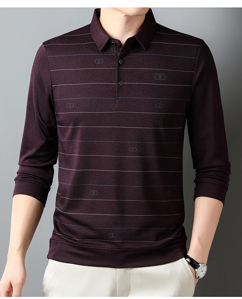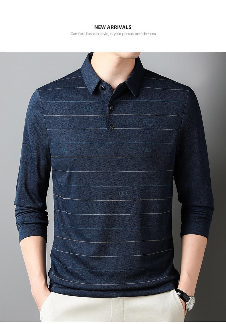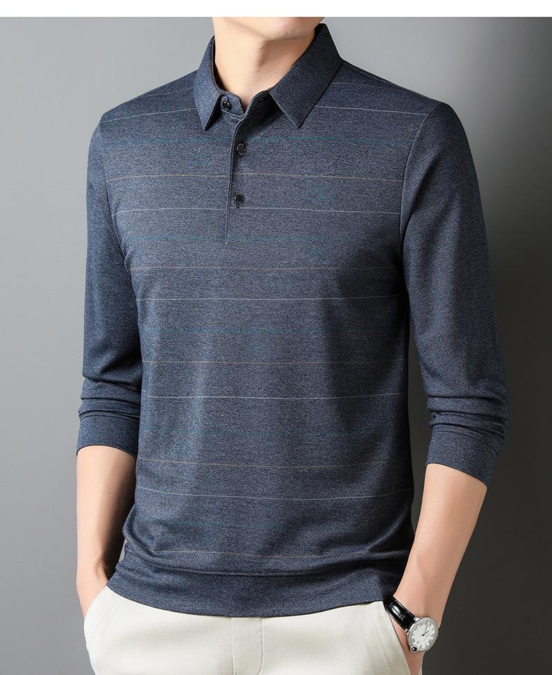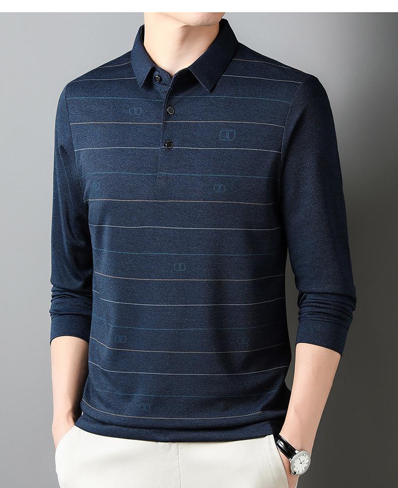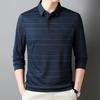 Polo de manga larga para papá, otoño, nuevo, informal, de mediana edad, para hombre de negocios, elástico, cómodo, a rayas.