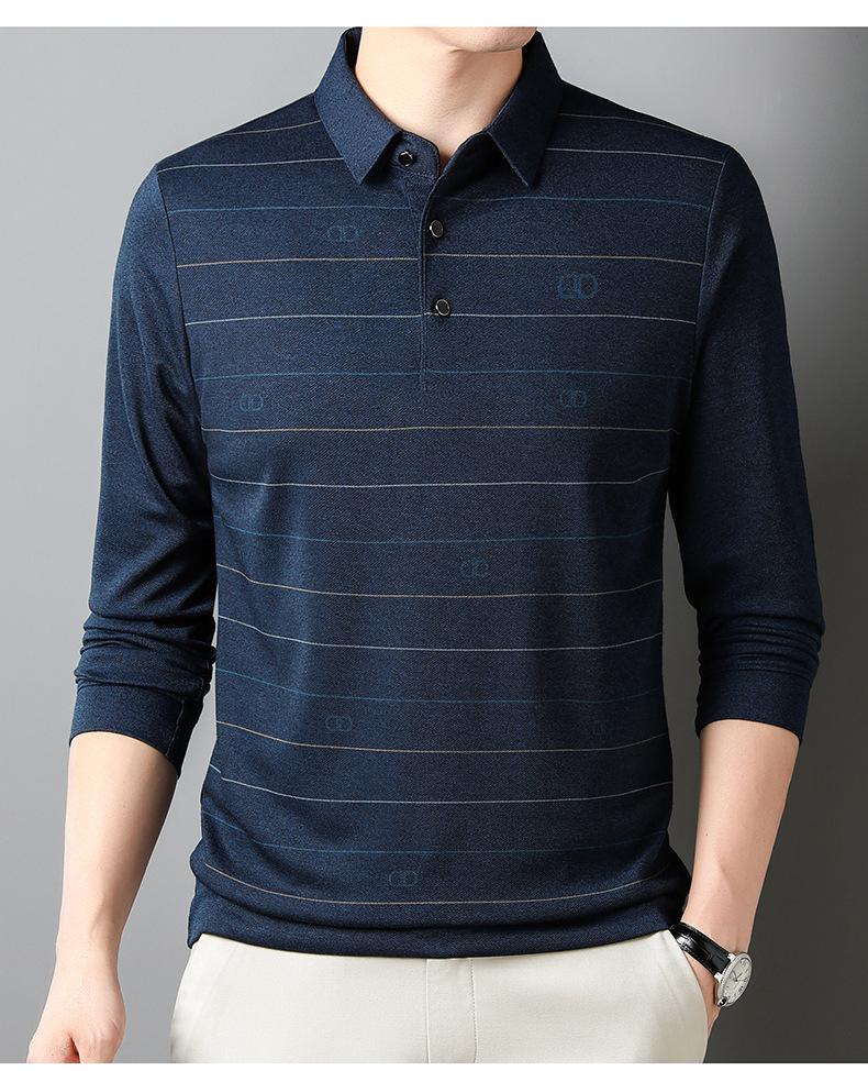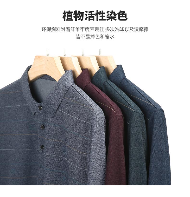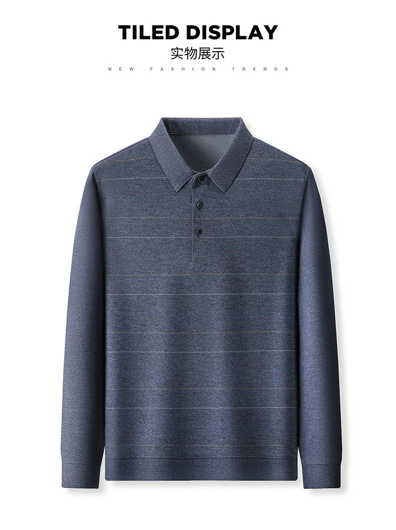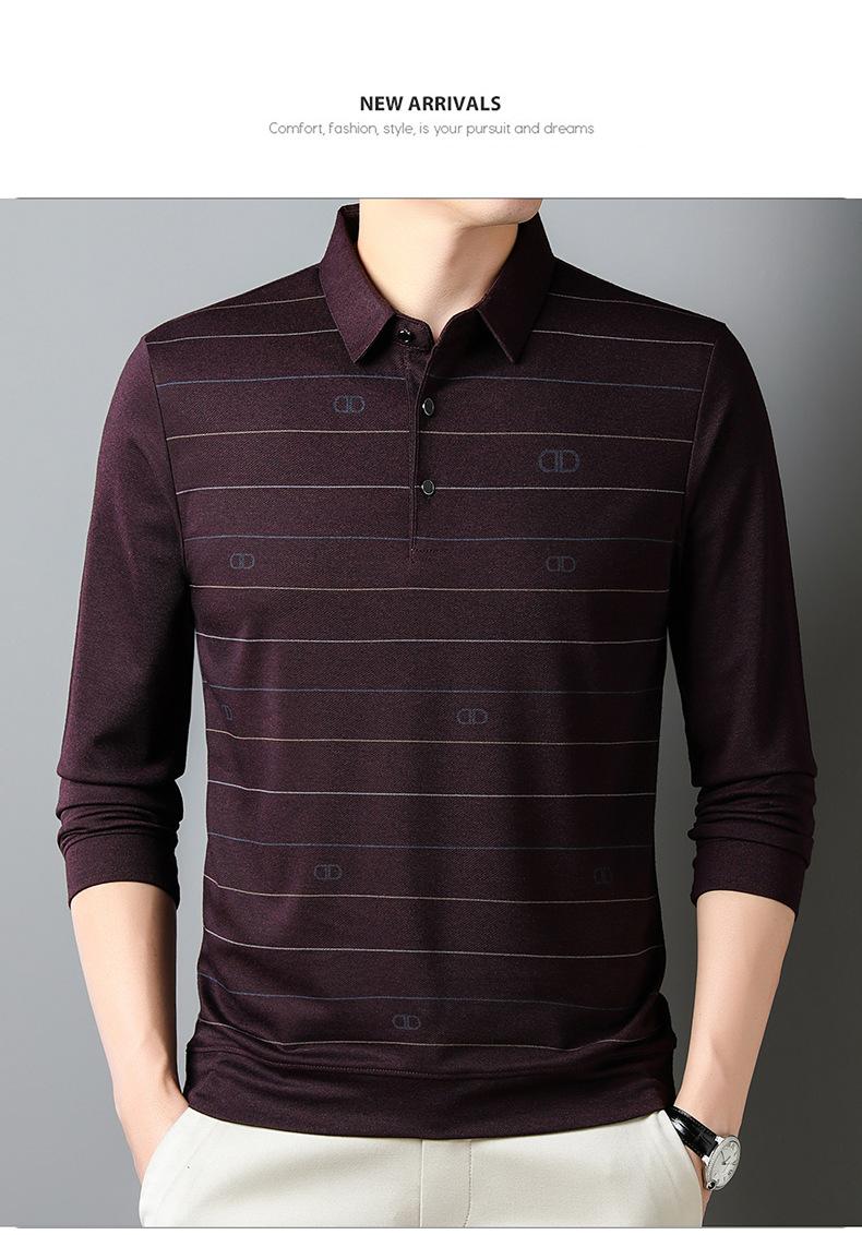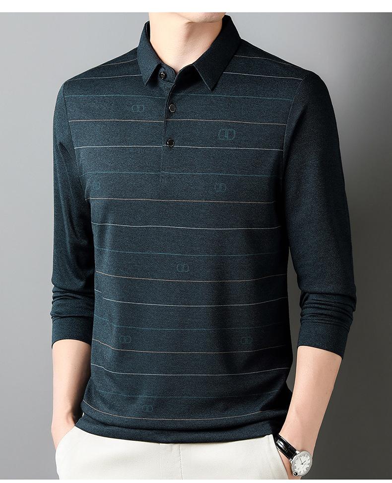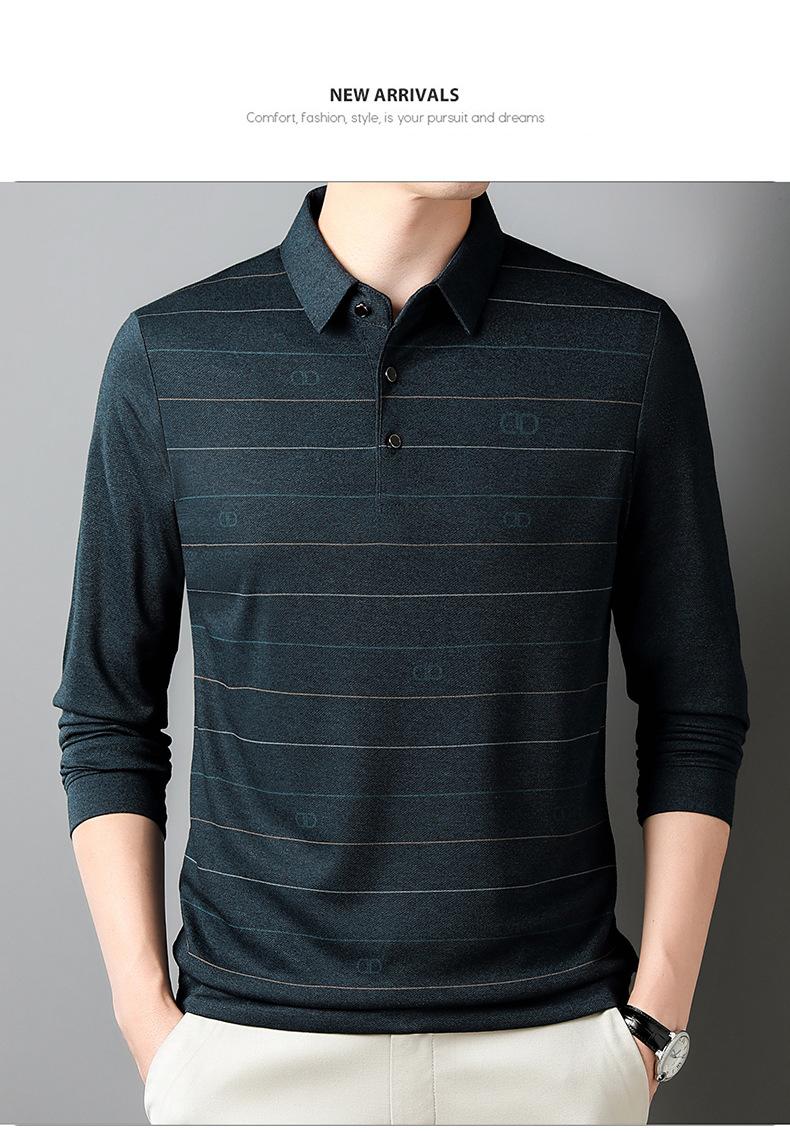 Polo de manga larga para papá, otoño, nuevo, informal, de mediana edad, para hombre de negocios, elástico, cómodo, a rayas.