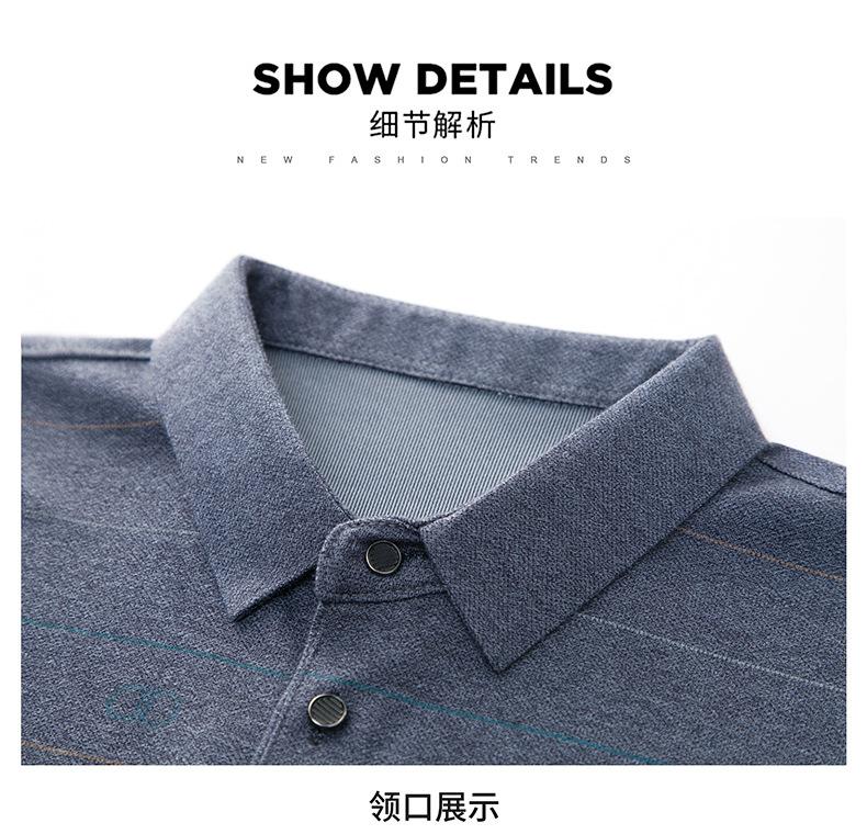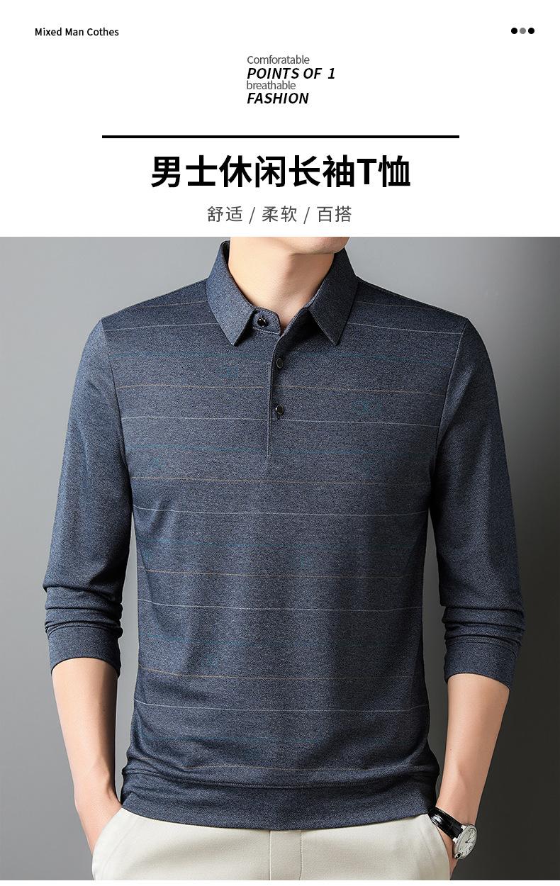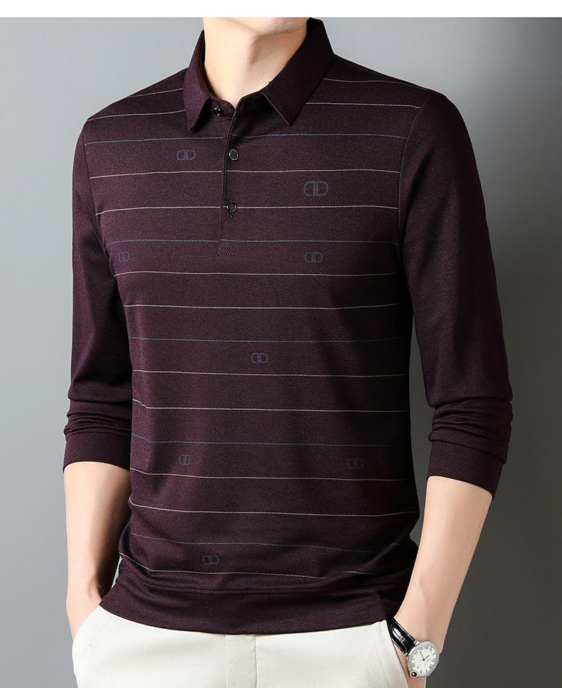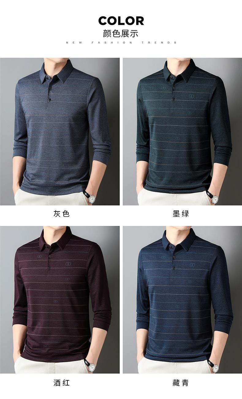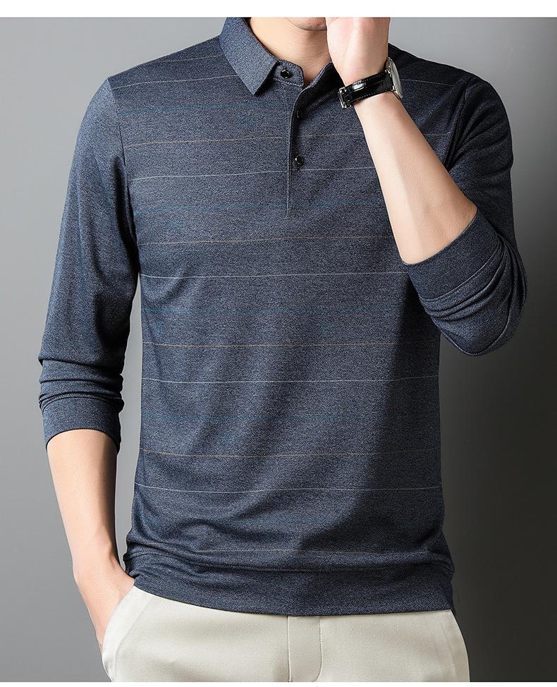 Polo de manga larga para papá, otoño, nuevo, informal, de mediana edad, para hombre de negocios, elástico, cómodo, a rayas.
