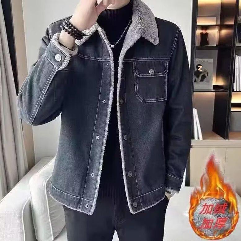 Chaqueta de mezclilla para hombre con forro polar Moda de marca para hombre Invierno Cordero 2024 Nuevo Estilo Coreano Corte Slim Solapas Chaqueta Casual Gruesa