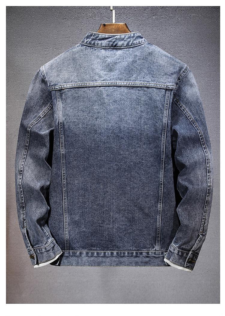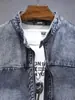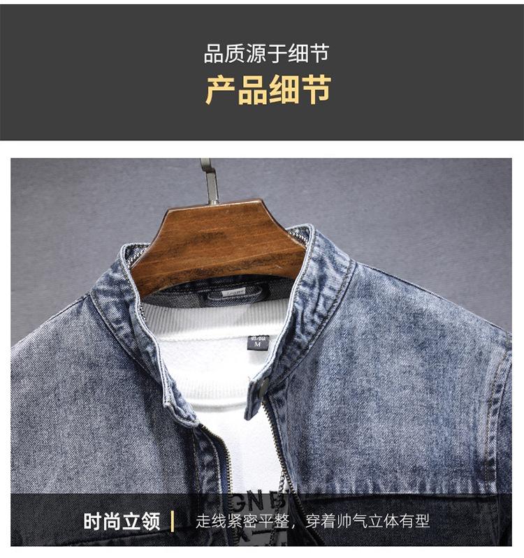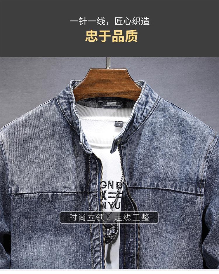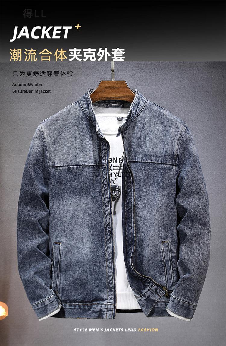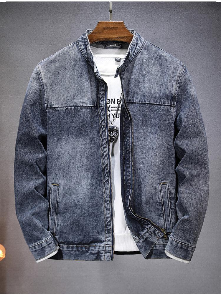 Chaqueta vaquera informal para hombre, nueva, primavera y otoño 2025, estilo retro azul, con cuello vertical y cremallera.