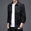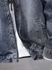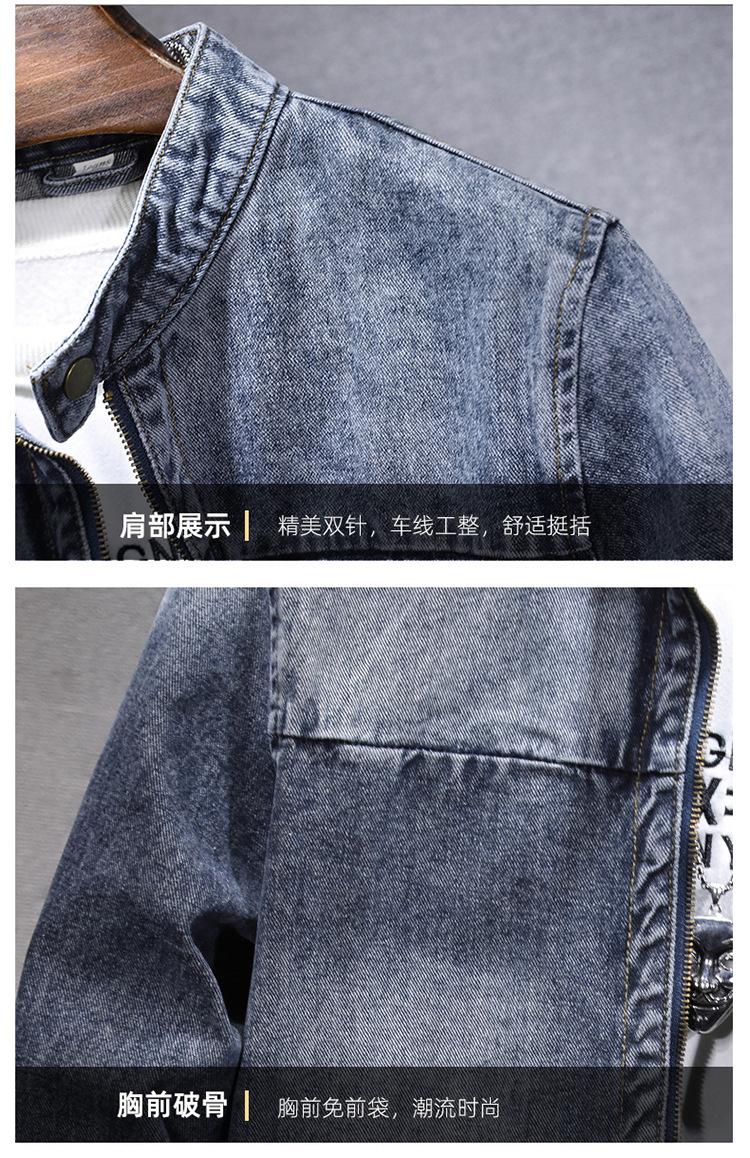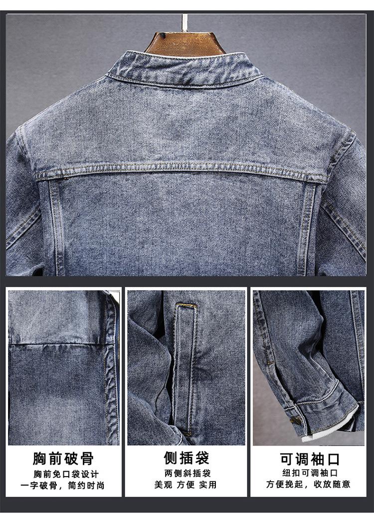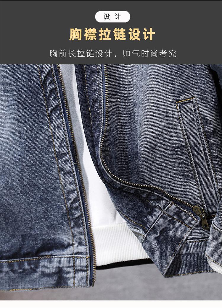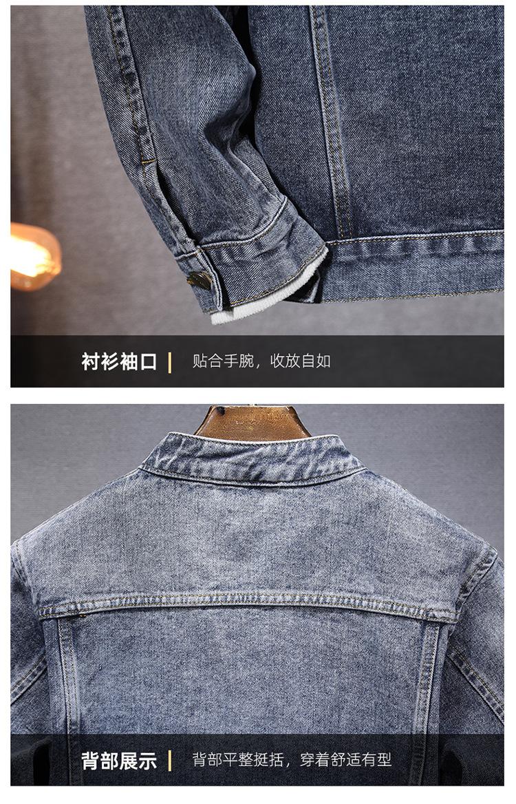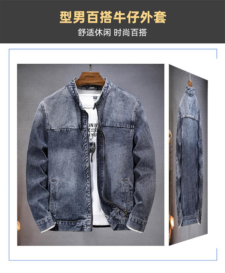 Chaqueta vaquera informal para hombre, nueva, primavera y otoño 2025, estilo retro azul, con cuello vertical y cremallera.