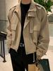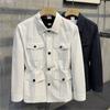 Chaqueta para hombre de estilo maduro ligero, guapo, primavera y otoño, estilo coreano, sentido del diseño, moderno, falso de dos piezas, solapas, chaqueta de trabajo retro