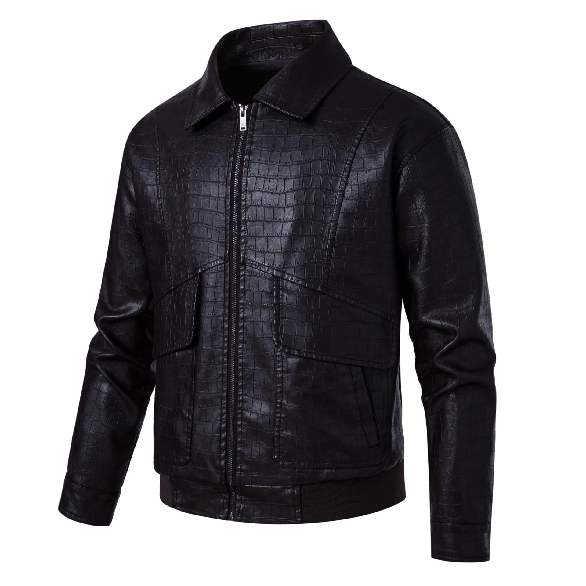 Espejo Cruzado para Talla Europea Nueva Moda Chaqueta de Solapa Casual de Cuero para Hombre Cuero Suelto Chaqueta Biker para Hombre