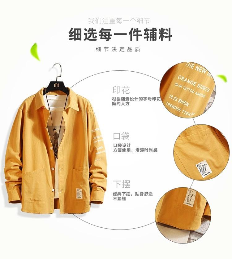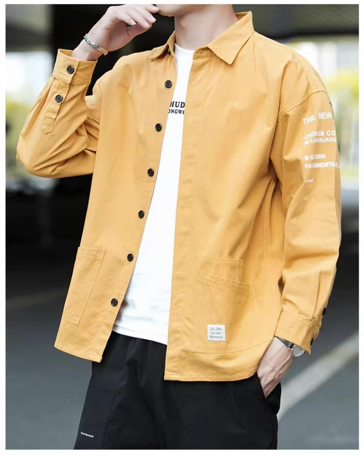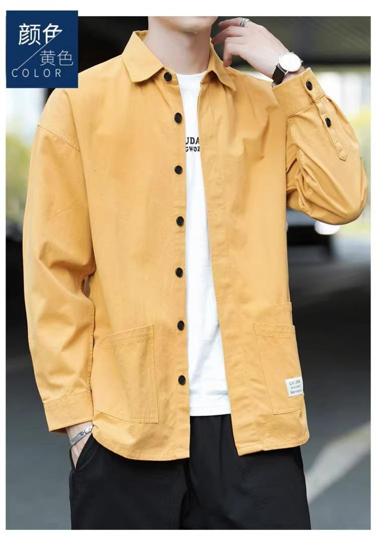 Camisa de Trabajo de Estilo Nuevo de Primavera y Otoño para Hombre de Manga Larga Estilo Coreano a la Moda Suelta con Bolsillos Chaqueta Delgada Casual para Combinar con Todo