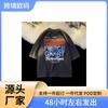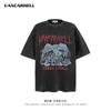 Camiseta de manga corta con estampado de letras antiguas lavadas de marca de moda retro de estilo americano para hombre, top informal holgado vintage para pareja