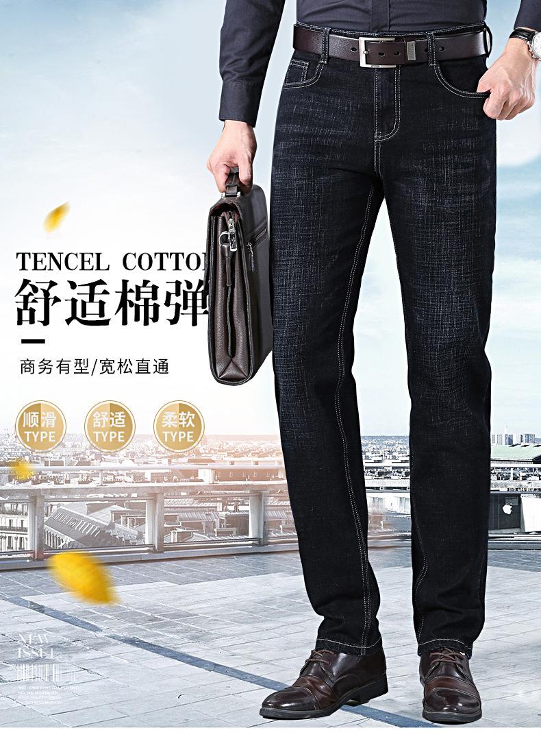 Pantalones vaqueros de primavera y otoño para hombre, verano 2024, nuevos pantalones largos informales, holgados, rectos y elásticos de mediana edad de alta gama.