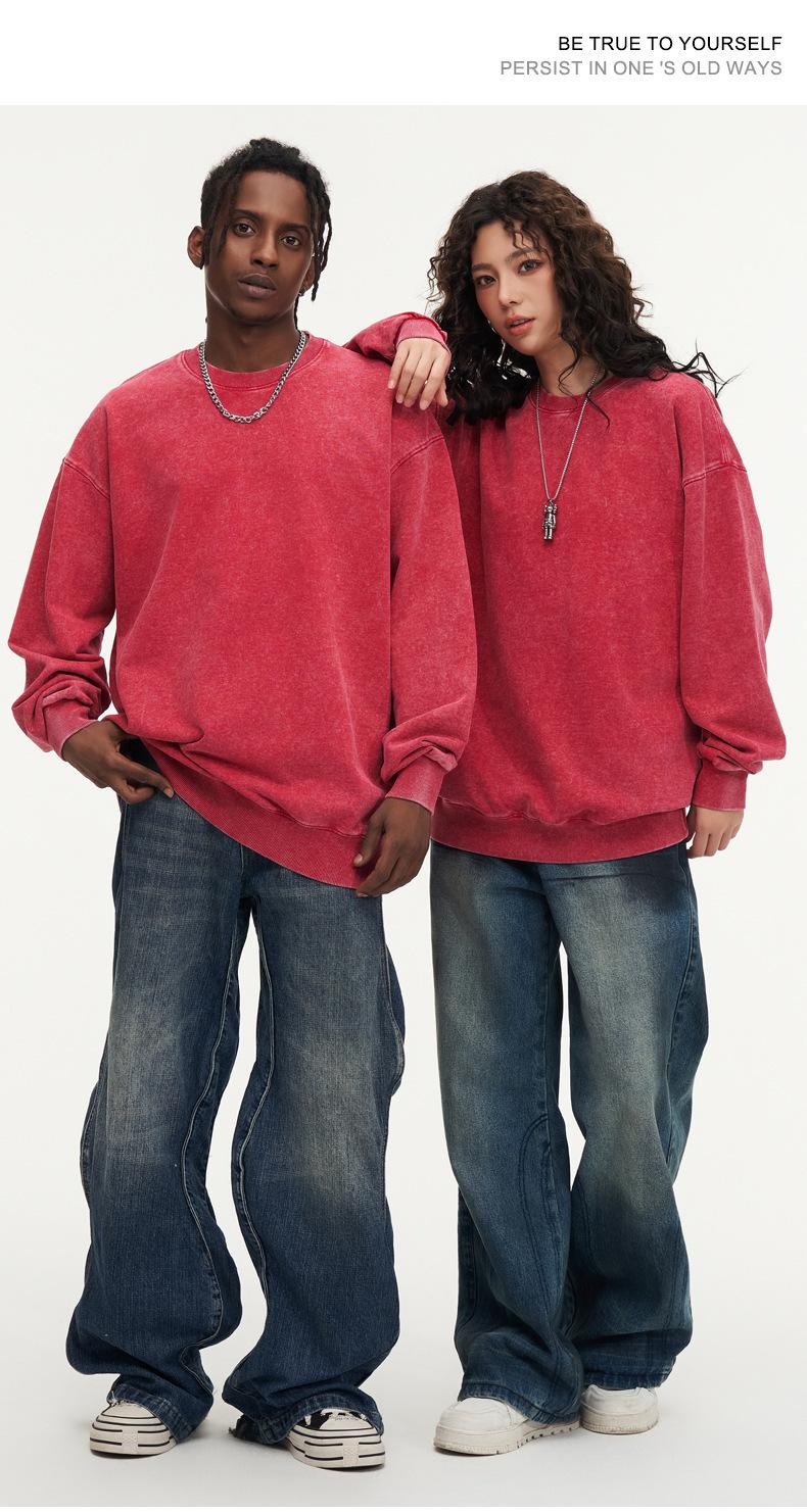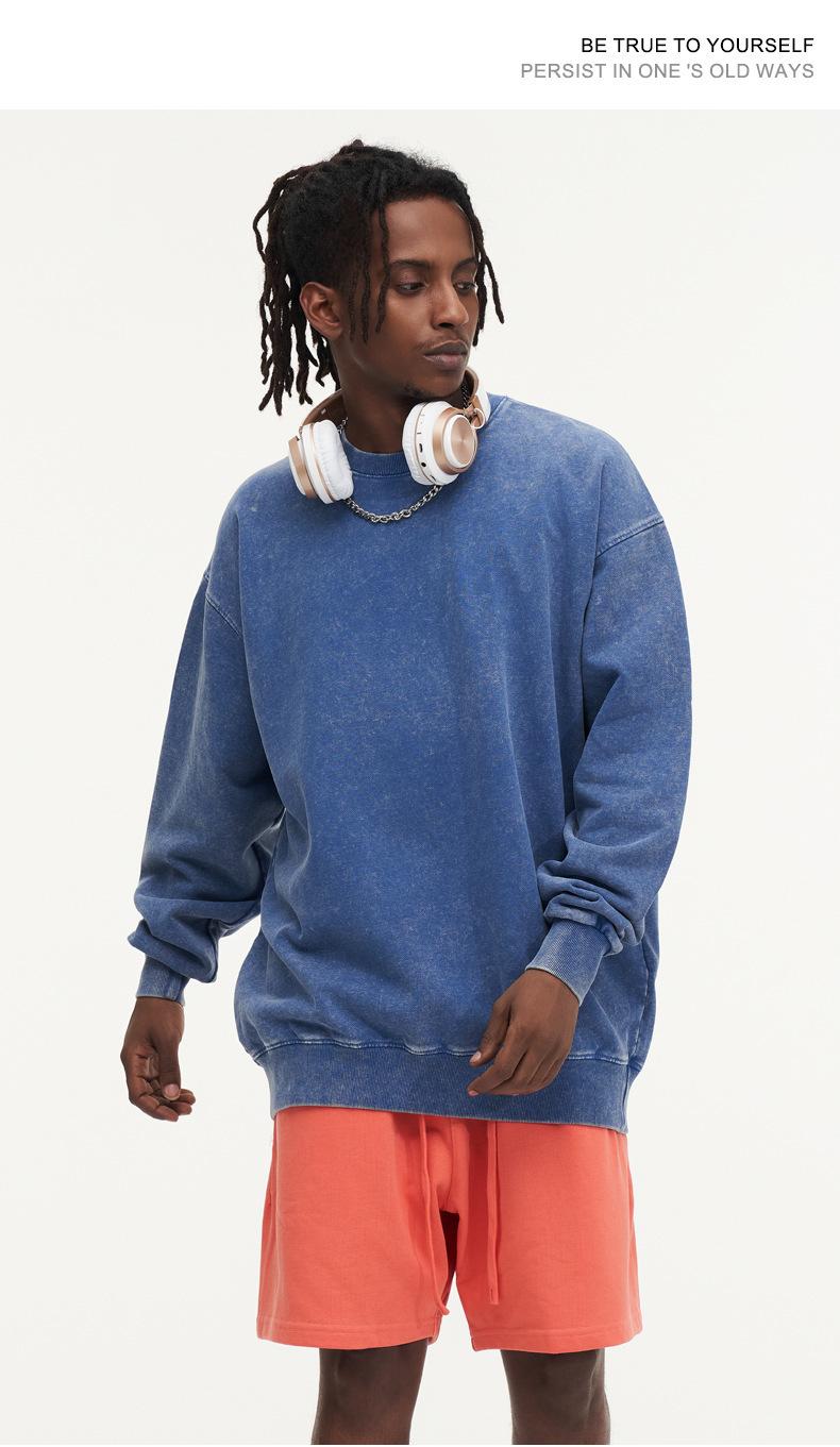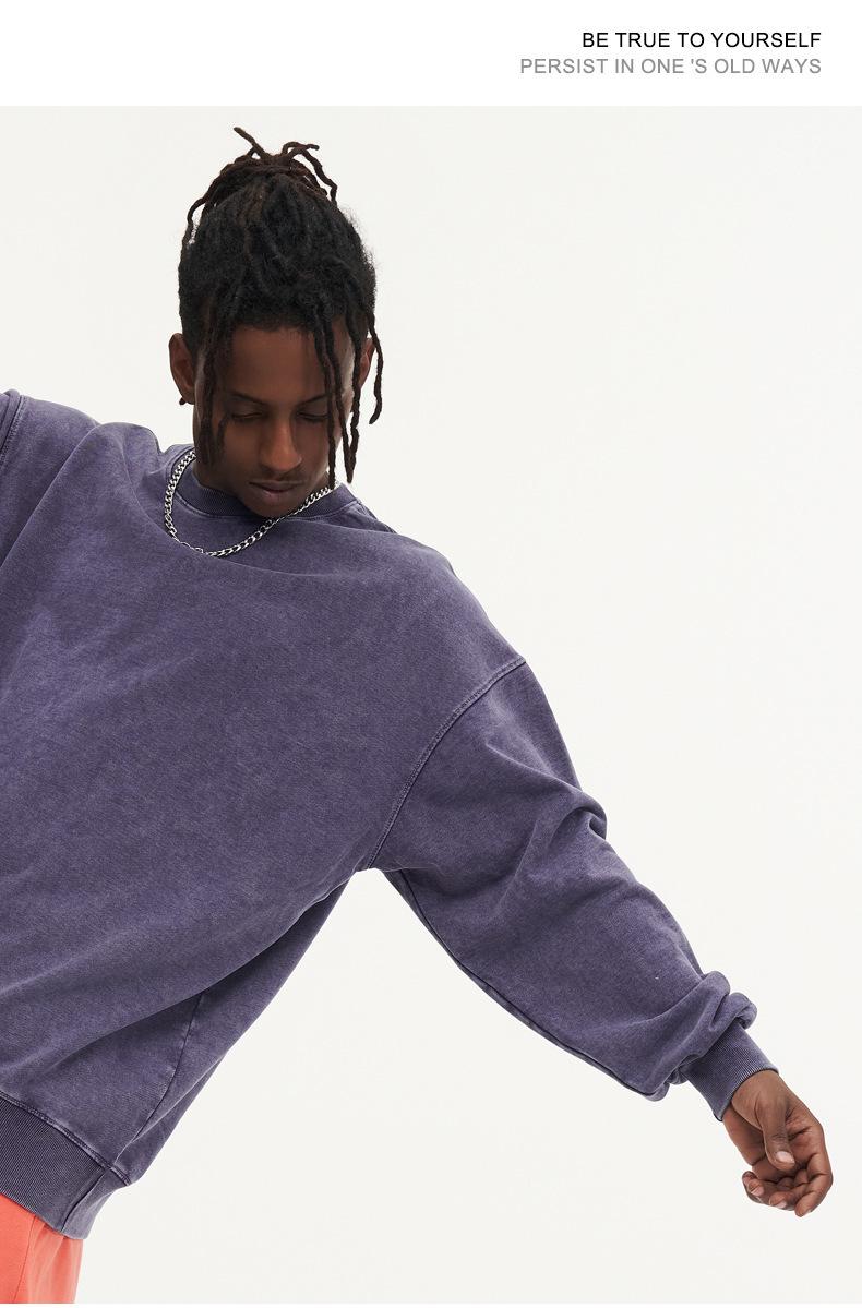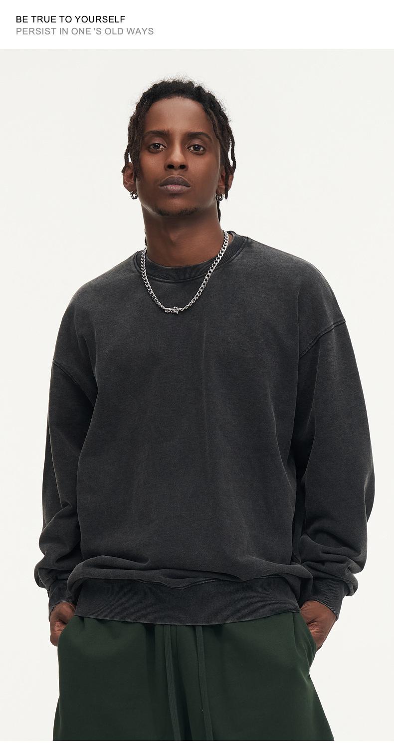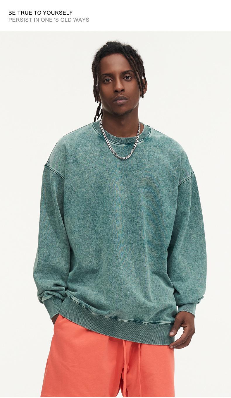 Suéter de felpa con cuello redondo lavado estilo retro americano de 430 g para hombre, suéter holgado y pesado de algodón viejo de talla grande