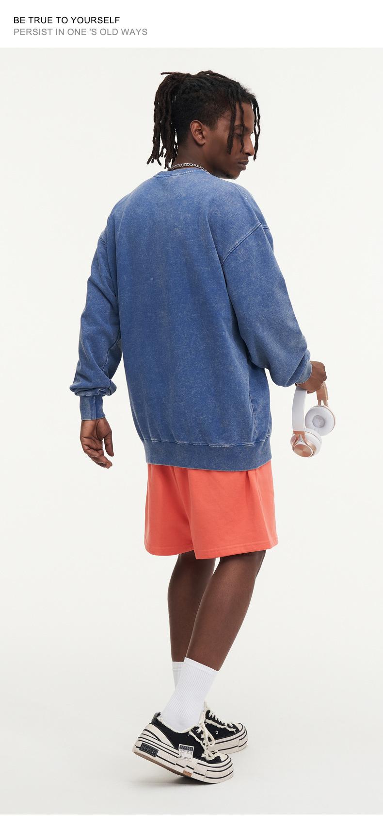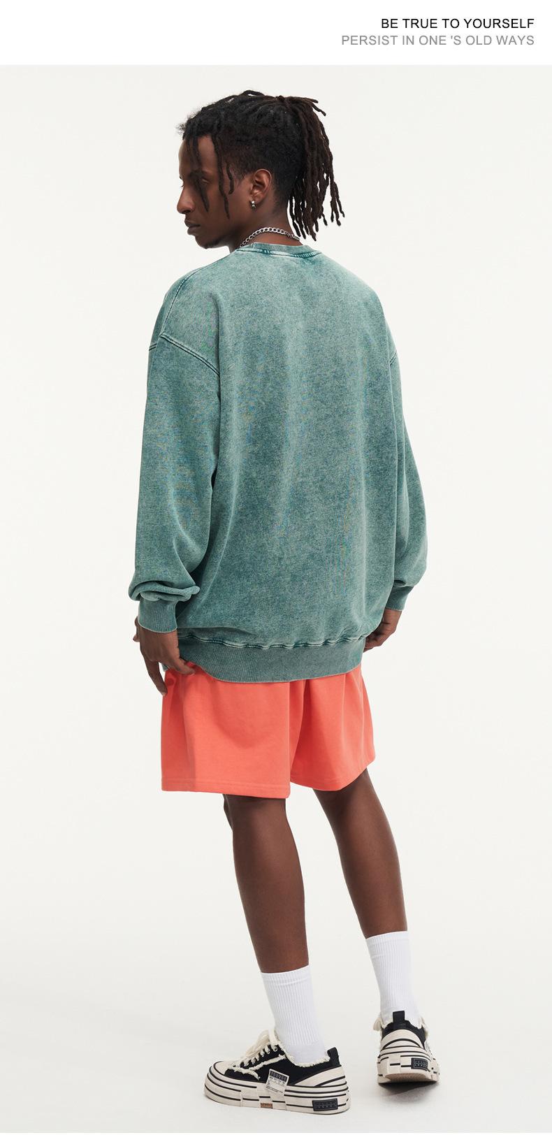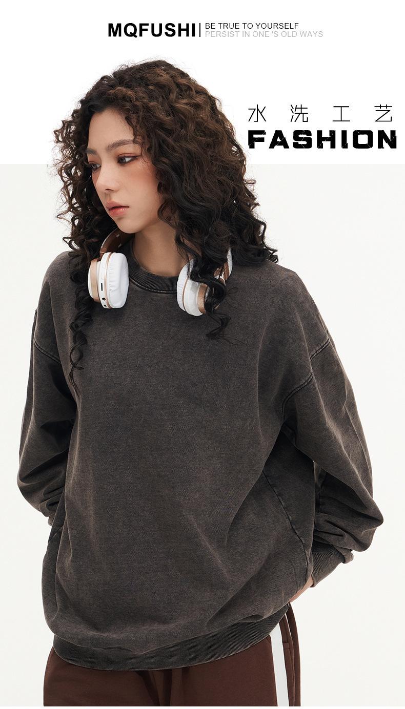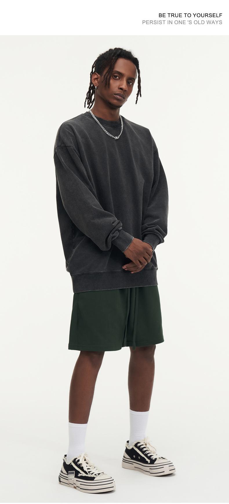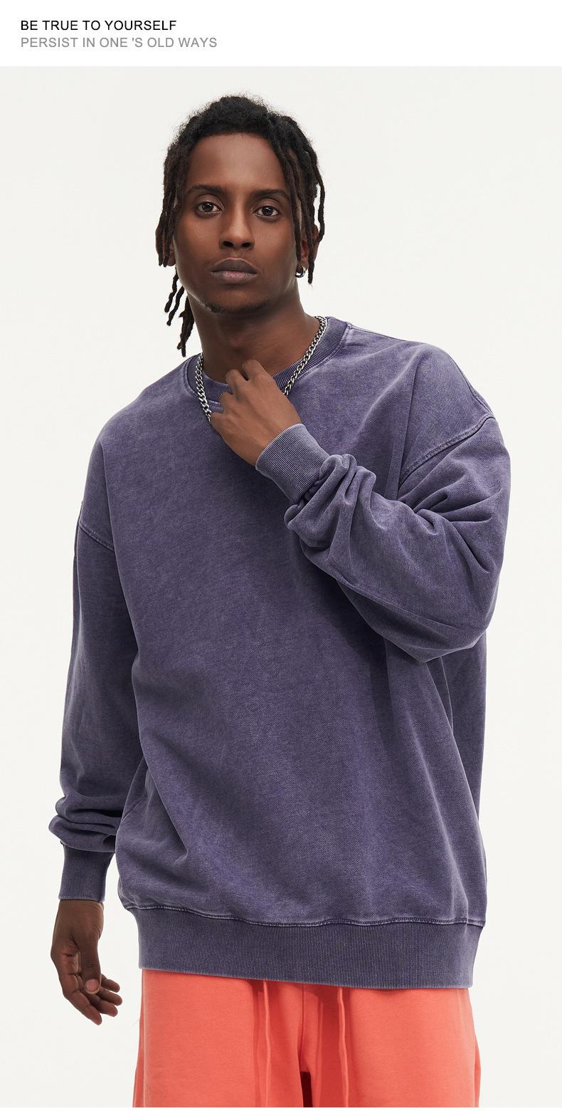 Suéter de felpa con cuello redondo lavado estilo retro americano de 430 g para hombre, suéter holgado y pesado de algodón viejo de talla grande