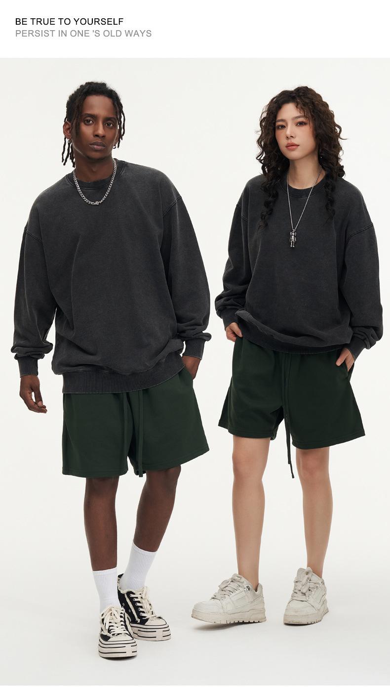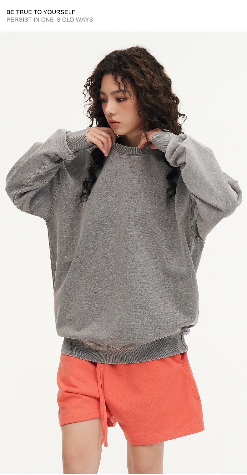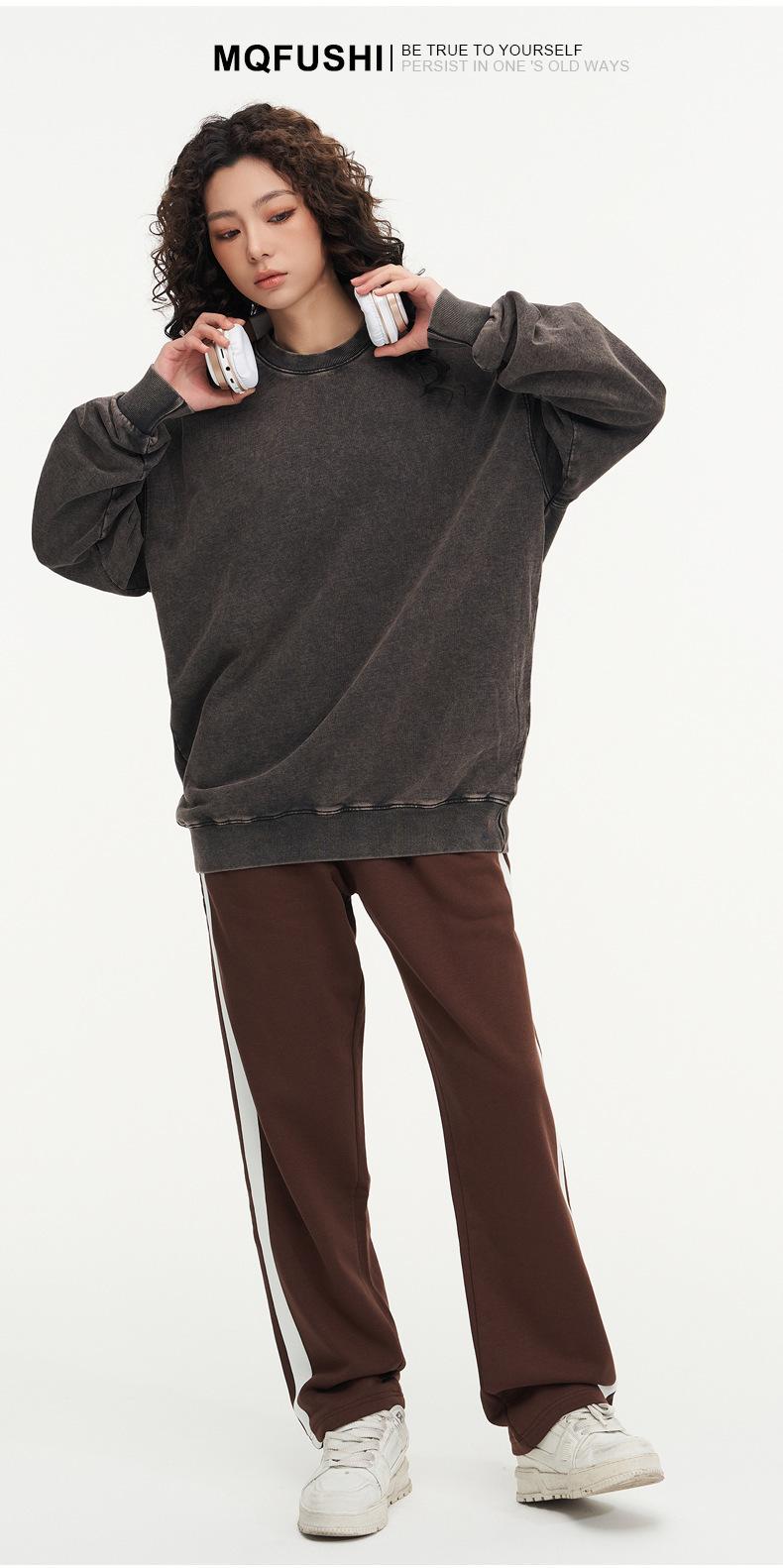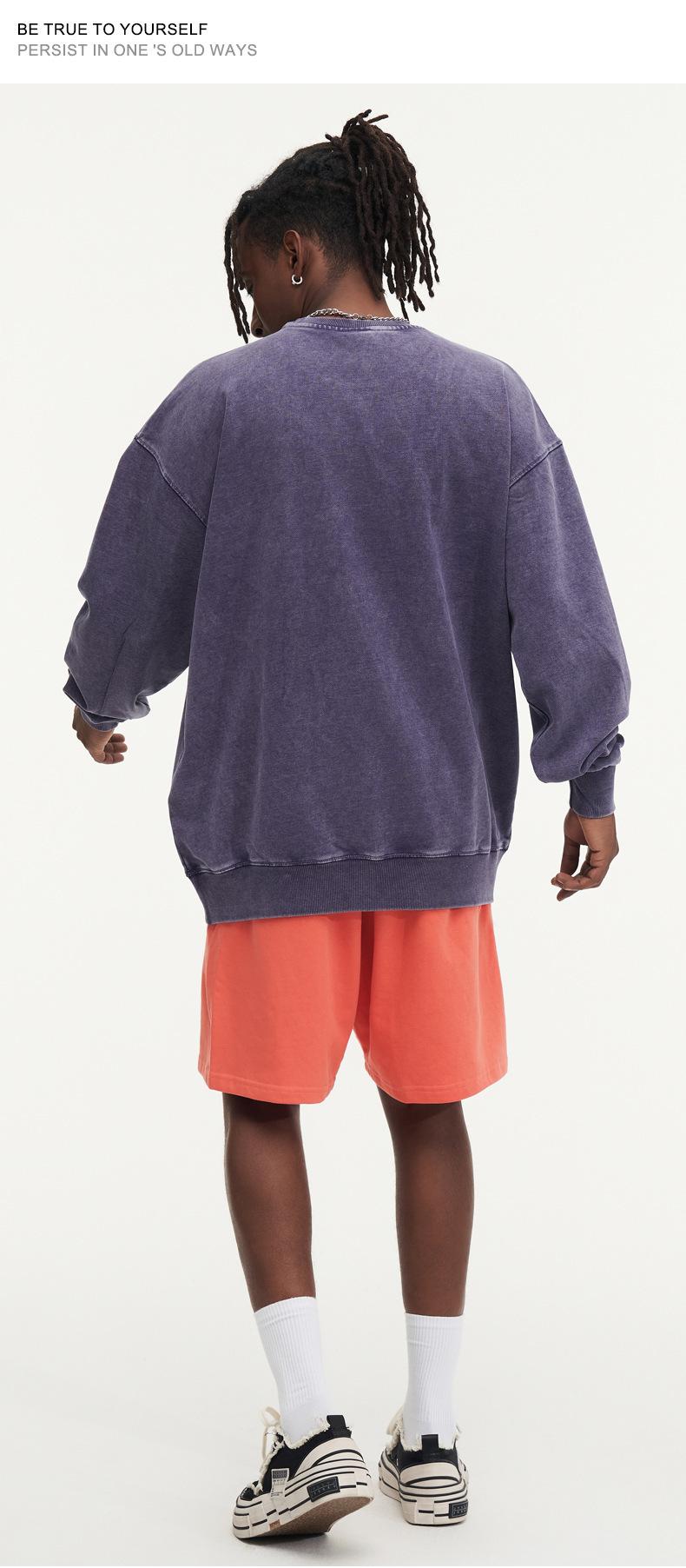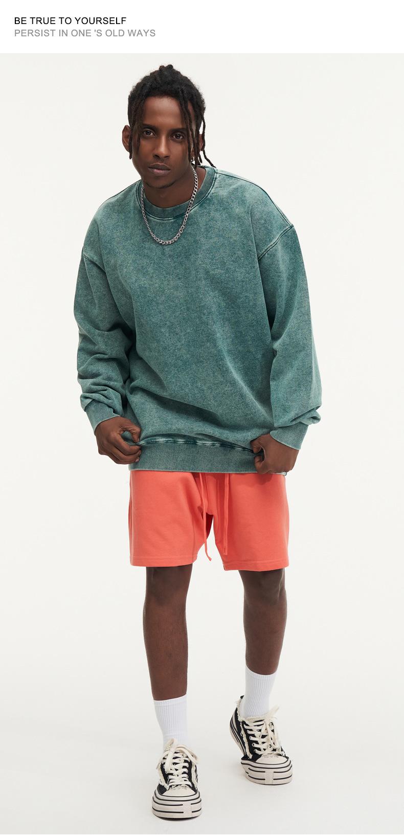 Suéter de felpa con cuello redondo lavado estilo retro americano de 430 g para hombre, suéter holgado y pesado de algodón viejo de talla grande