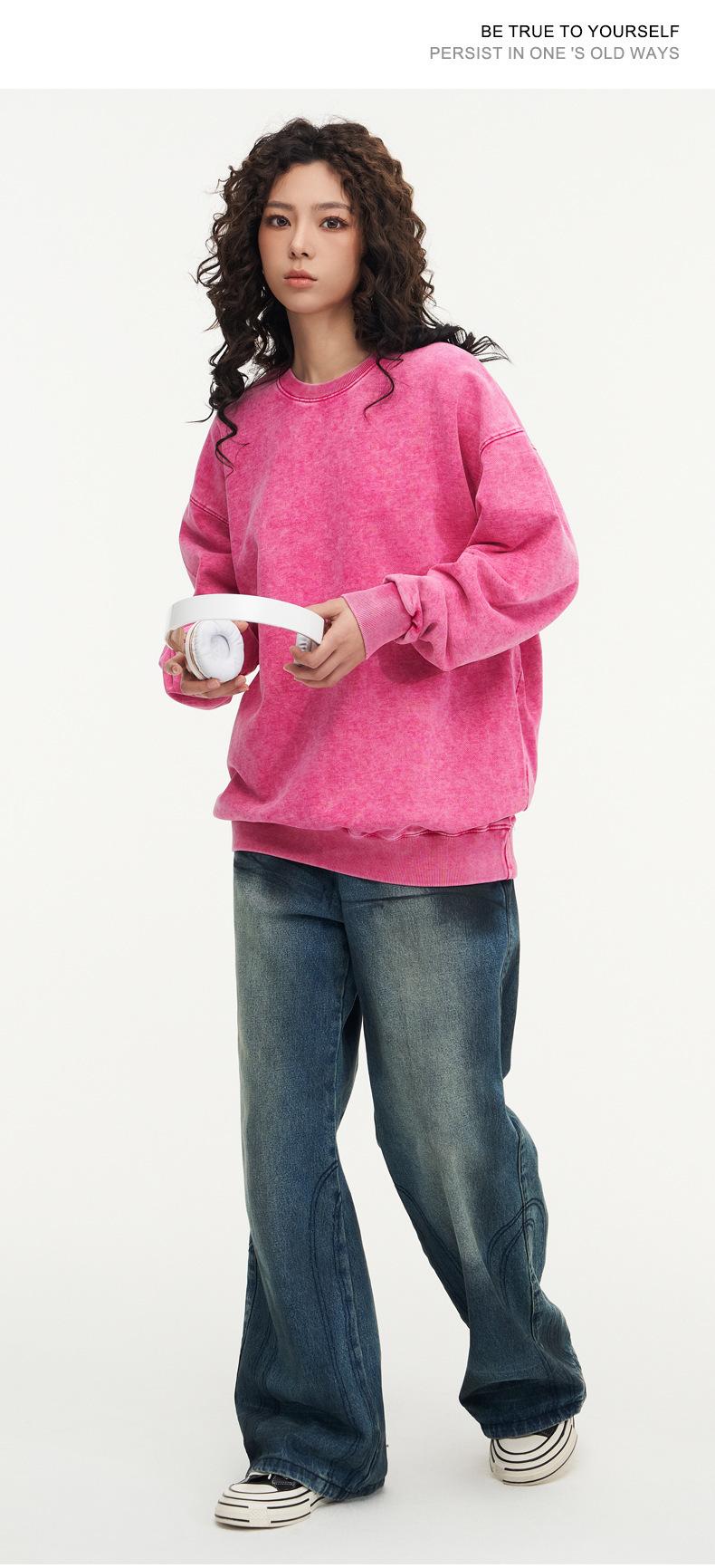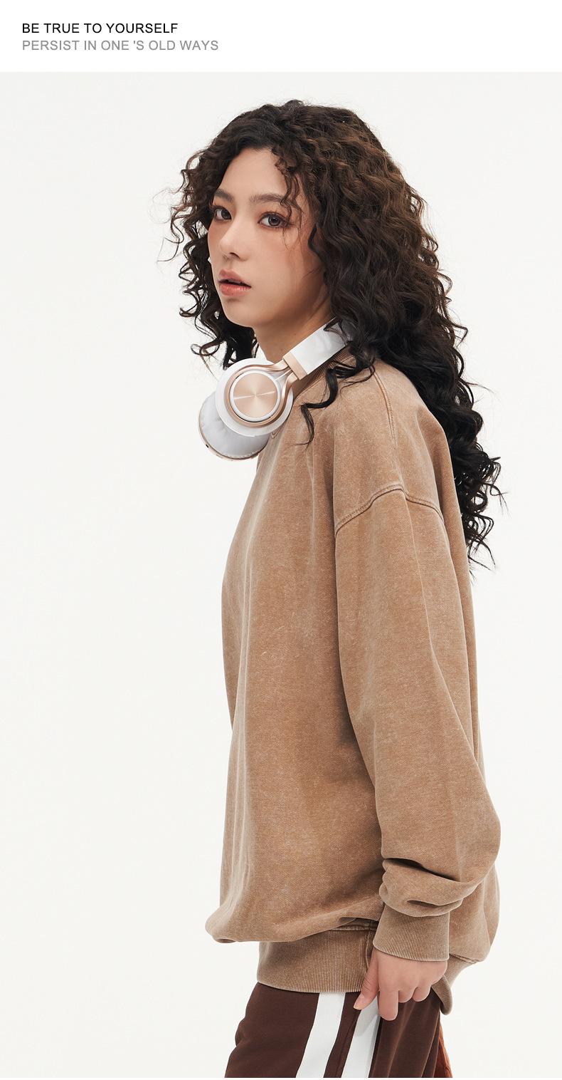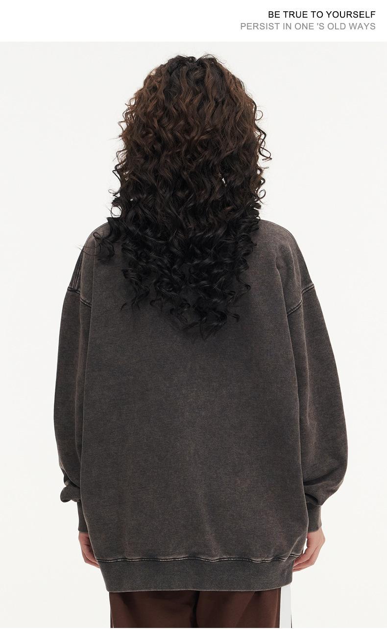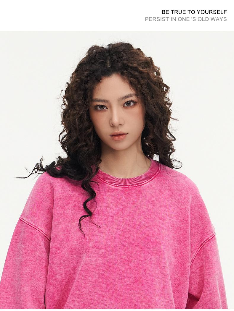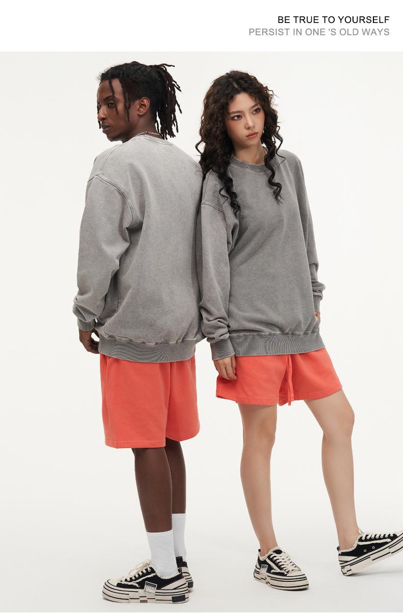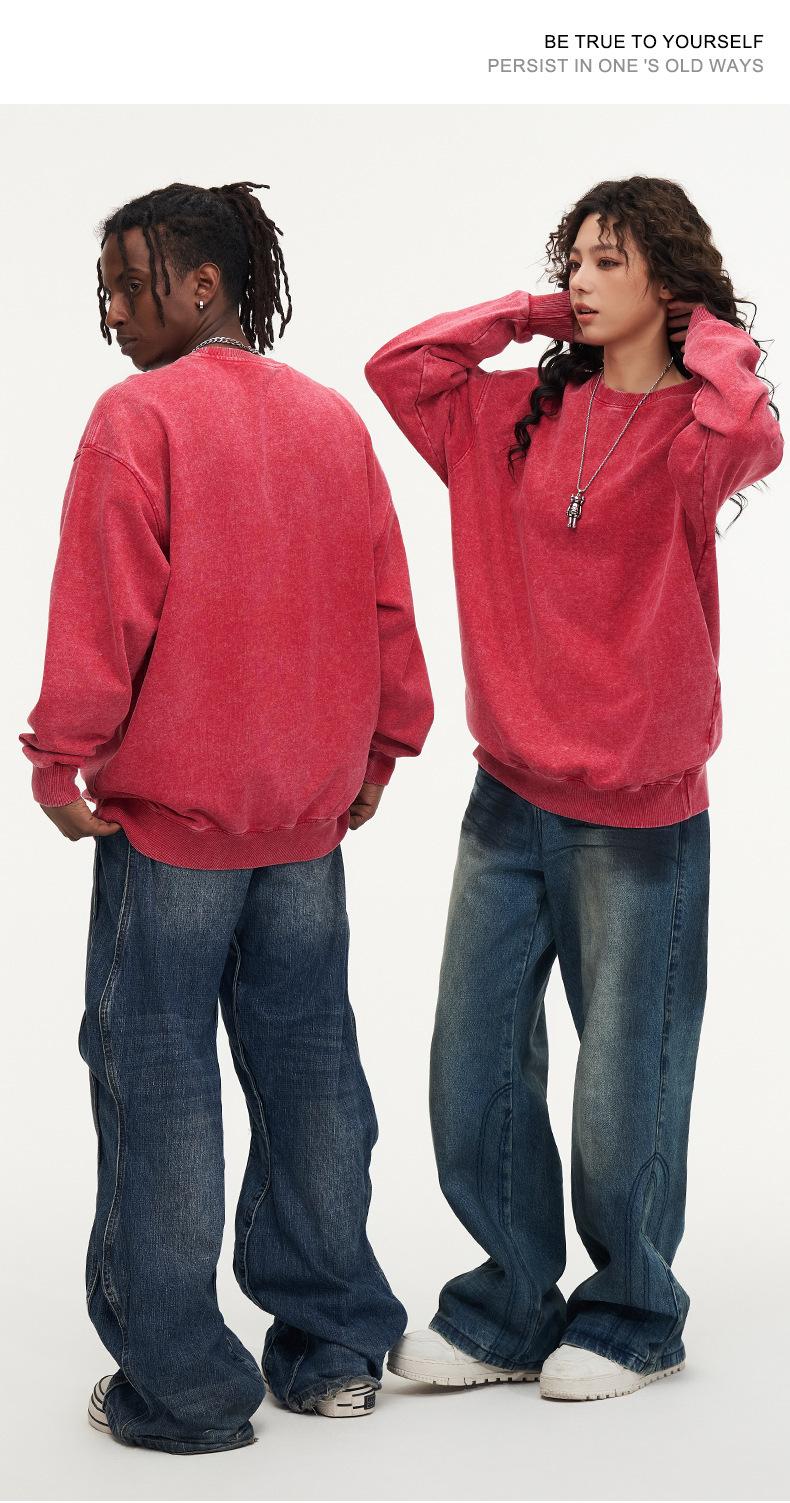 Suéter de felpa con cuello redondo lavado estilo retro americano de 430 g para hombre, suéter holgado y pesado de algodón viejo de talla grande