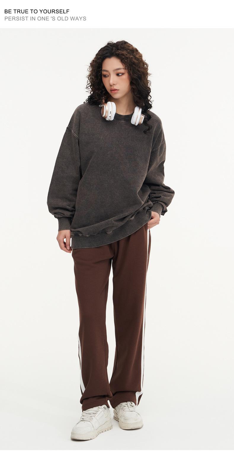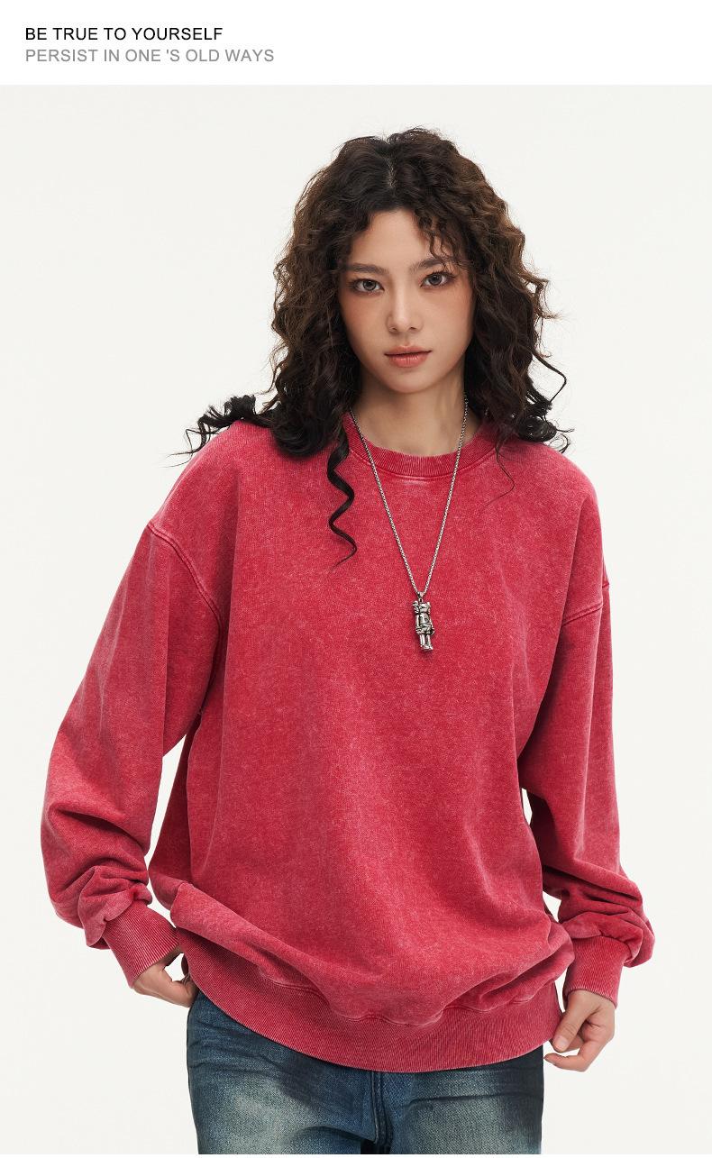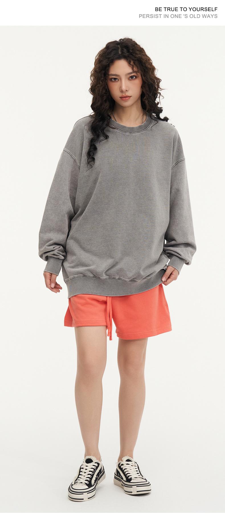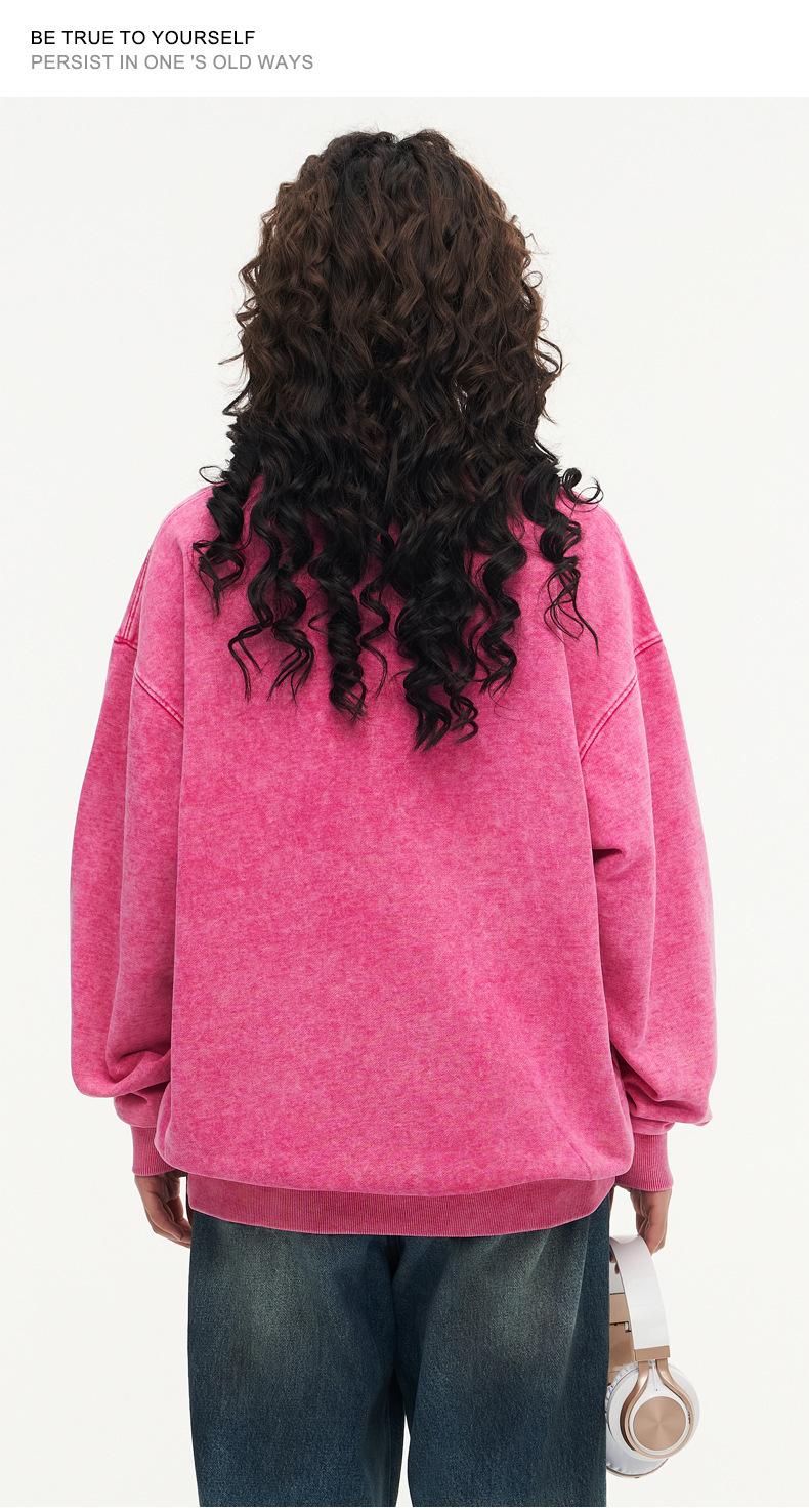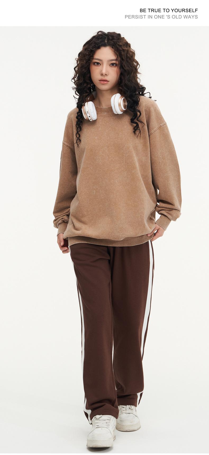 Suéter de felpa con cuello redondo lavado estilo retro americano de 430 g para hombre, suéter holgado y pesado de algodón viejo de talla grande