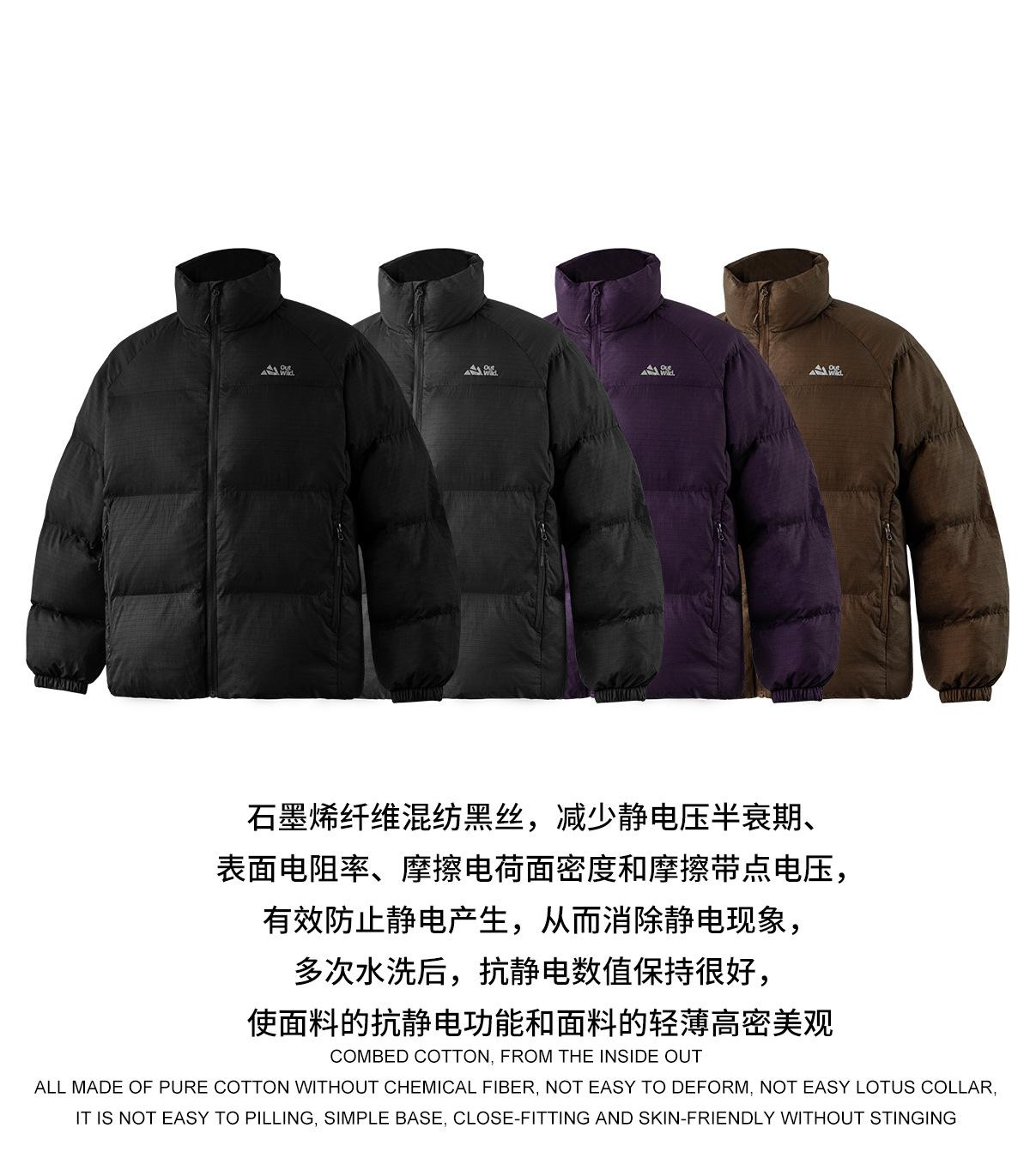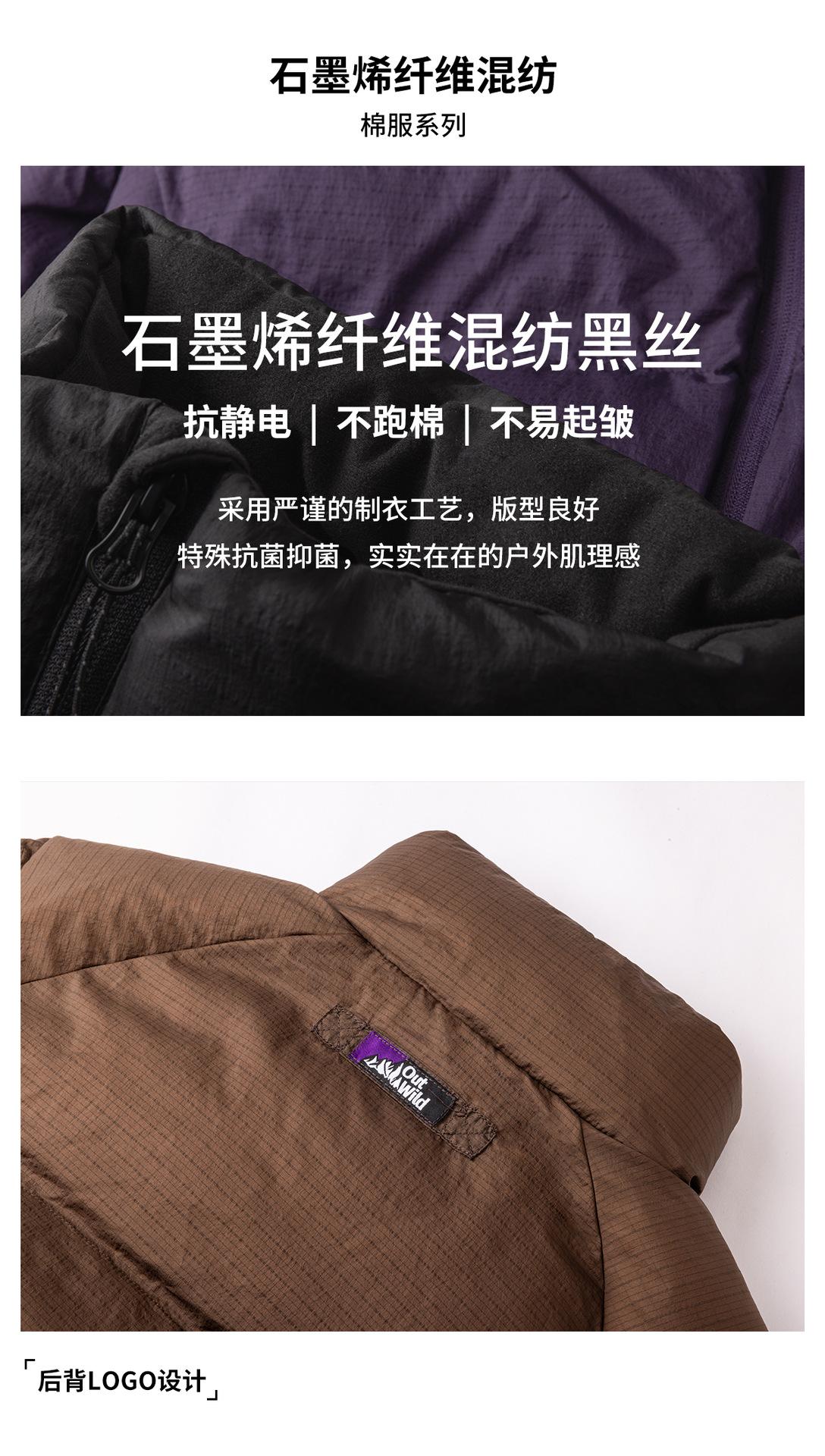 Chaqueta acolchada de algodón con cuello alto, cálida, transpirable, de grafeno, de color sólido, para exteriores, de invierno 2024, informal, holgada y resistente a las arrugas.