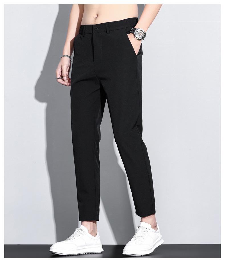 Pantalones casuales negros de verano para hombre, nuevos pantalones de traje rectos y finos, pantalones cortos de moda que combinan con todo para hombre.