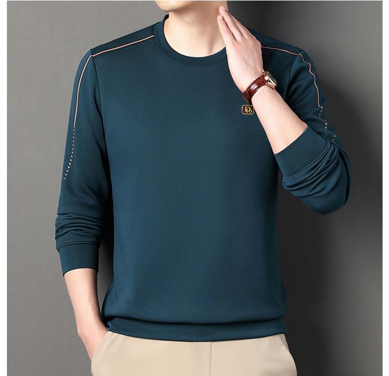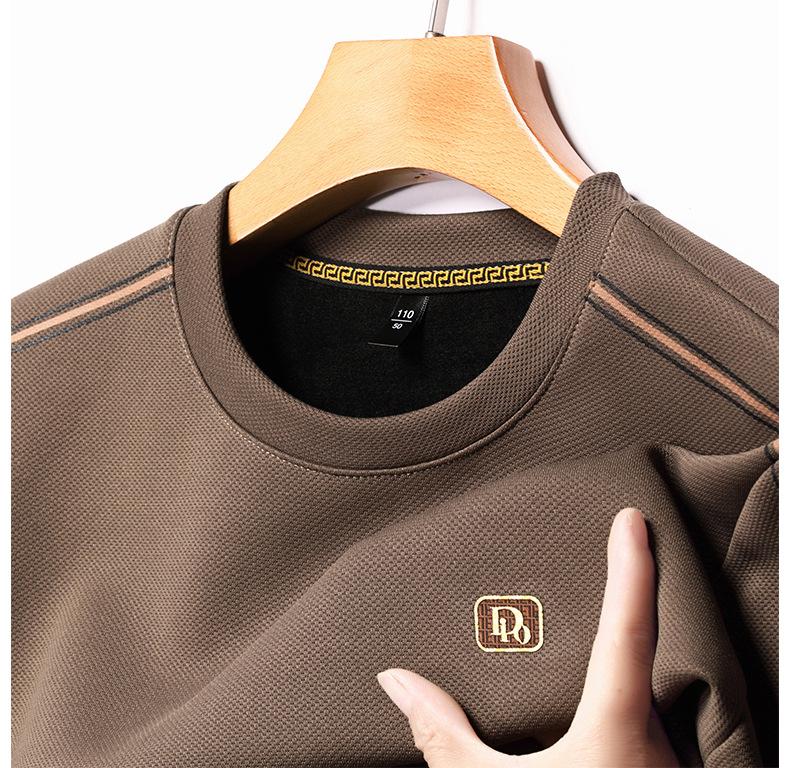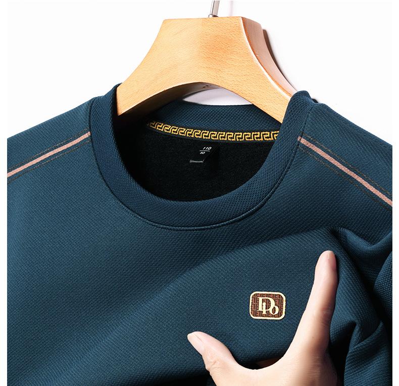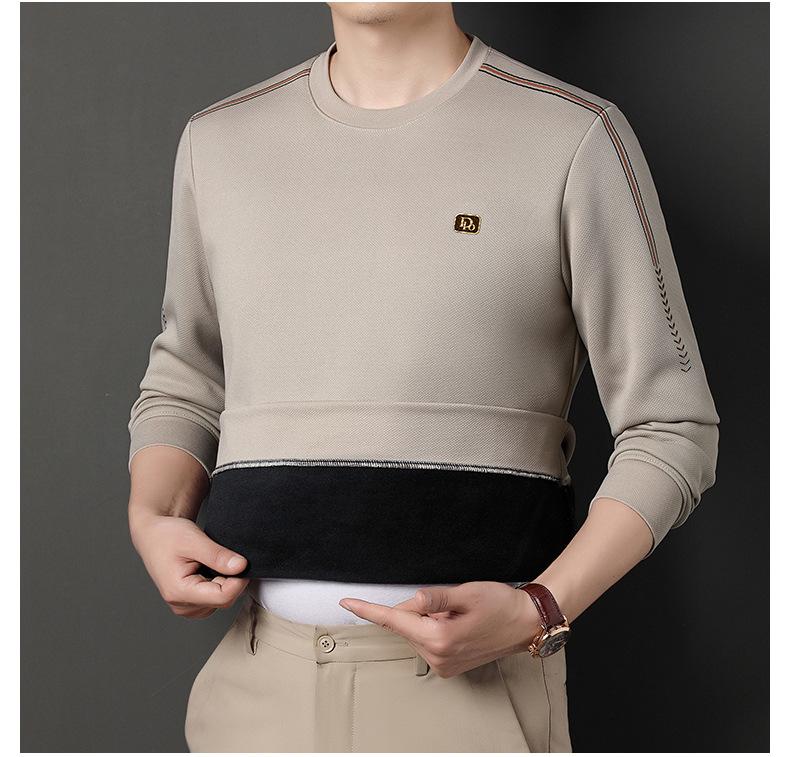 Suéter de cuello redondo grueso con forro polar para hombre, jersey de jacquard cálido, informal, de manga larga, ropa de invierno