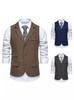 Chaleco de traje de tweed de espiga para hombre, nuevo, de comercio exterior transfronterizo, estilo vintage, con solapa y botonadura sencilla.
