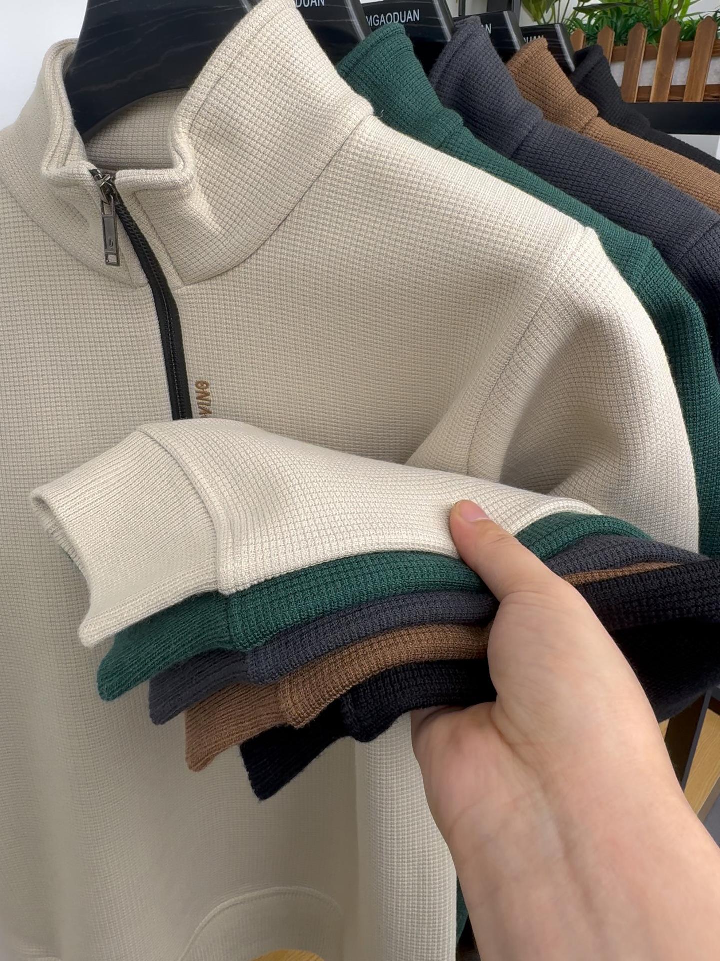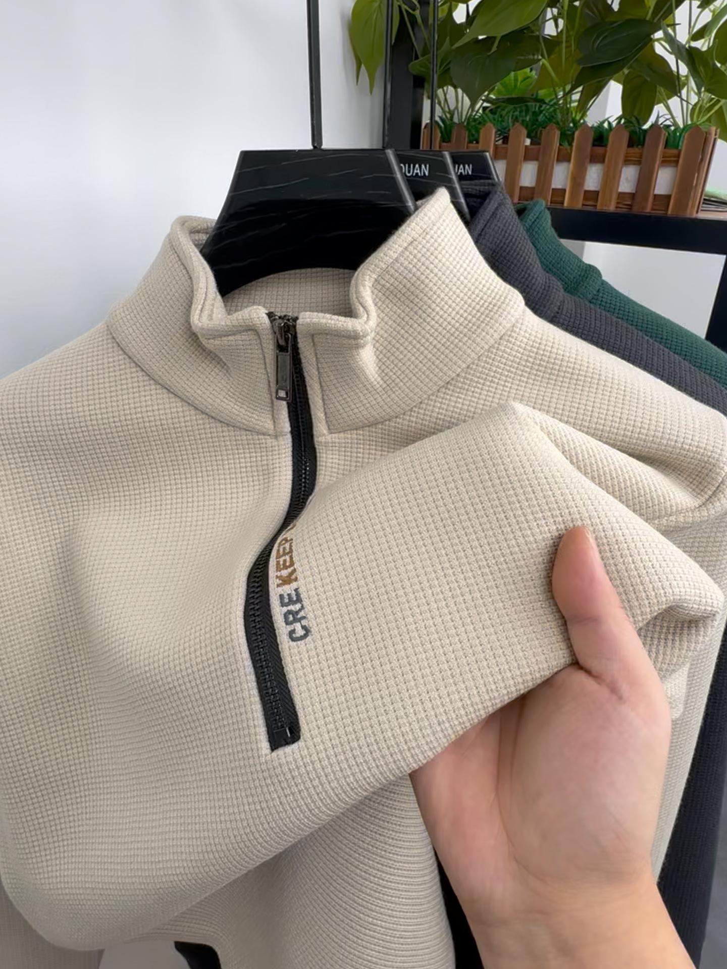 Nuevo Sudadera Otoño e Invierno con Forro Polar con Cremallera Ajustada Cálida Casual para Hombre de Manga Larga con Cuello Base para Uso Exterior
