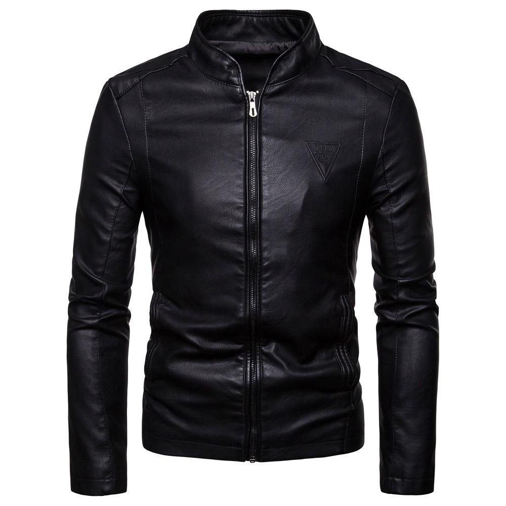 Chaqueta de cuero PU con cuello alto y corte entallado para hombre, estilo coreano, otoño e invierno de 2022, informal, a la moda