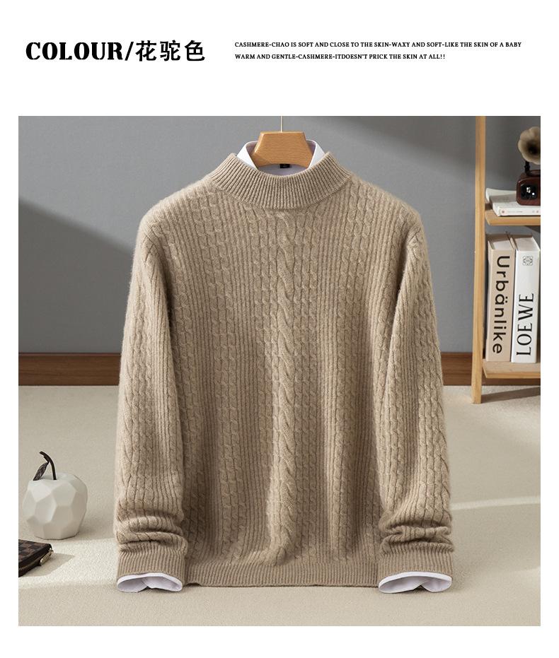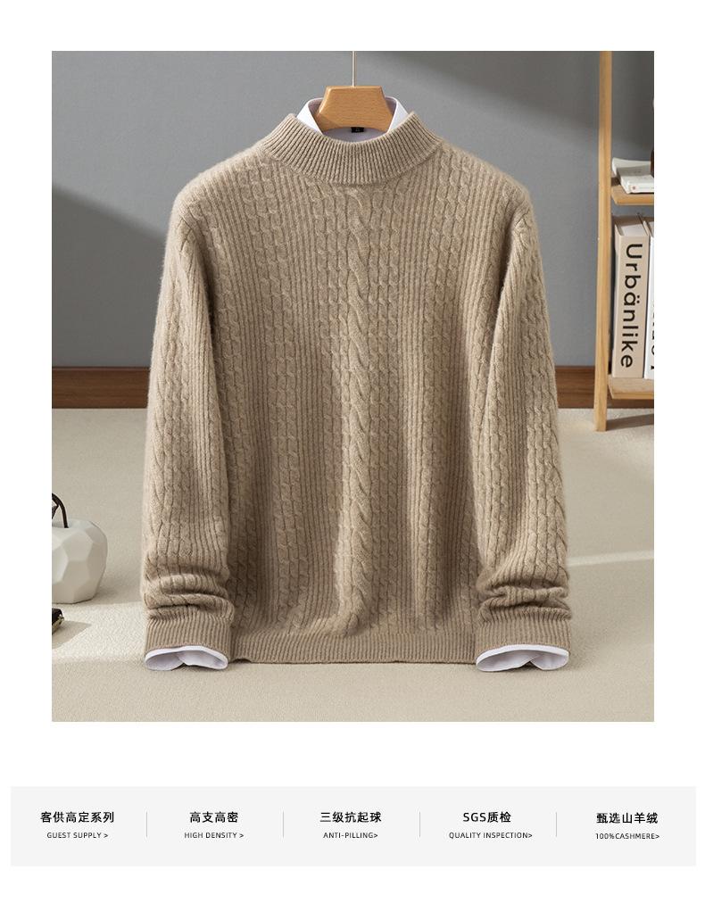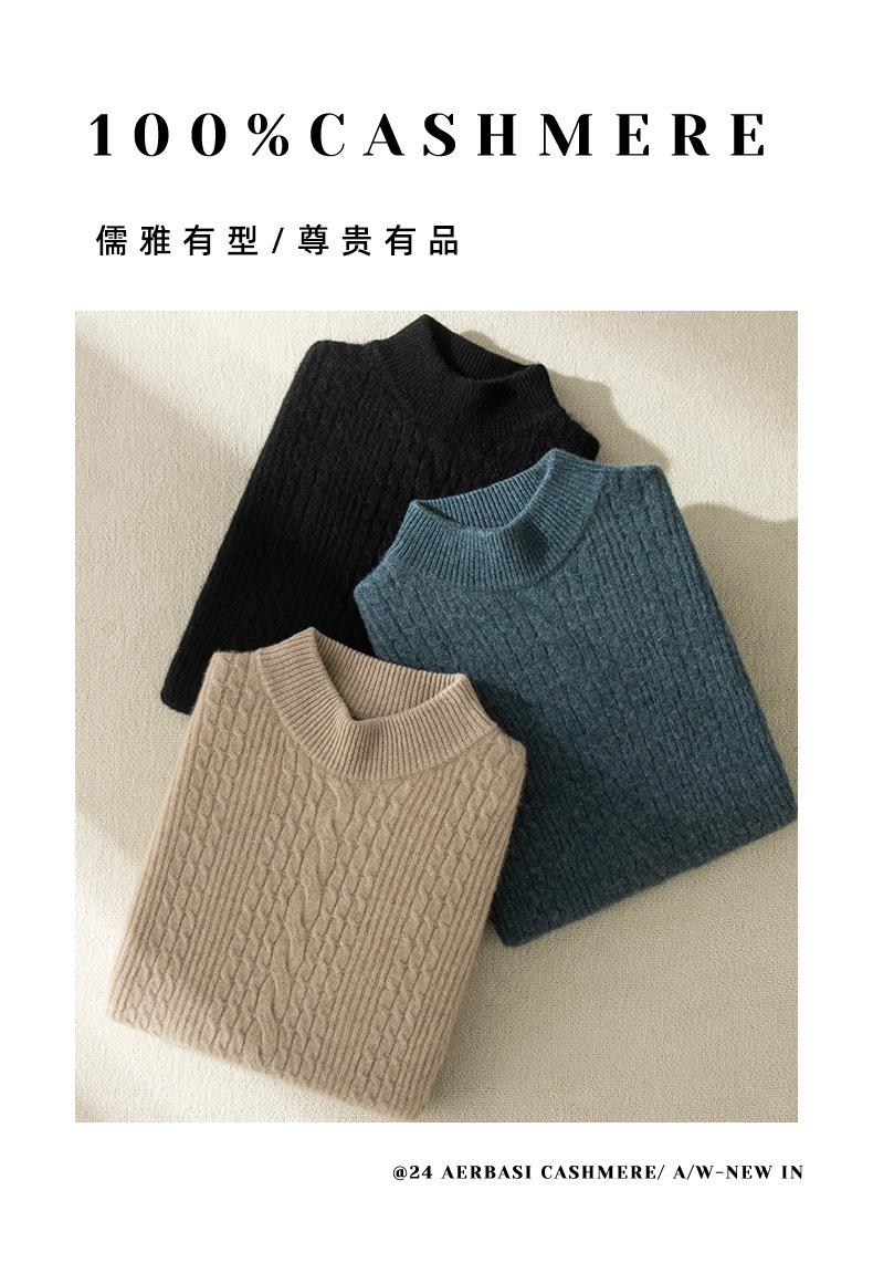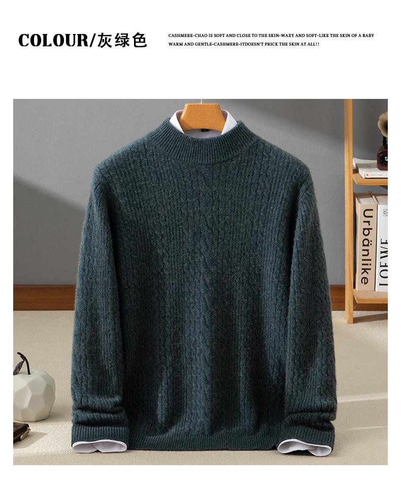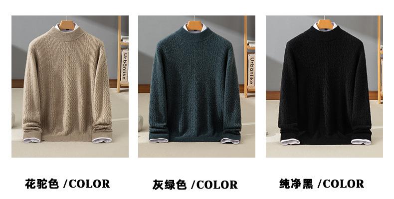 Suéter grueso de cachemira 100% pura para hombre, suéter de cuello alto medio para otoño e invierno, jersey de color liso, camisa básica informal de negocios