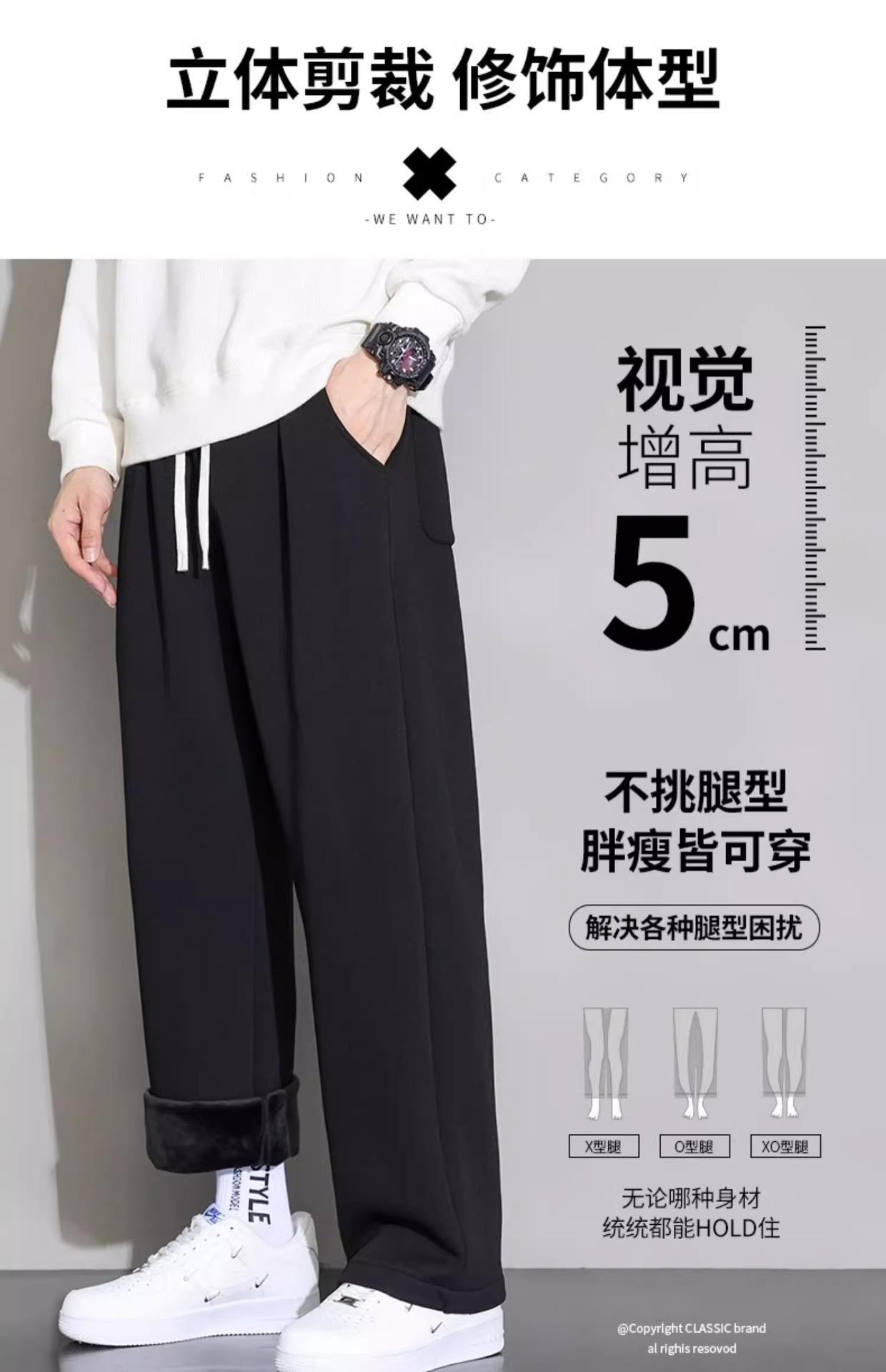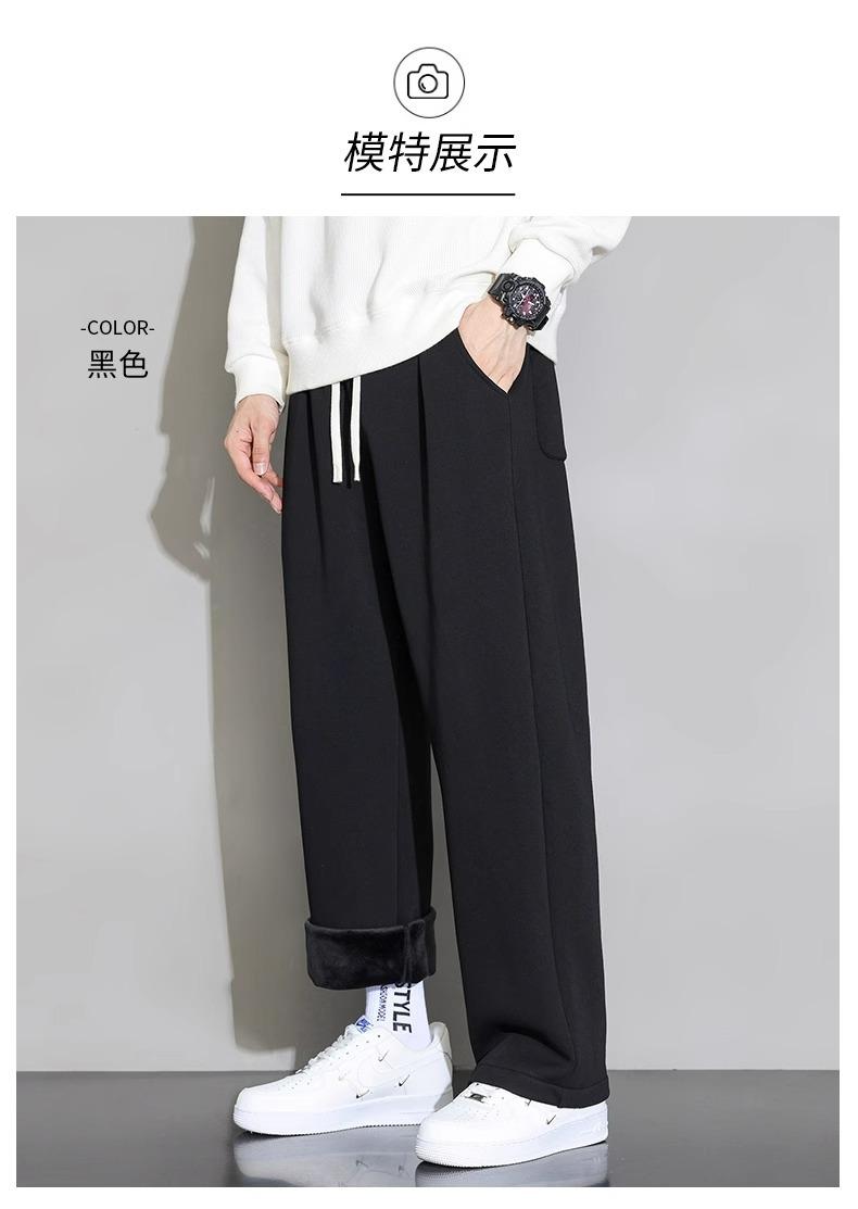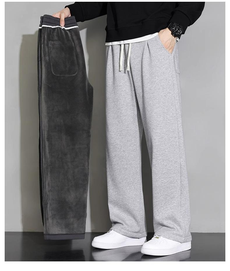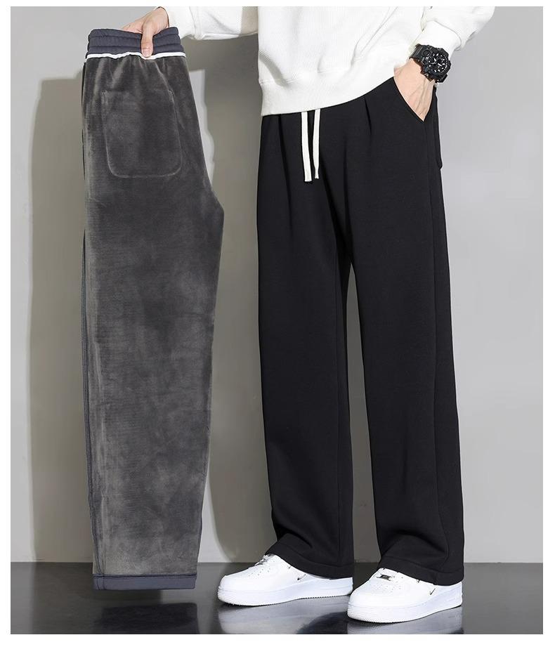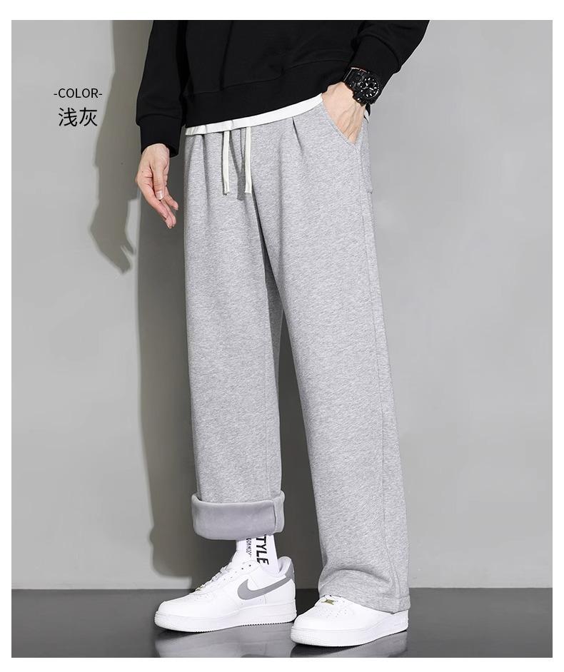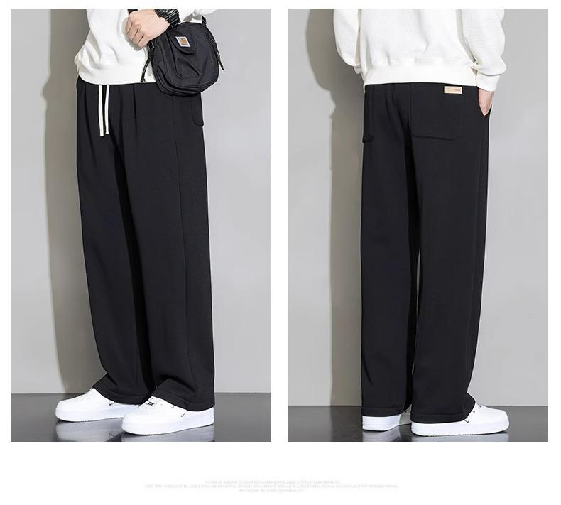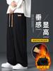 Pantalones anchos de pierna para otoño e invierno, pantalones largos deportivos casuales, rectos y sueltos con forro polar para hombre, pantalones negros, novedad de 2025