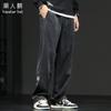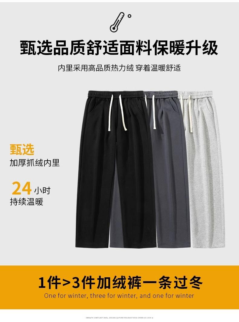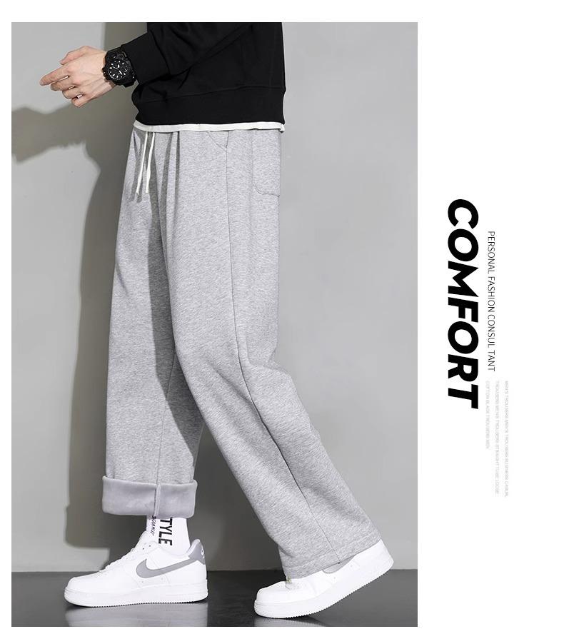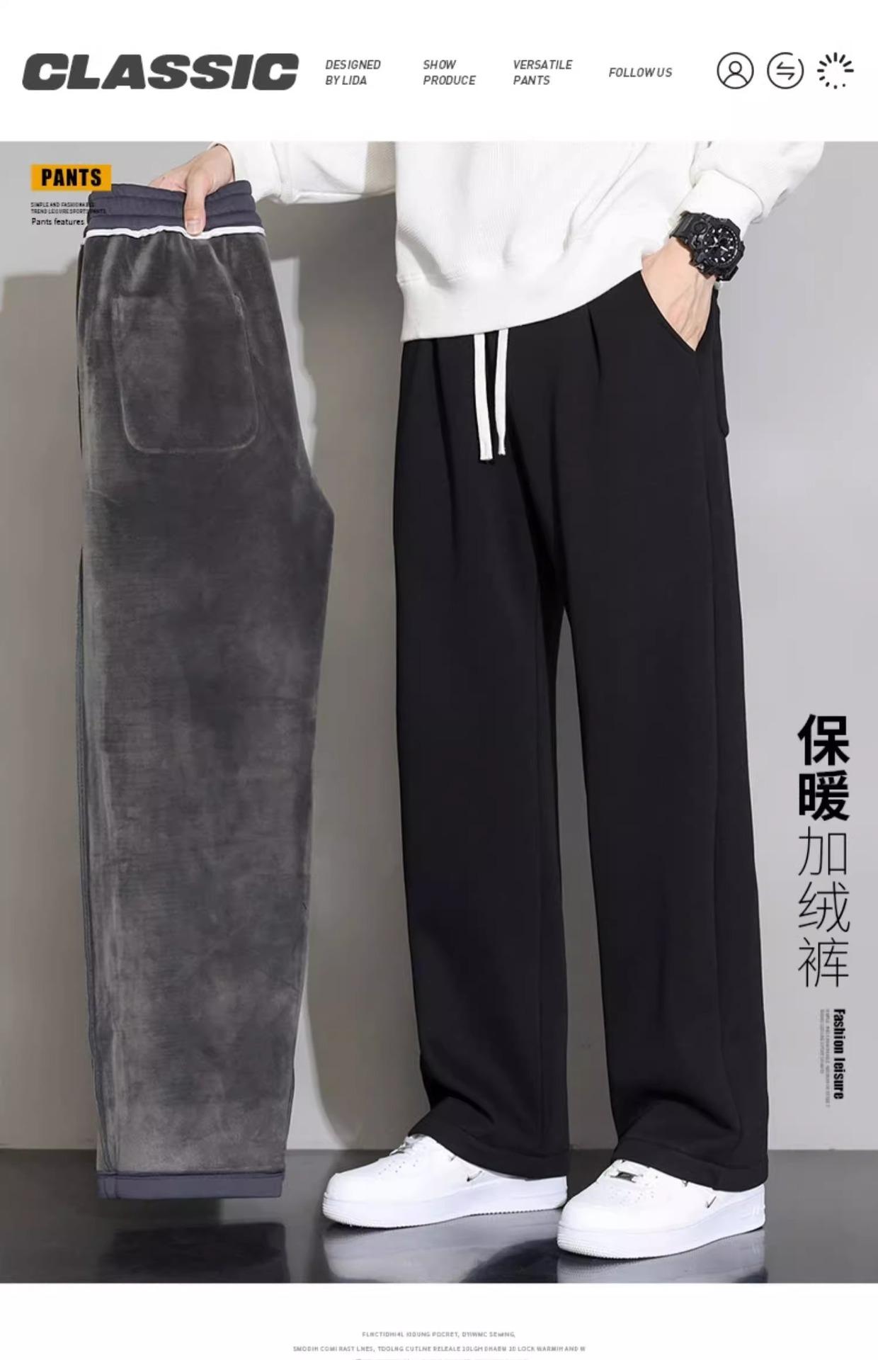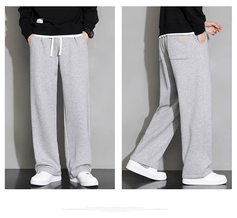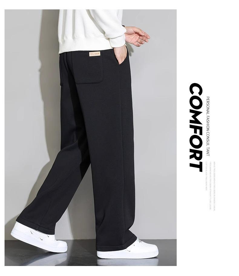 Pantalones anchos de pierna para otoño e invierno, pantalones largos deportivos casuales, rectos y sueltos con forro polar para hombre, pantalones negros, novedad de 2025