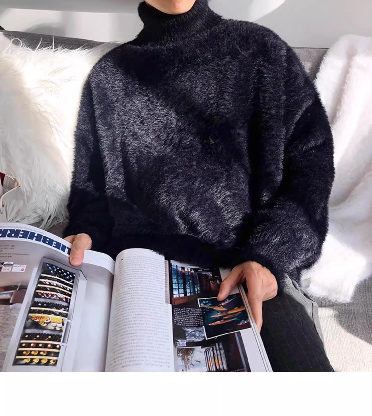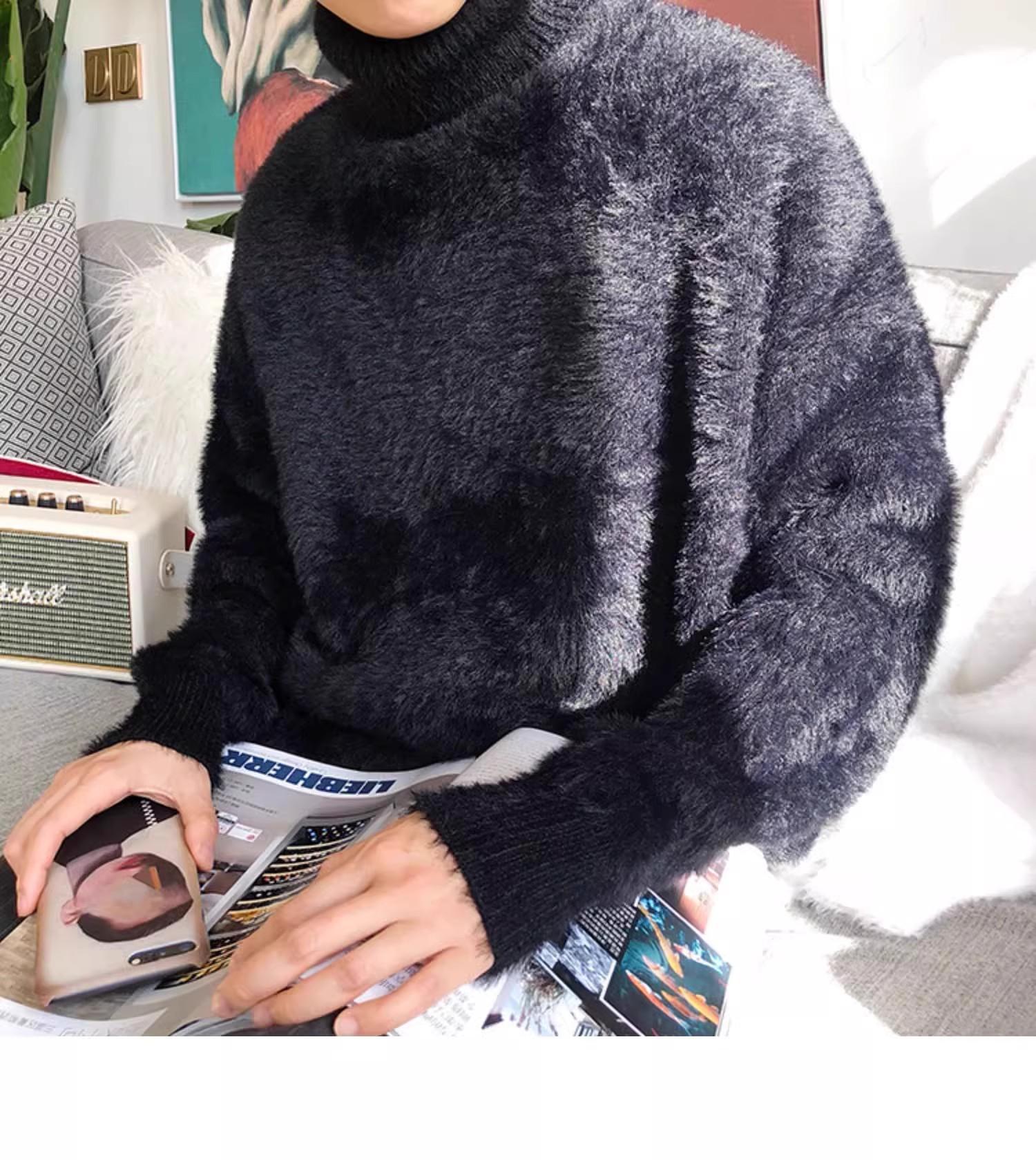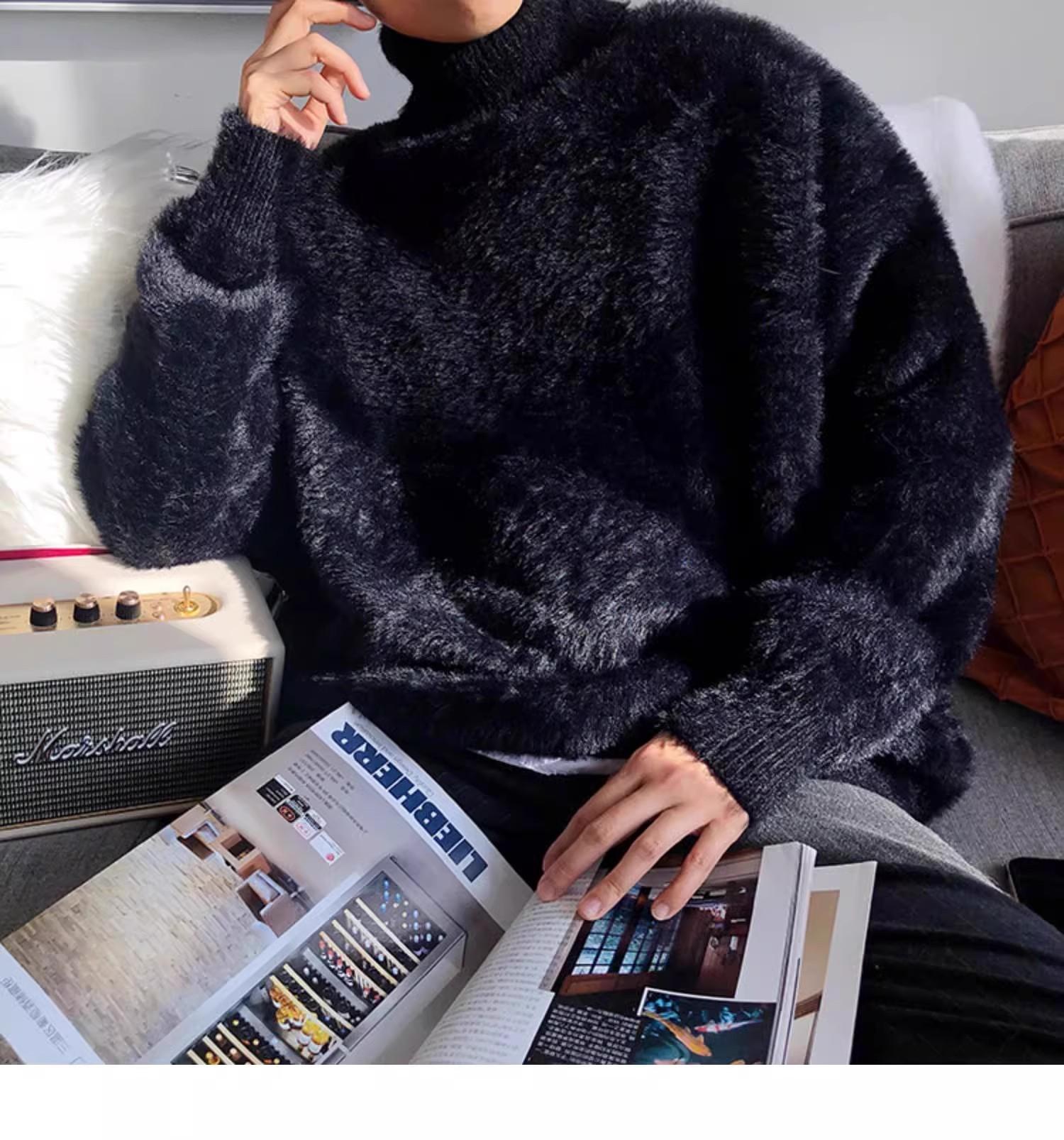 Suéter de Invierno de Visón Esponjoso de Cuello Alto para Hombre, Moda de Estilo Coreano, Suave y Ceroso, Casual Holgado de Felpa para Hombre