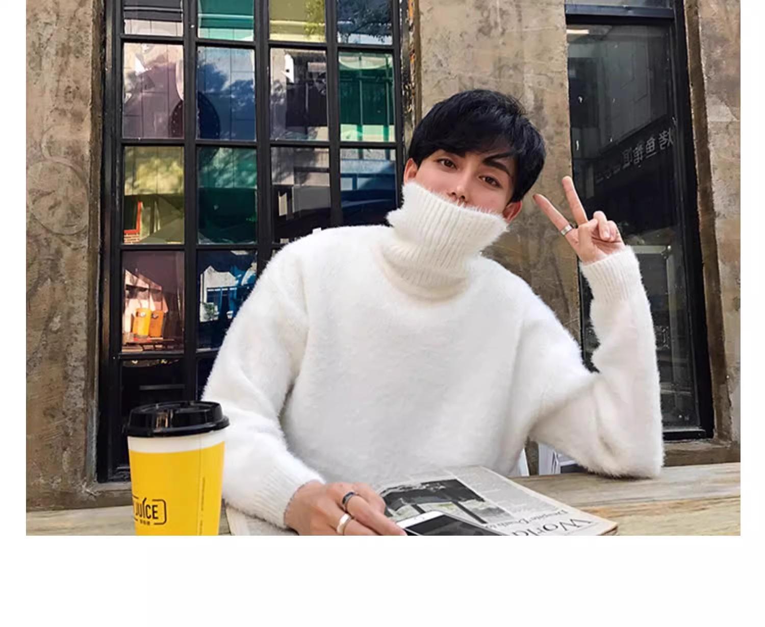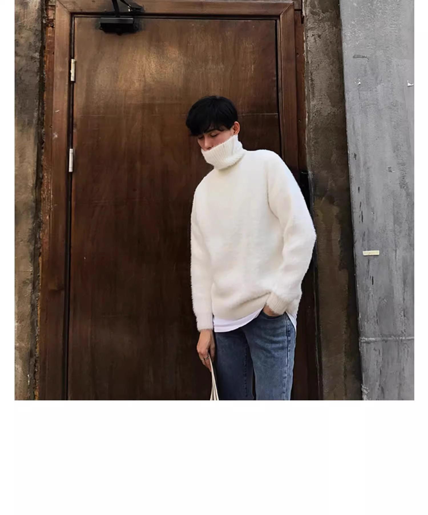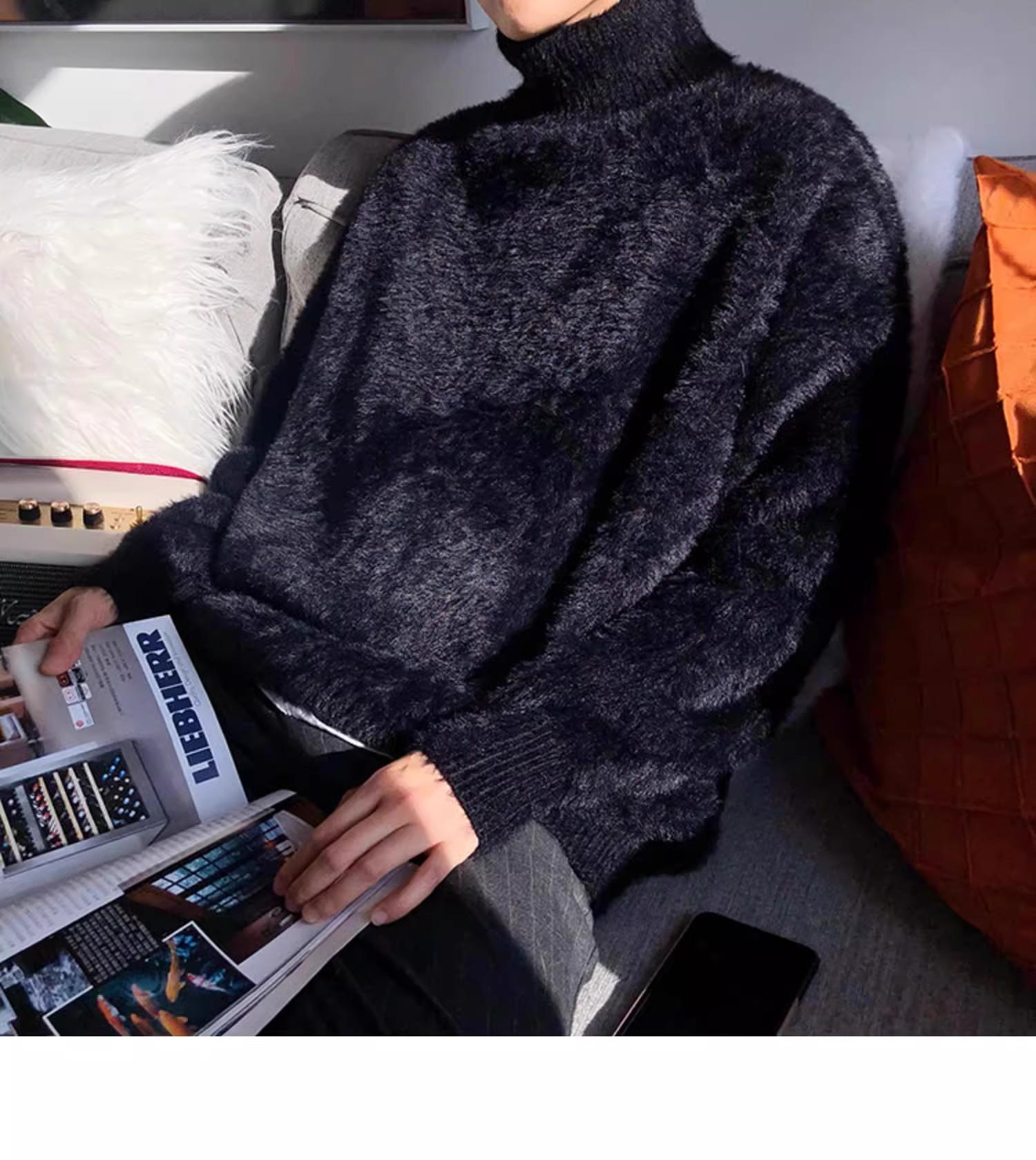 Suéter de Invierno de Visón Esponjoso de Cuello Alto para Hombre, Moda de Estilo Coreano, Suave y Ceroso, Casual Holgado de Felpa para Hombre
