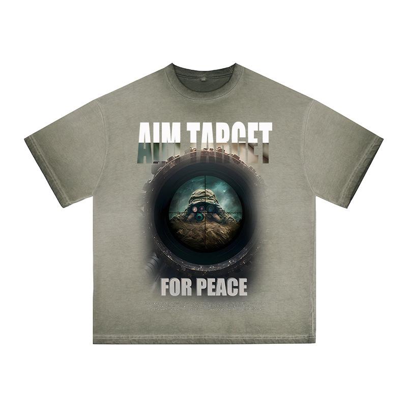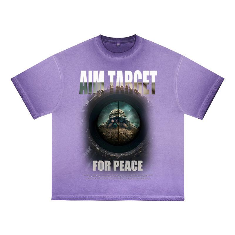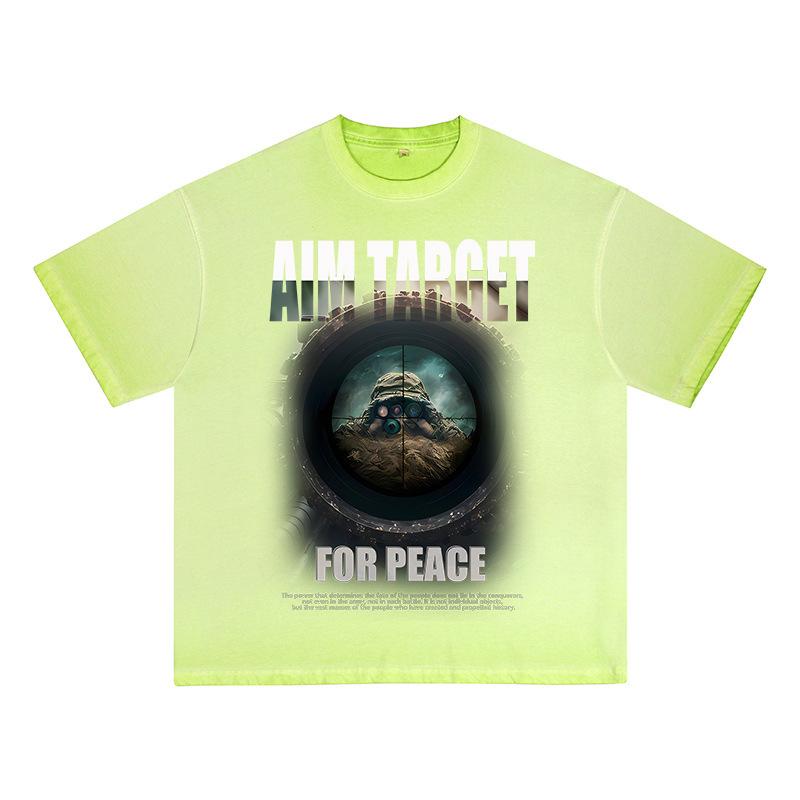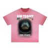 Camiseta de manga corta para hombre con impresión digital directa por chorro de tinta DTG, diseño americano de calle, estilo guerrero del futuro, con degradado lavado retro.