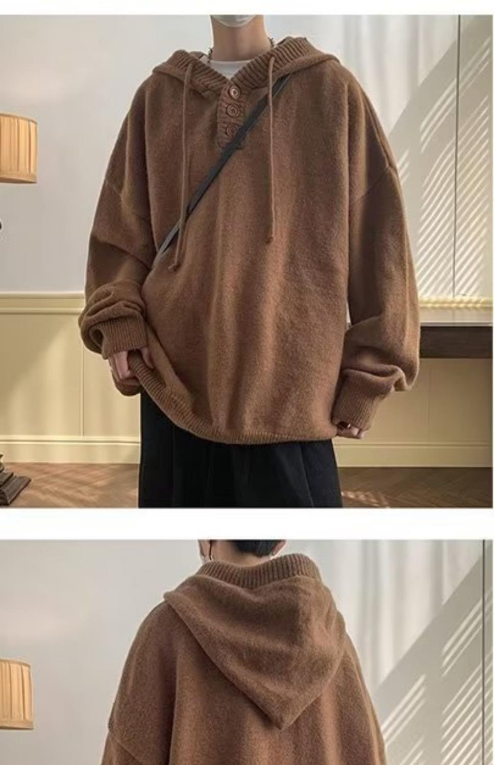 Compra Suéter con capucha para hombre, estilo americano de invierno, retro, holgado, de alta gama, 2022, nuevo suéter coreano holgado, moderno al por mayor en Joom.pro