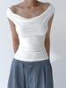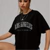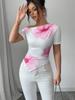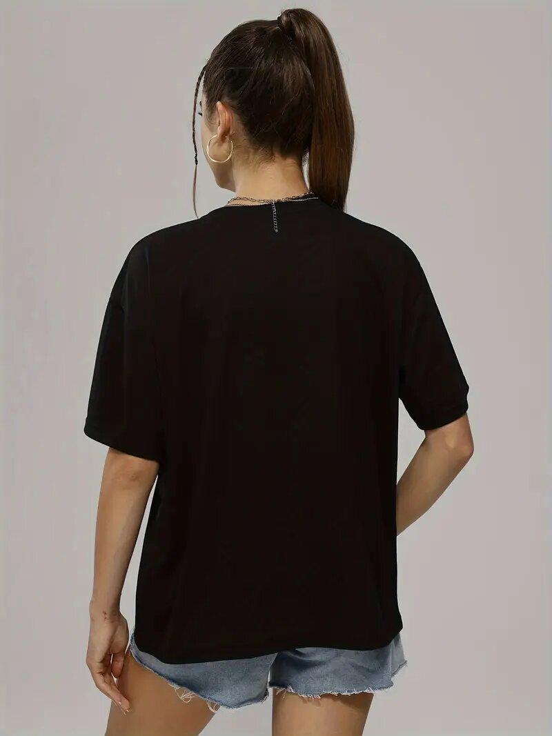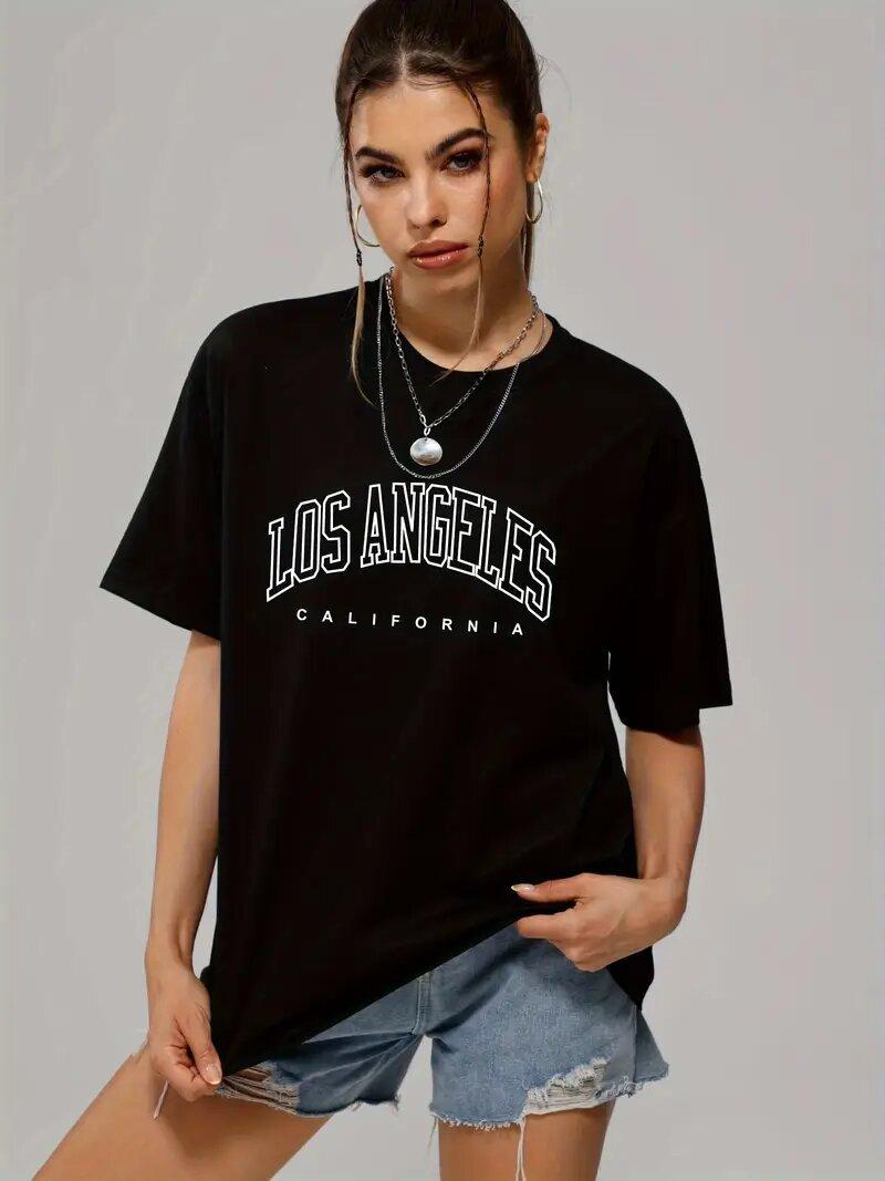 Camiseta de algodón holgada con hombros descubiertos para mujer, con estampado de comercio exterior, estilo europeo y americano, 2024