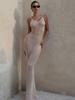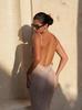 Vestido playero de bikini exterior de estilo europeo y americano con tirantes finos, sexy, de punto y sin espalda.