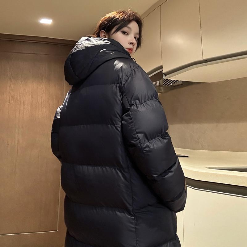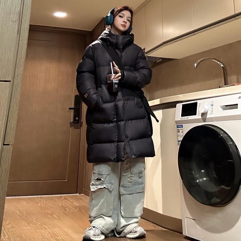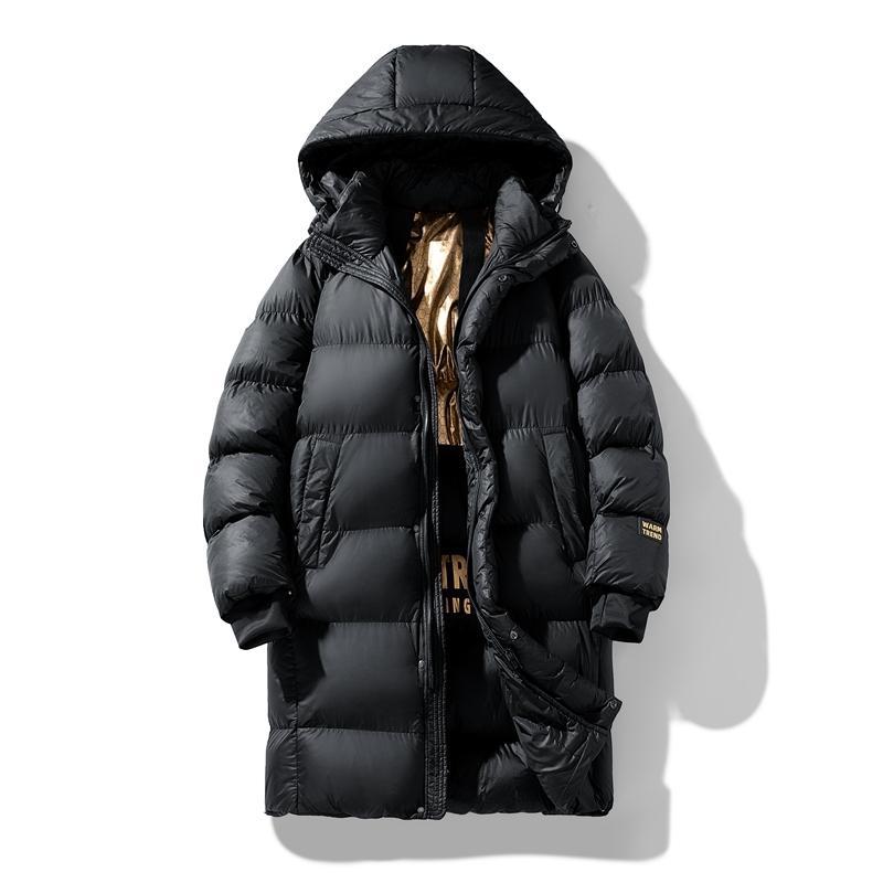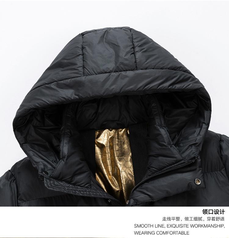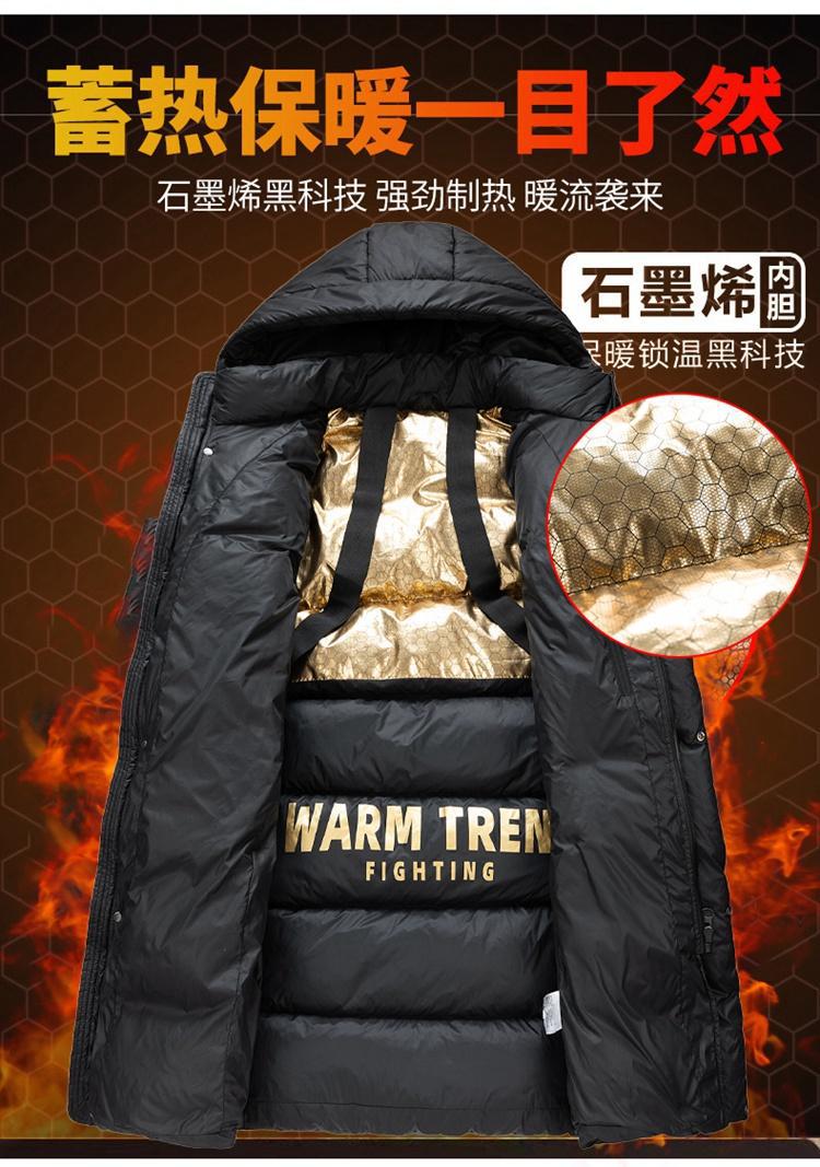 Abrigo de invierno para mujer, de algodón acolchado, largo medio, con grafeno, negro y dorado, con capucha, grueso y cálido, para parejas, informal