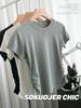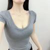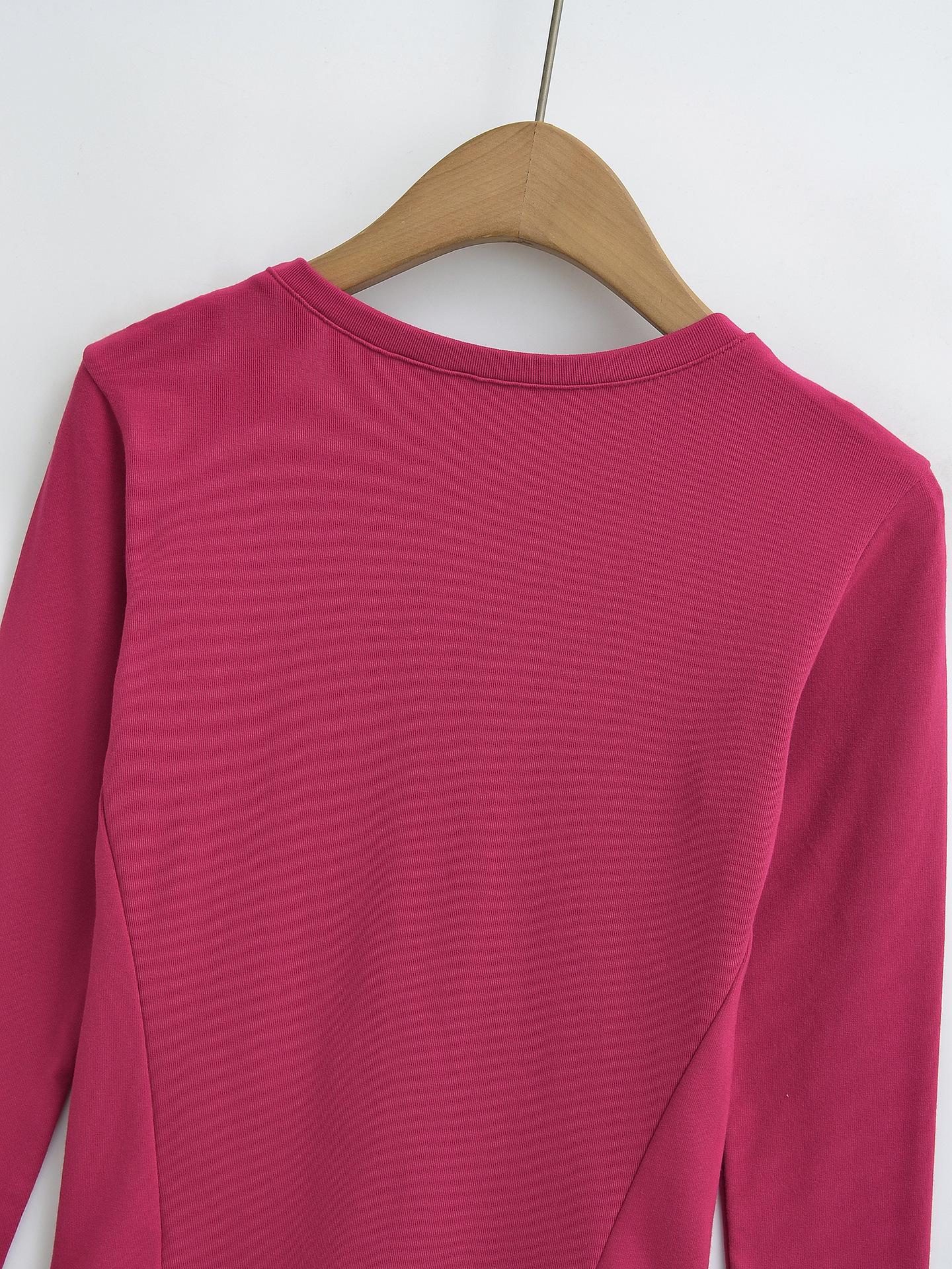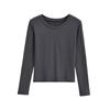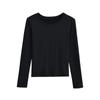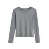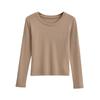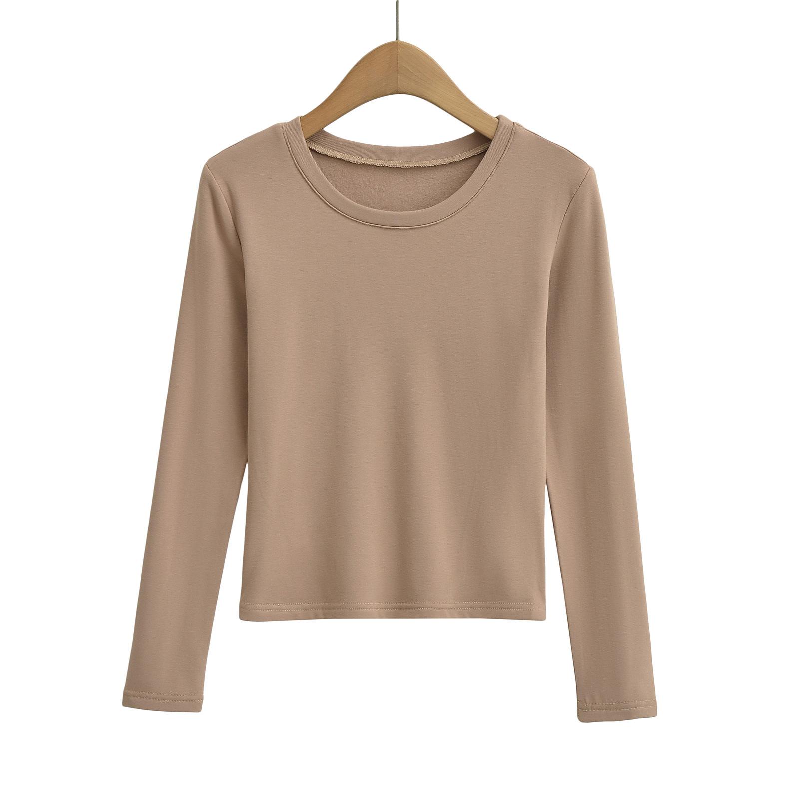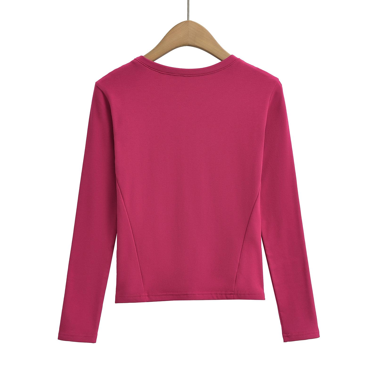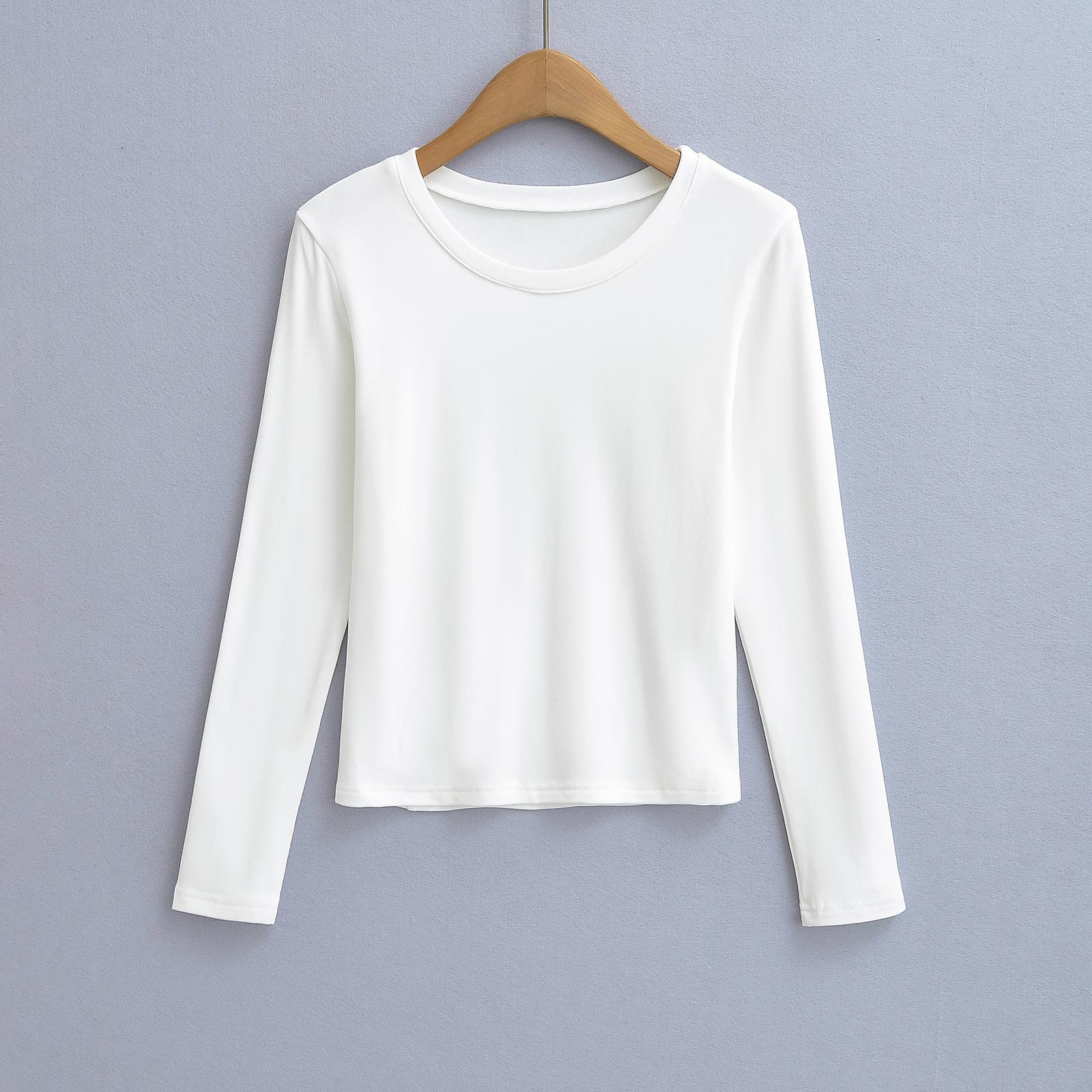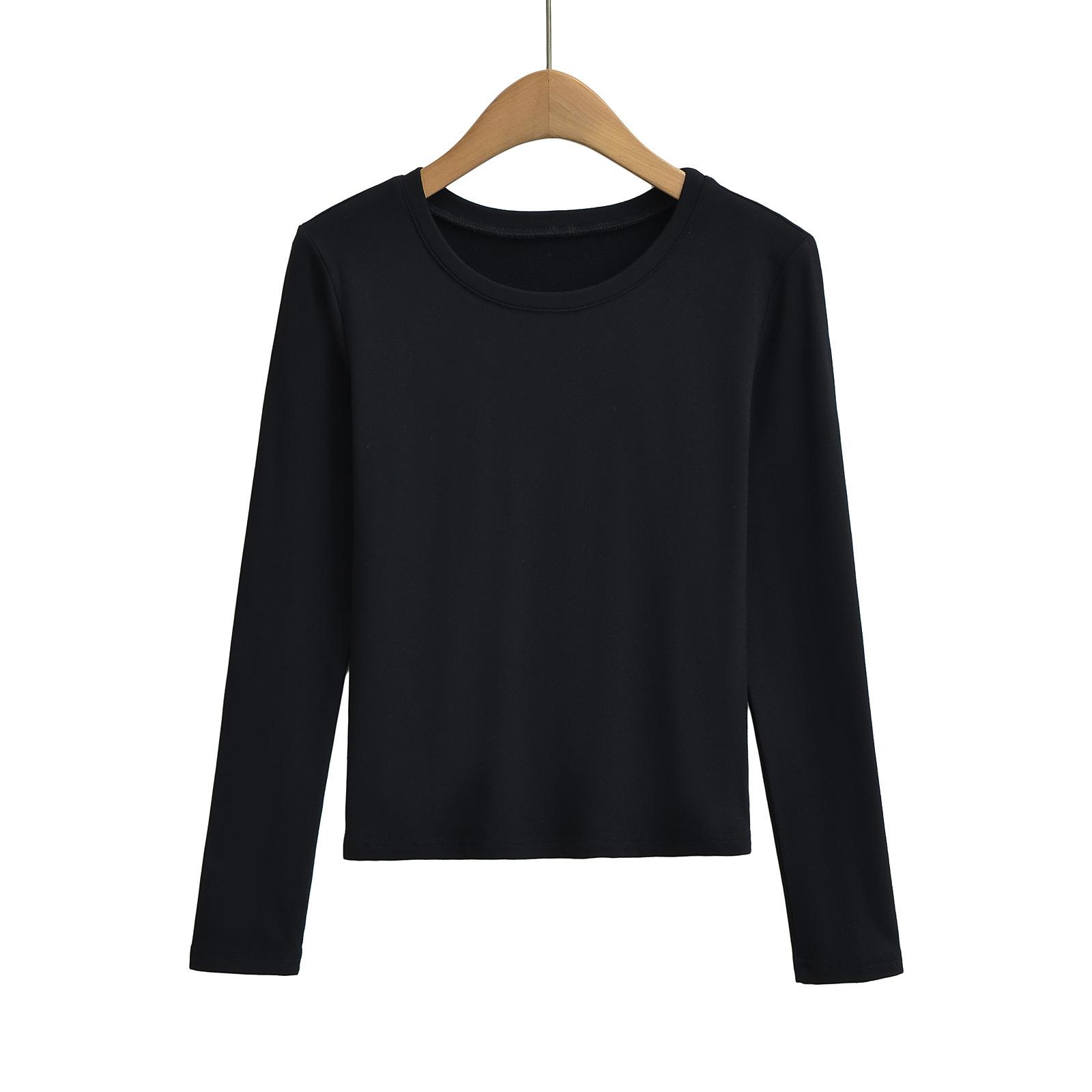 6018-Camiseta básica de manga larga con cuello redondo retro americano para mujer, nueva 2024, sexy, elástica, ajustada, sencilla