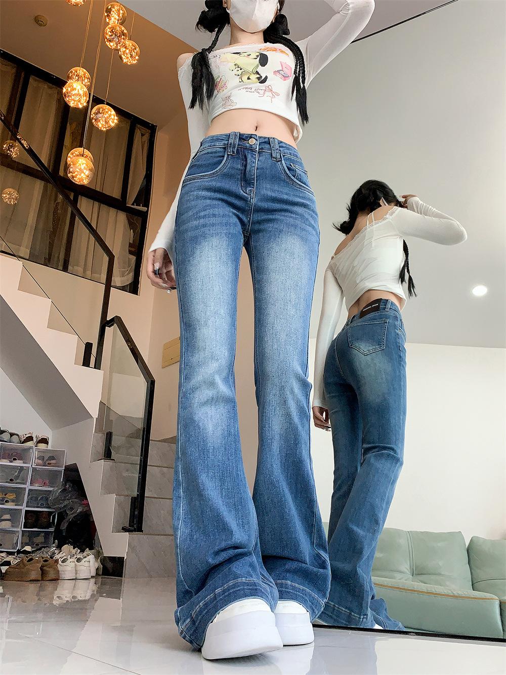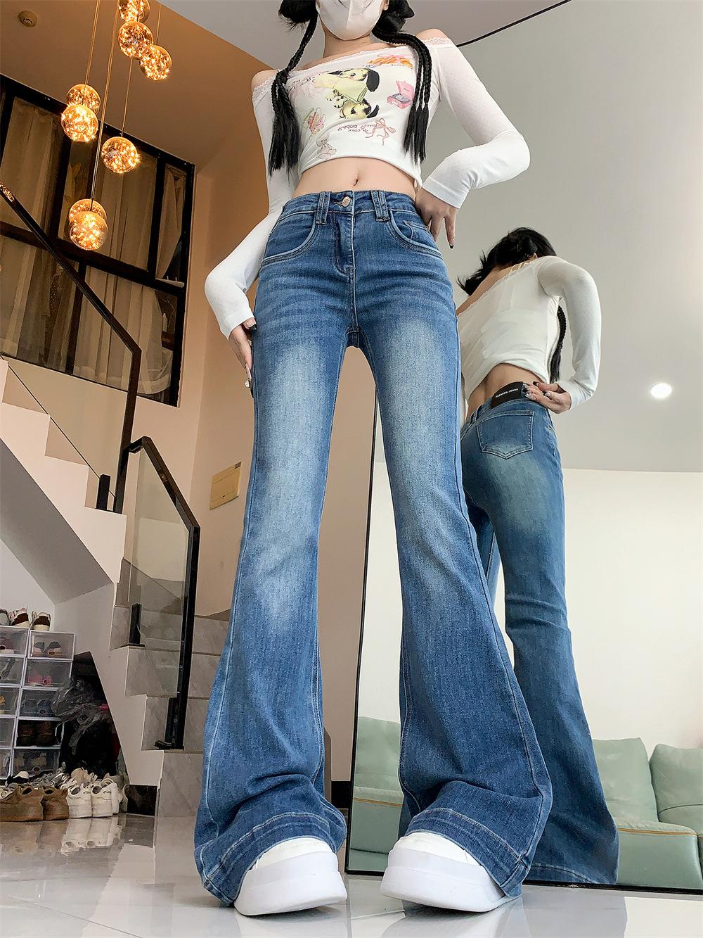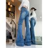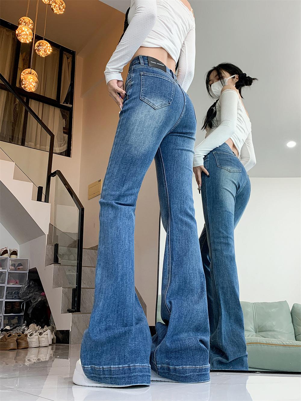 Talla grande Jeans Acampanados Americanos Retro para Mujer Otoño Nuevo Cintura Alta Cadera Ajustada Adelgazantes Pierna Pantalones Acampanados Largos