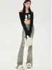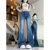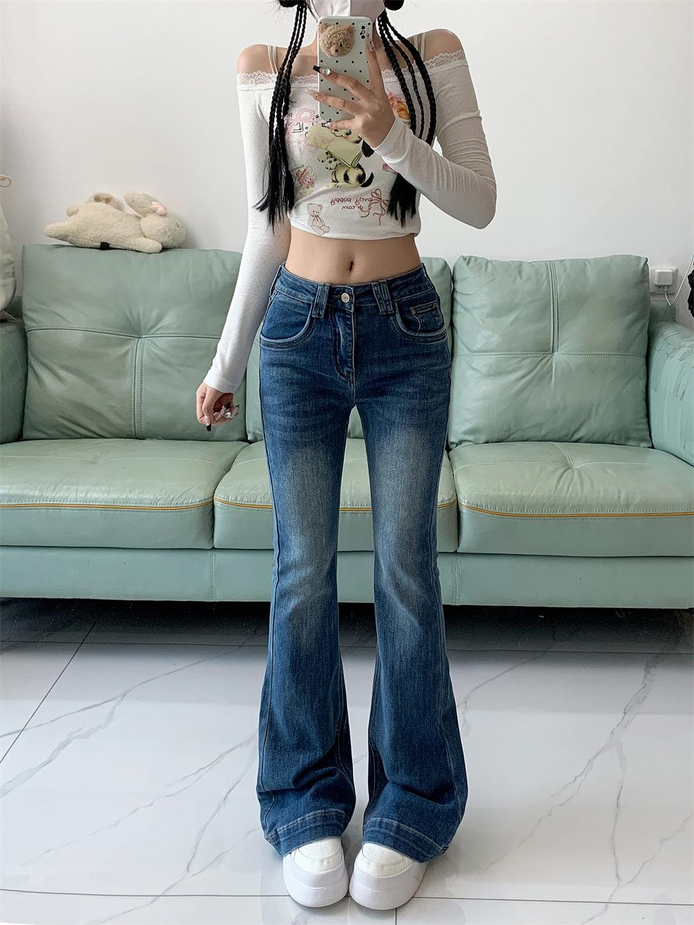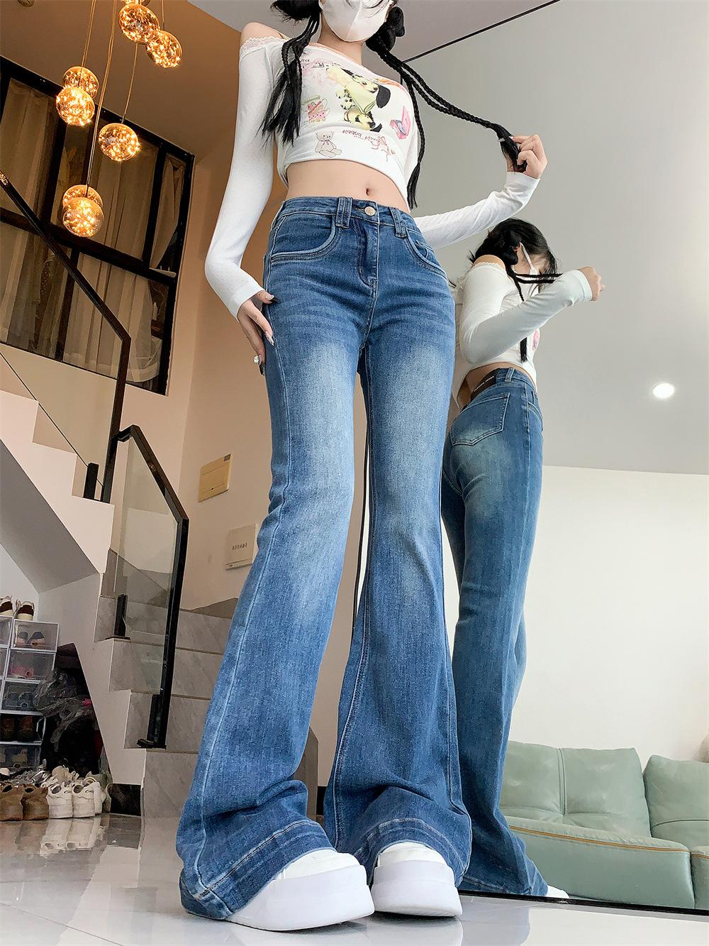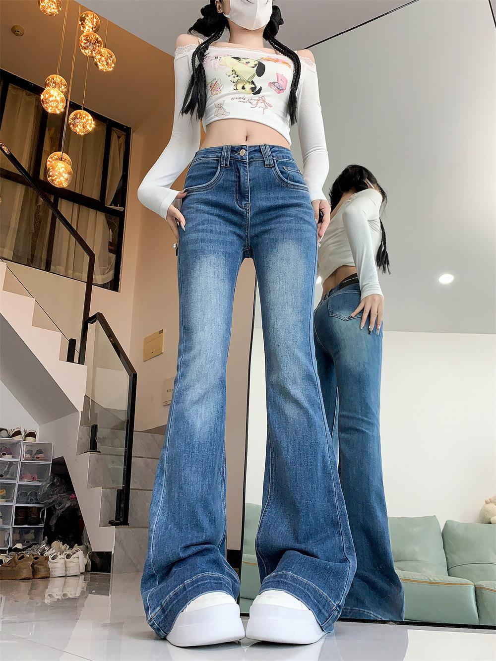 Talla grande Jeans Acampanados Americanos Retro para Mujer Otoño Nuevo Cintura Alta Cadera Ajustada Adelgazantes Pierna Pantalones Acampanados Largos