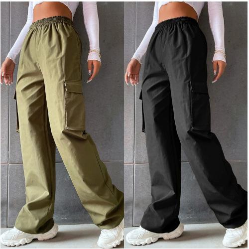 Compra Verano Nuevo Transfronterizo Popular Ropa de Trabajo Pantalones Casuales para Mujer Cintura Alta Pierna Ancha Rectos Transpirables Americanos Retro Pantalones Deportivos al por mayor en Joom.pro