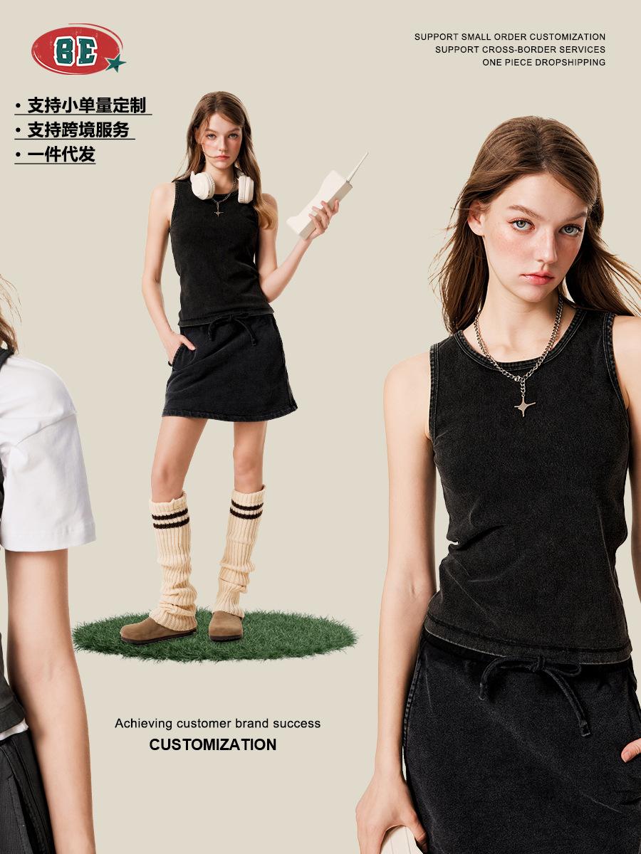 Ropa de Mujer BE | Verano 2025 Comercio Exterior Europeo y Americano Amazon Más Vendido Color Frito Viejo Sin Mangas Dulce Chaleco Fresco Mujer