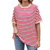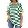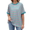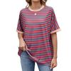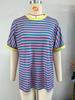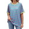 Amazon 2025 Europa y Estados Unidos comercio exterior transfronterizo primavera y verano nuevo contraste de color a rayas cuello redondo manga corta suelta camiseta chaqueta para mujer